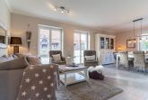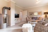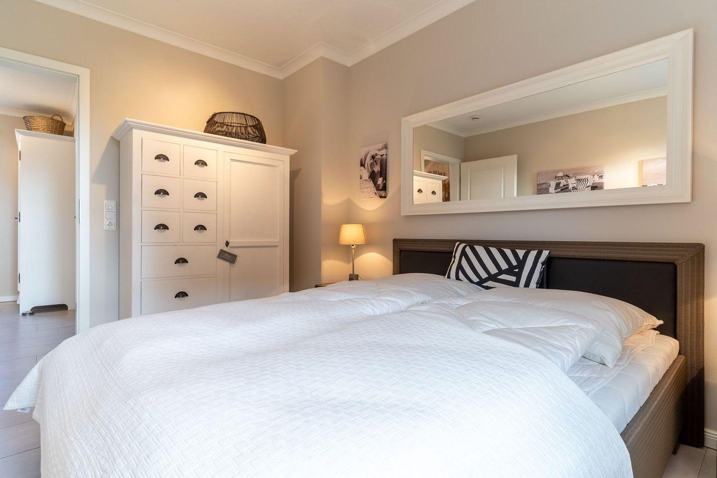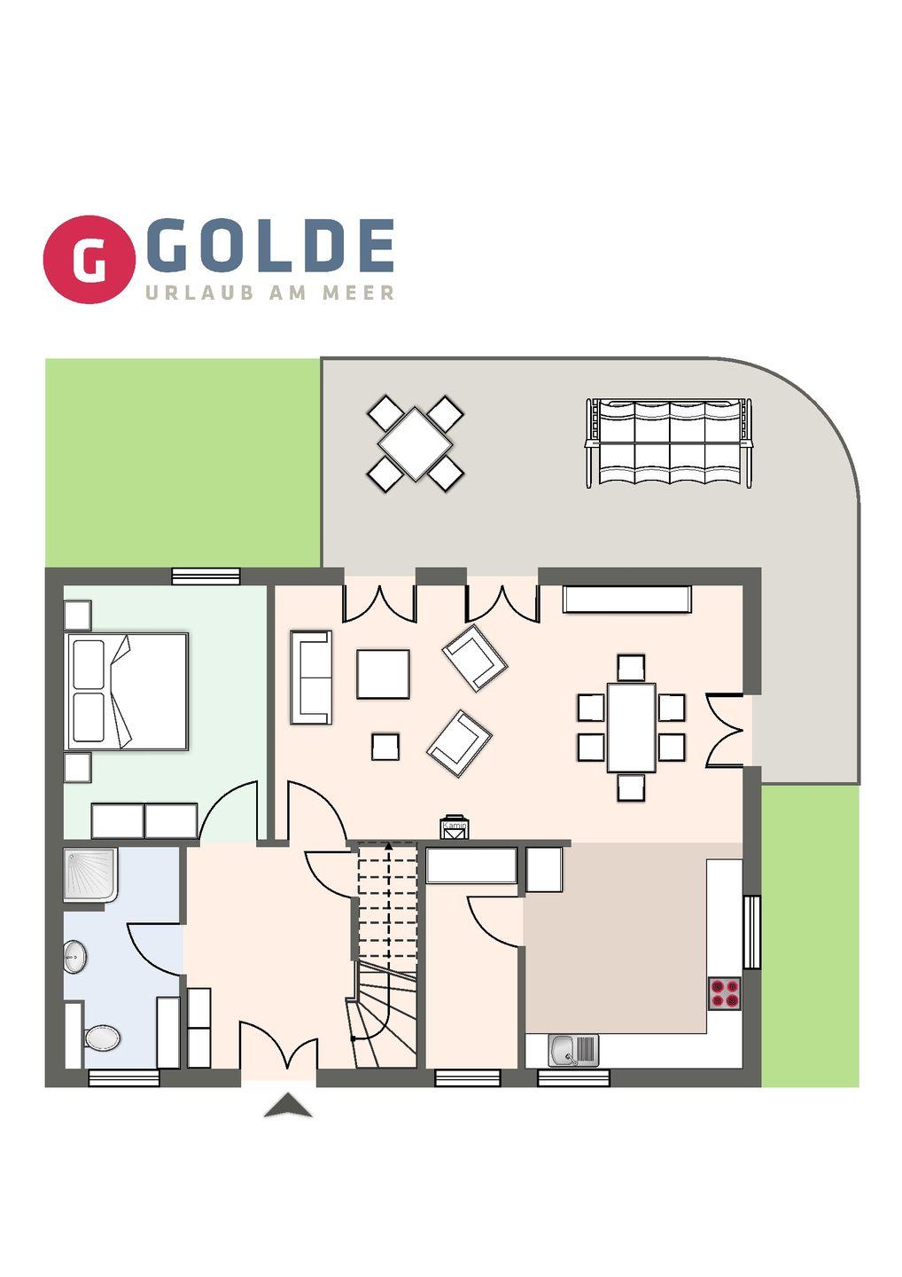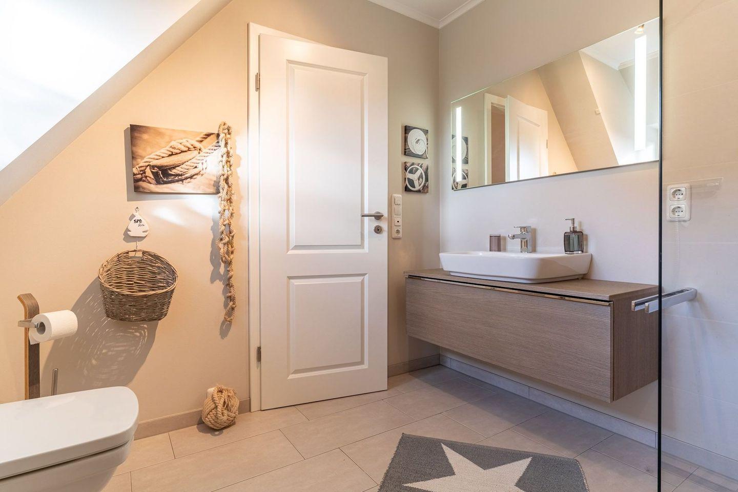 Dieses wunderschöne Doppelhaus unter Reet verfügt über ca. 113 m² Wohnfläche und bietet großzügigen Platz für 6 Personen. Im Erdgeschoss befindet sich der lichtdurchflutete Wohnraum mit TV, Kamin, einer großzügigen Sitzecke. Die offene Wohnküche verfügt über hochwertige Geräte und ist voll ausgestattet für gemeinsames Kochen. Die Wohnräume sind mit exklusiven Möbeln eingerichtet. An den Wohnbereich schließen sich ein Flur, sowie ein Hauswirtschaftsraum. Ebenso ist im Erdgeschoss ein Doppelschlafzimmer mit Gästebad und Dusche. Das gesamte Erdgeschoss verfügt über geschmackvolle Fußbodenfliesen.