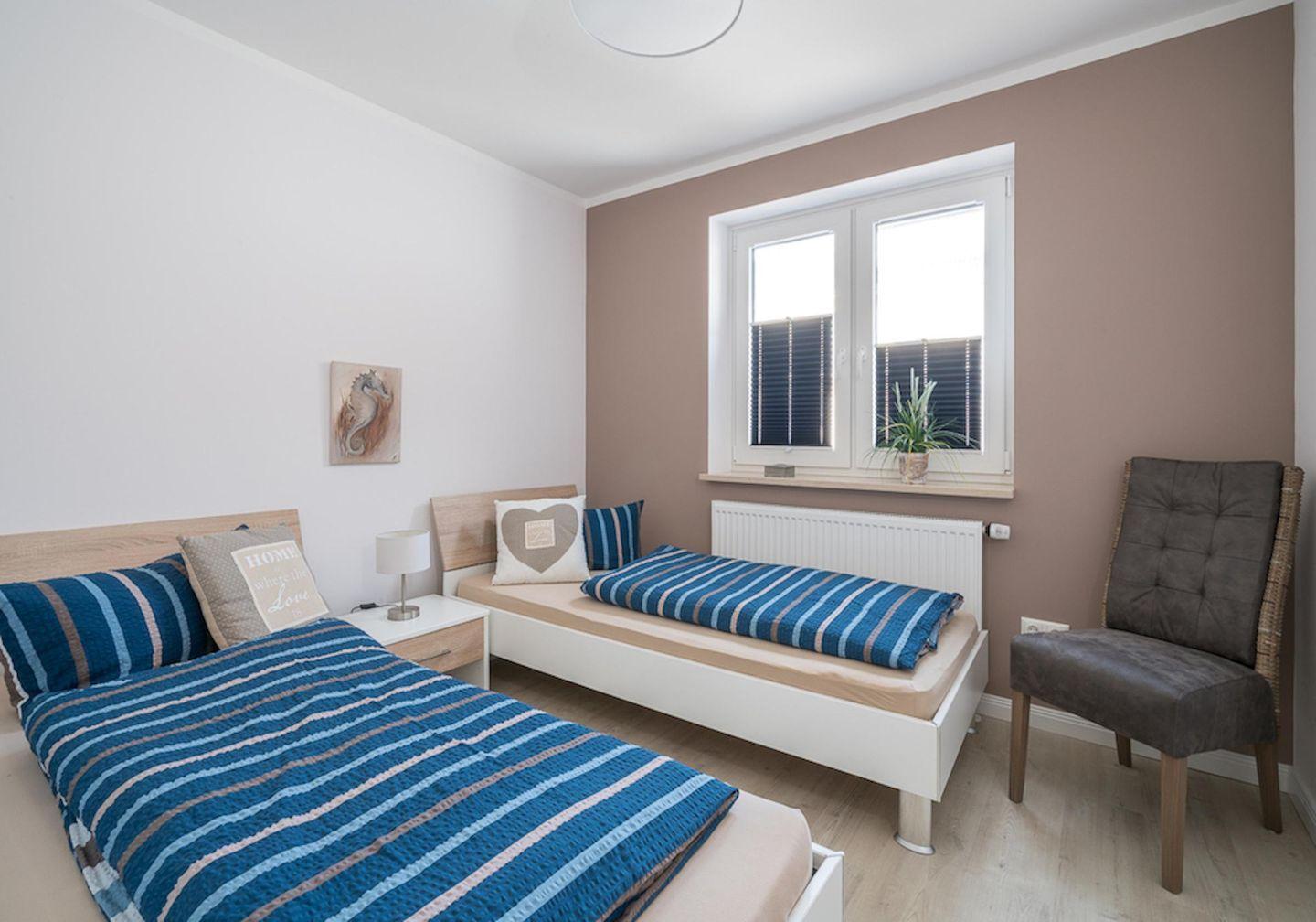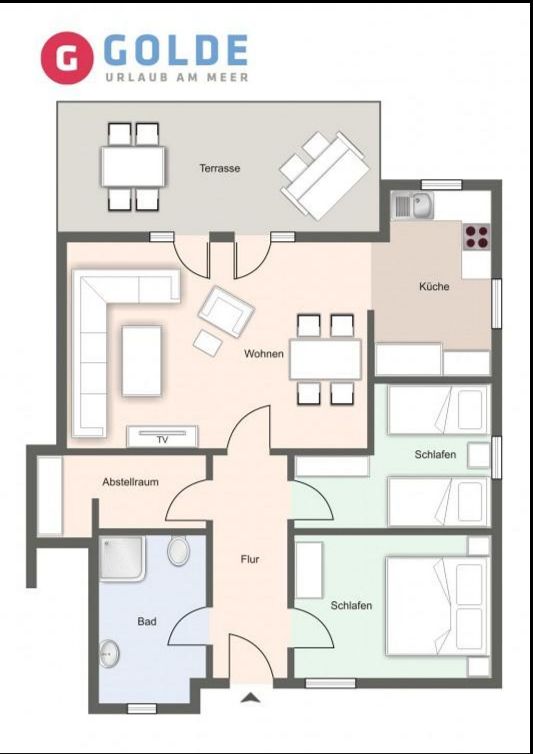 Der lichtdurchflutete Wohnraum mit TV, Sofalonge und einem gemütlichen Essbereich bietet jeden Komfort. Die Küche, mit hochwertigen Geräten, grenzt direkt am Wohnzimmer an. Das Duschbad ist großzügig gestaltet und bietet genügend Platz für Ihre Utensilien. Die beiden Schlafzimmer, eines mit mit einem Doppelbett und ein weiteres mit 2 Einzelbetten, sorgen für ruhevolle Erholung.