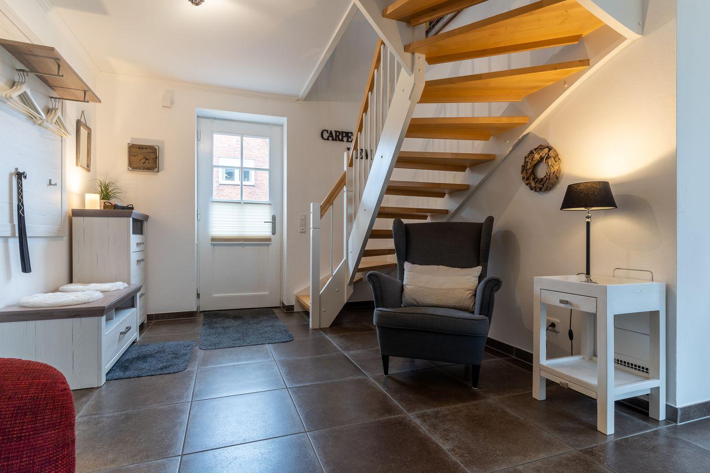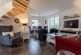 Die Haushälfte unter Reet bietet viel Platz für 6 Personen und besticht durch seine Gemütlichkeit. Es verbindet maritime Elemente mit Landhausstil und erhält so seinen ganz eigenen besonderen Charme.