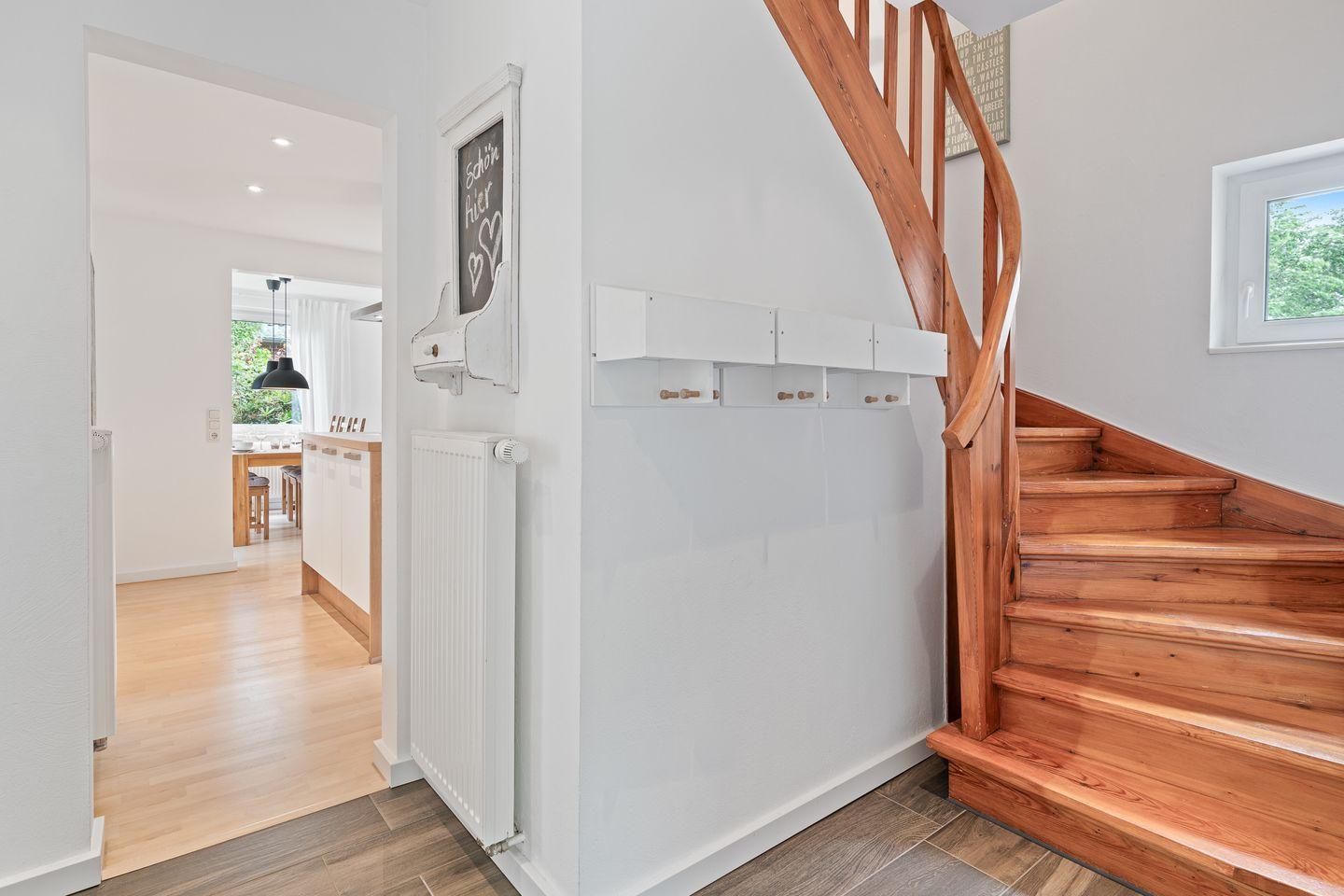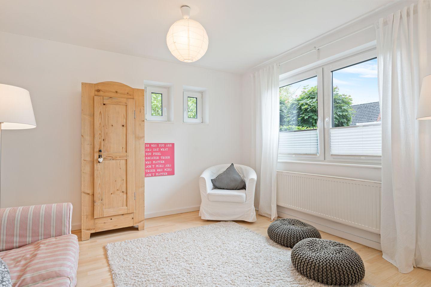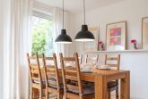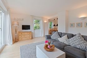 Im Erdgeschoss erwartet Sie ein hübscher, heller Wohnraum mit SAT-TV, WLAN und einer schönen Essecke. Die offenen Küche mit Küchenblock, Geschirrspüler und Backofen lädt zum Kochen ein. Ein Abstellraum und ein Gäste-WC komplettiert die Etage.