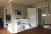 Erdgeschoss: Lichtdurchfluteter Wohnraum mit dänischem Kamin und gemütlichem Essbereich; individuell gefertigte, voll ausgestattete Küche; Gäste WC