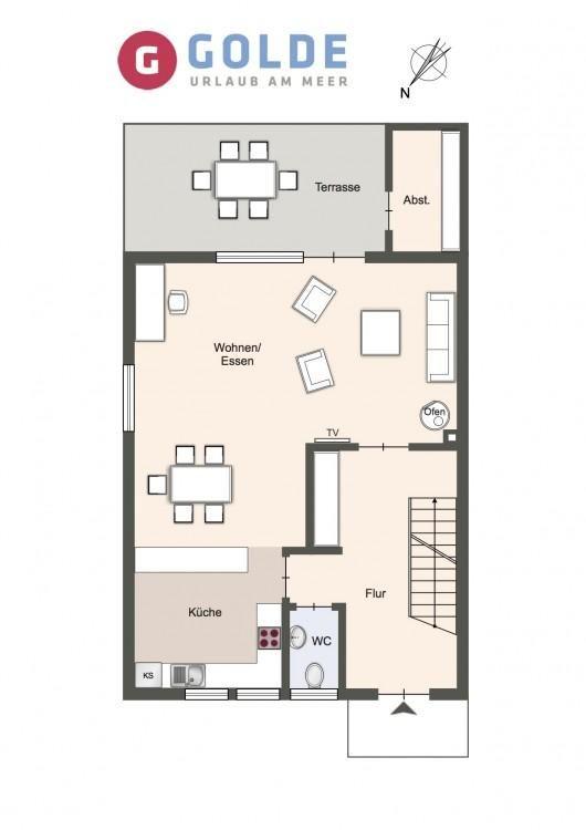 Ferienhaus Andersens Hus Ferienhaus für 4 Personen in SPO Dorf In diesem gemütlichen Ferienhaus sind Sie nur 5-10 Gehminuten vom Ortskern Dorf mit seinen gemütlichen Cafés, Restaurants und den vielseitigen und interessanten Einkaufsmöglichkeiten (inkl. Wochenmarkt) entfernt. Bis zum Deich benötigen Sie ca. 10 Minuten zu Fuß. Das Grundstück ist nach Süd/Ost ausgerichtet und bietet Ihnen einen Stellplatz, einen geschützten Garten und einen gemütlichen Strandkorb, um Urlaubstage draussen ausklingen zu lassen. Der Garten und die großzügige, windgeschützte Süd-Terrasse mit Zugang zu einem Abstellraum (Möglichkeit zwei Fahrräder unterzubringen) bietet Ihnen einen Ort der Ruhe, Erholung und besten Sonnenauslastung.