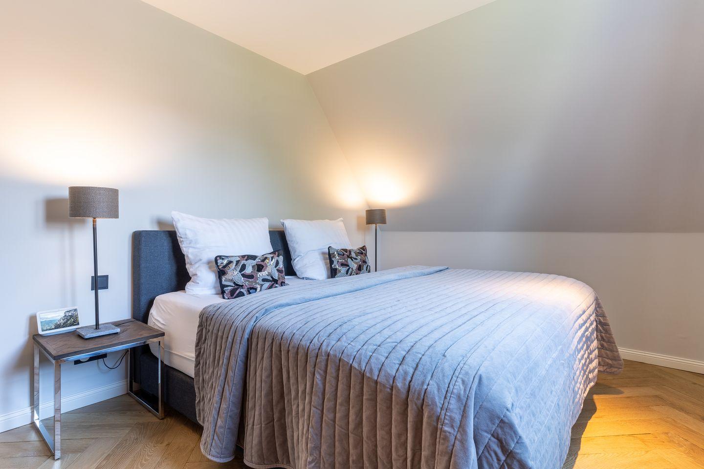 Die stilvolle und ganz besonders eingerichtete Doppelhaushälfte verfügt über ca. 90 m² Wohnfläche über 3 Etagen und bietet Platz für 1-4 Personen. Im Erdgeschoss befindet sich ein großer, lichtdurchfluteter Wohnraum mit gemütlichem Essbereich, einer offenen Küche und Gaskamin. Die Küche verfügt über hochwertige Elektrogeräte, einen Weinkühlschrank und bietet genügend Platz zum gemeinsamen Kochen. An den Wohnbereich schließen sich ein Flur, ein Gäste WC sowie ein Abstellraum an. Über eine Holztreppe gelangt man in das Obergeschoss. Zwei Schlafzimmer mit je einem Boxspring-Doppelbett (180x200 m) sind ausgestattet mit großen Kleiderschränken. Ein traumhaftes, vollausgestattetes Badezimmer im OG, mit einer Dusche, einer freistehenden Badewanne und einer Sauna runden das hochwertige Hauskonzept ab und lassen keine Wünsche offen. Über eine weitere Holztreppe geht es vom Flur ins Dachgeschoss. Hier finden Sie ein weiteres Zimmer mit einem ruhigem Arbeitsbereich und zwei gemütlichen Loungeliegen.