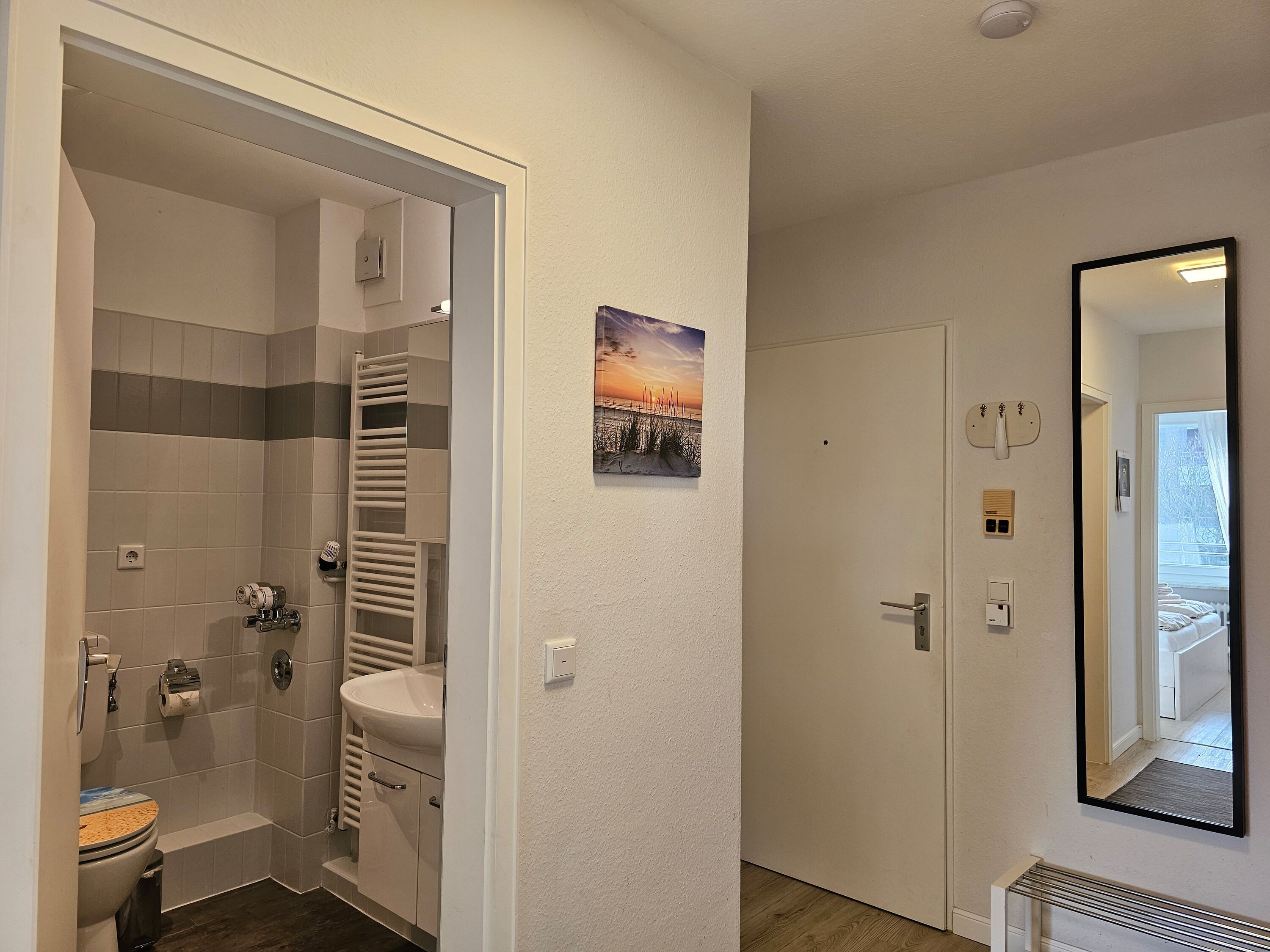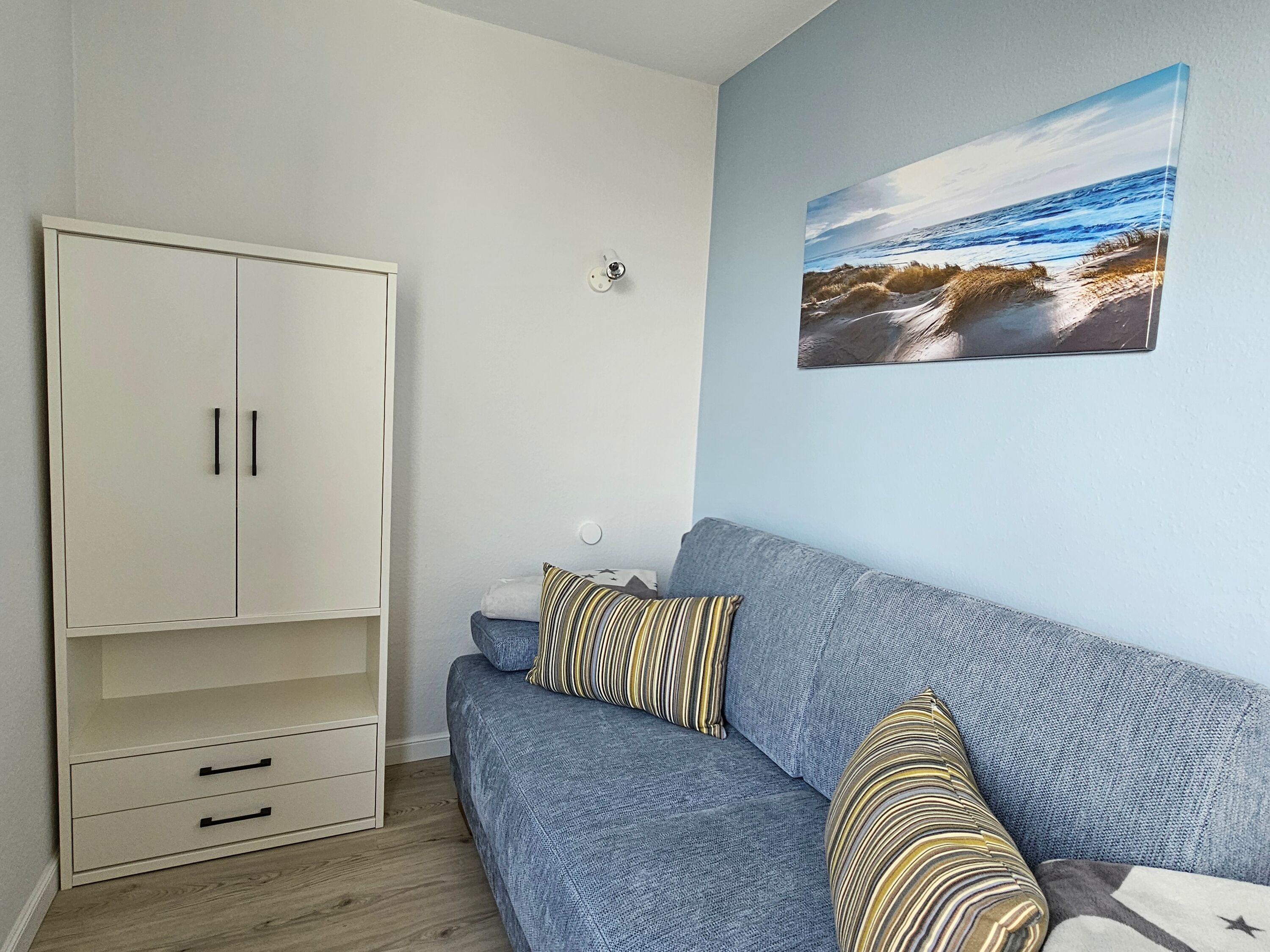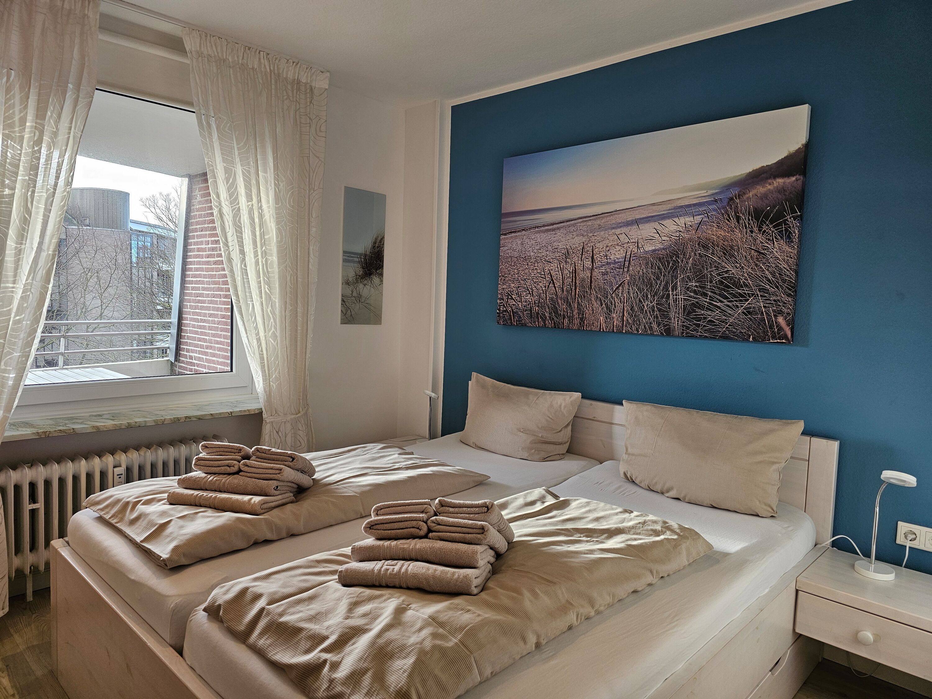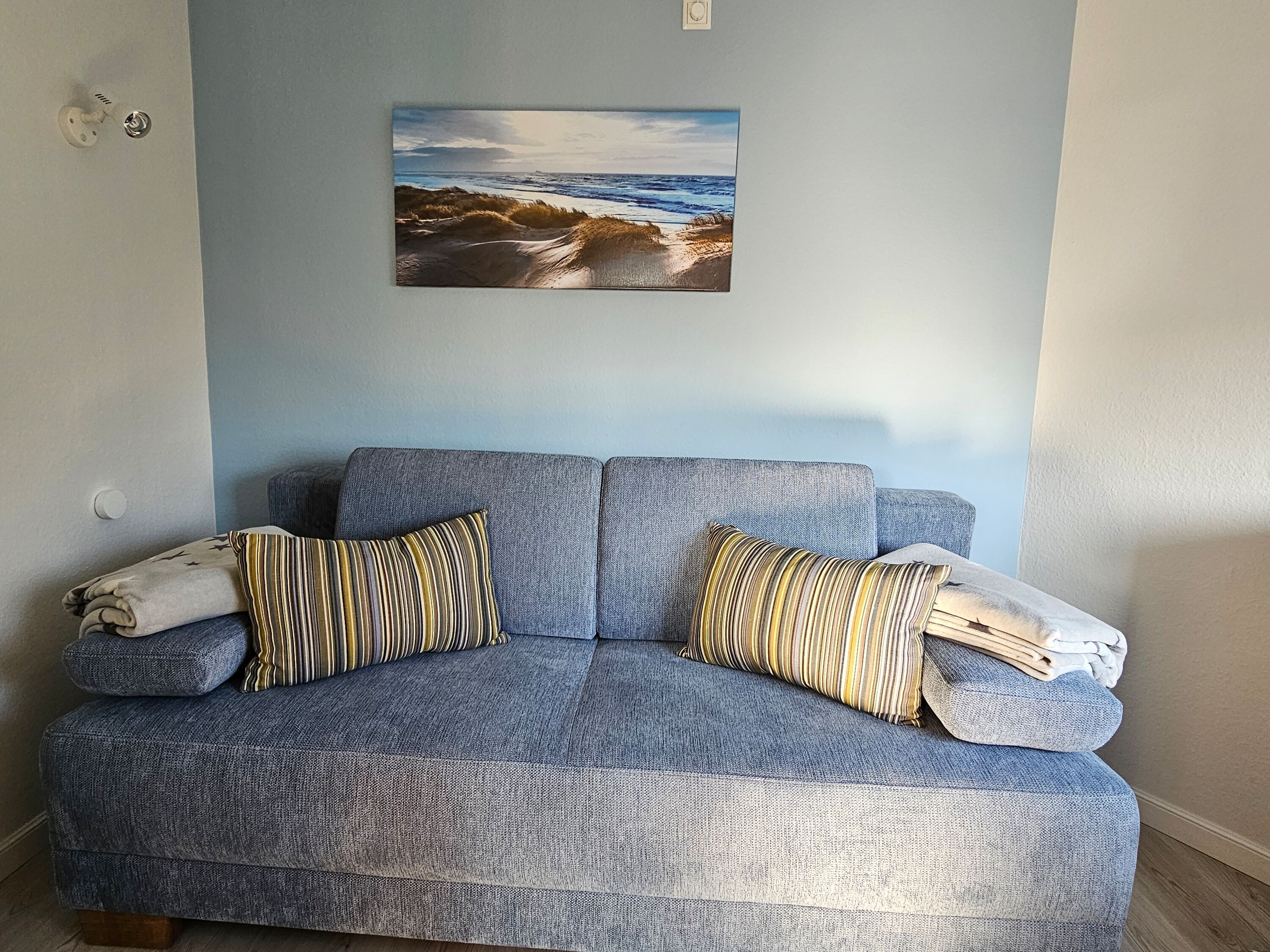 Die sehr gemütlich eingerichtete Ferienwohnung befindet sich am Südstrand im Haus Flora im 2. Stock (Fahrstuhl vorhanden) und ist ca. 60 m² groß. Sie ist sehr gut geeignet für 2 - 3 Personen und verfügt über ein Schlafzimmer mit Doppelbett sowie ein kleines Schlafzimmer mit einer komfortablen Schlafcouch für 1 Person. Ein großer Balkon lädt zum Entspannen ein - im Sommer mit Blick ins Grüne. In der Winterzeit können Sie durch Bäume das Meer sehen.