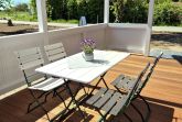 Nahe Grömitz befindet sich der idyllisch gelegene Hof Hagen weit ab von Trubel und Straßenlärm. Hier befinden sich die in 2025 neu errichteten Ferienhäuser. Sie bieten 51 m² ebenerdige Wohnfläche und verfügen über 2 Schlafzimmer, einen Wohn- und Essbereich mit Küche und ein Badezimmer mit Dusche. Die Ferienhäuser stehen einzeln und haben eine überdachte Terrasse.