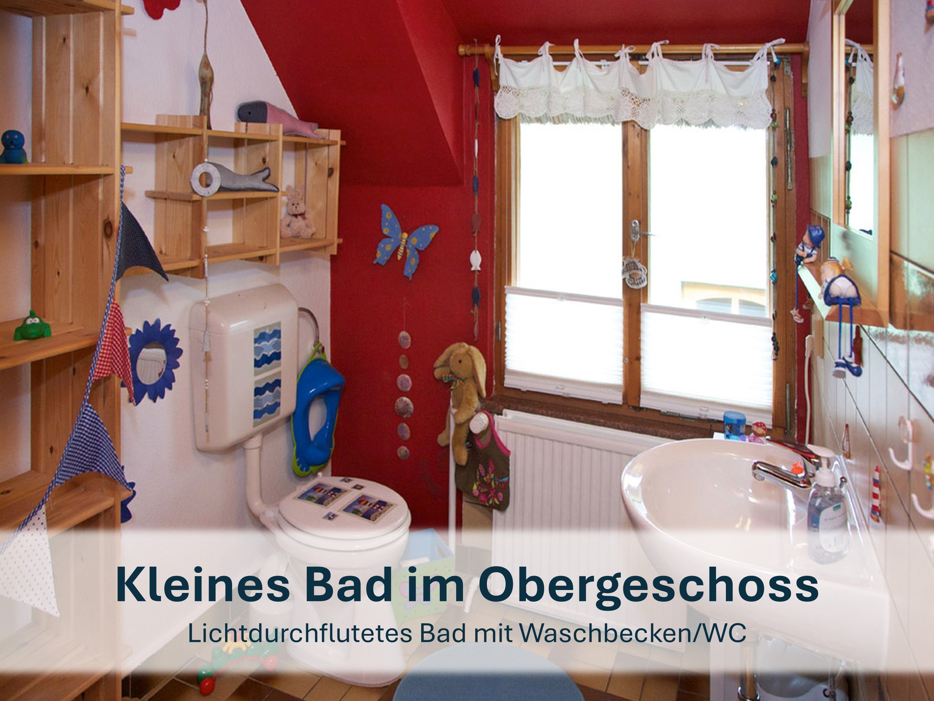 - Kinderbad mit WC, Waschbecken & Tritthocker.