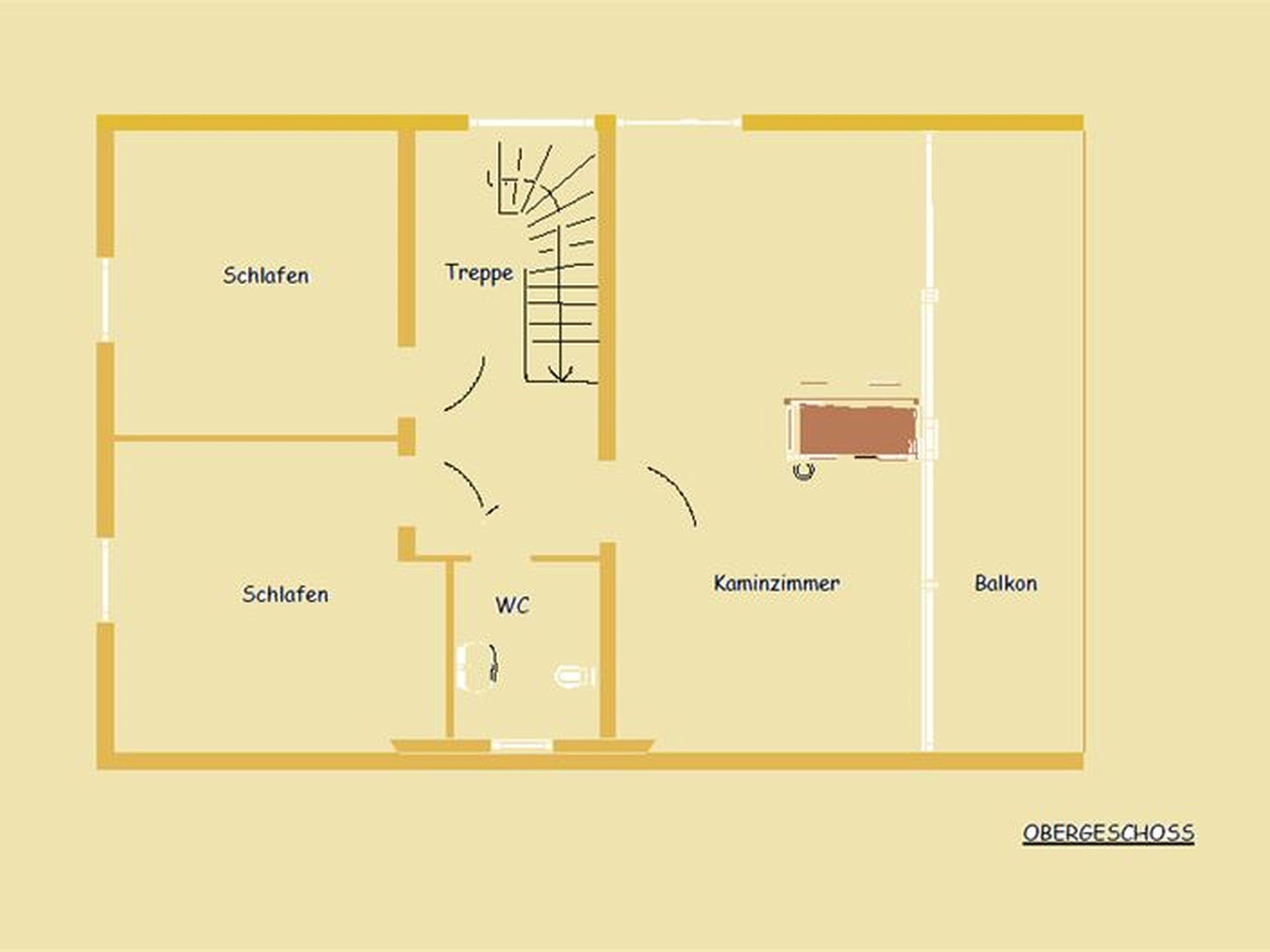 Oben: Schlafzimmer, Kinderzimmer, kleines Bad & Wohnbereich mit Kamin