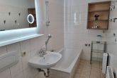 Das Badezimmer verfügt über eine Badewanne. Das erste Schlafzimmer ist mit einem großen Doppelbett ausgestattet.