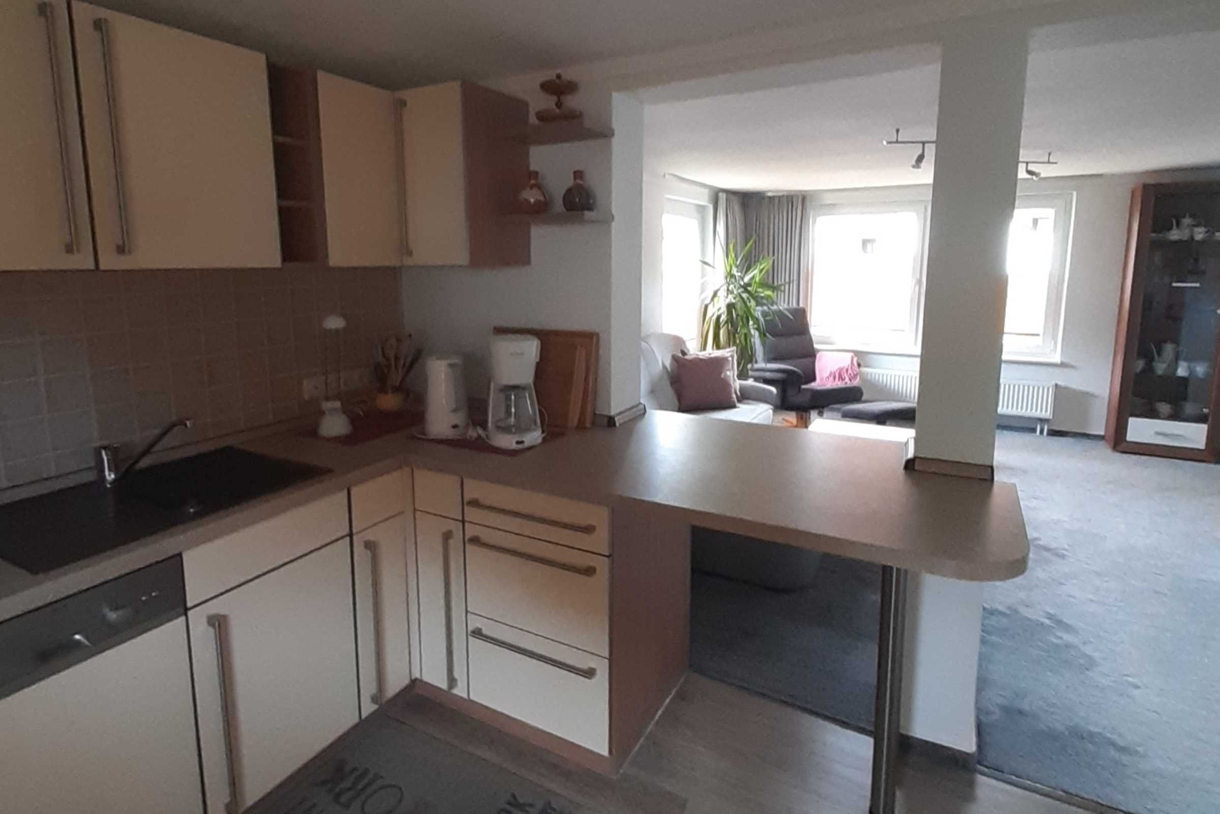 Weiterhin gibt es eine komplett eingerichte Küche (Geschirrspüler, Cerankochfeld, Backofen, Kühl-und Gefrierschrank, Mikrowelle, Toaster, Kaffeemaschine usw. ) und auch eine Essecke.