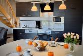 Die Ferienwohnung Nico ist eine 50 m² große, modern ausgestattete Wohnung. Im Obergeschoss befindet sich 1 Schlafzimmer mit Doppelbett und einem Einzelbett, (Babybett kostenfrei möglich). Im Erdgeschoss befinden sich der Wohn- und Kochbereich sowie das Bad mit Dusche/WC. Das Wohnzimmer ist mit Couchgarnitur, TV u. Radio ausgestattet. Der Kochbereich besteht aus einer Einbauküche mit Geschirrspüler, Backofen, Kühlschrank mit Gefriermöglichkeit, Kaffeemaschine, Wasserkocher, Toaster und Mikrowelle sowie einem Essbereich. Die Terrasse ist mit Sitzmöbeln ausgestattet, im Garten befindet sich eine Sitzecke mit Grillmöglichkeit. Ein PKW-Stellplatz und Unterstellmöglichkeit für Fahrräder sind auf dem Grundstück vorhanden. Bettwäsche, Geschirrhandtücher, Nebenkosten, Endreinigung und WLAN sind im Preis inklusive. Handtücher bringen Sie bitte mit. Die Ferienwohnung ist eine Nichtraucherwohnung, Haustiere sind nicht erlaubt.