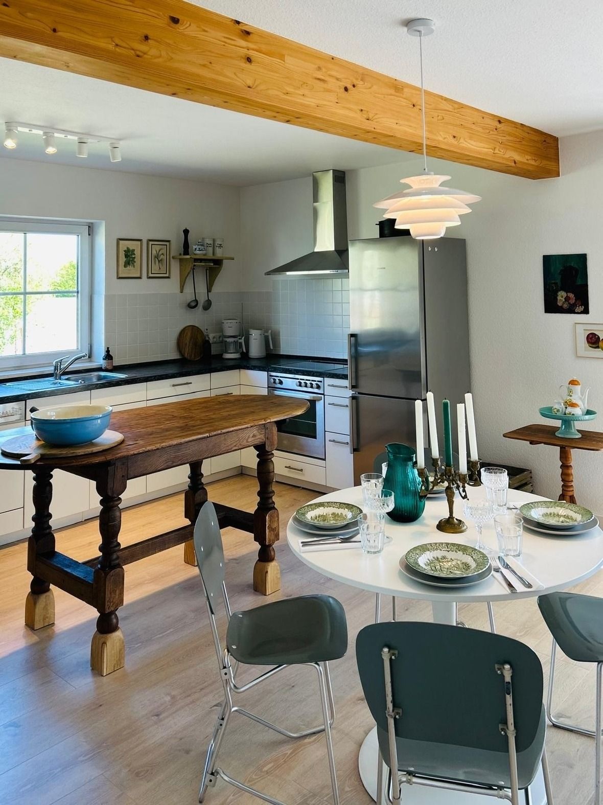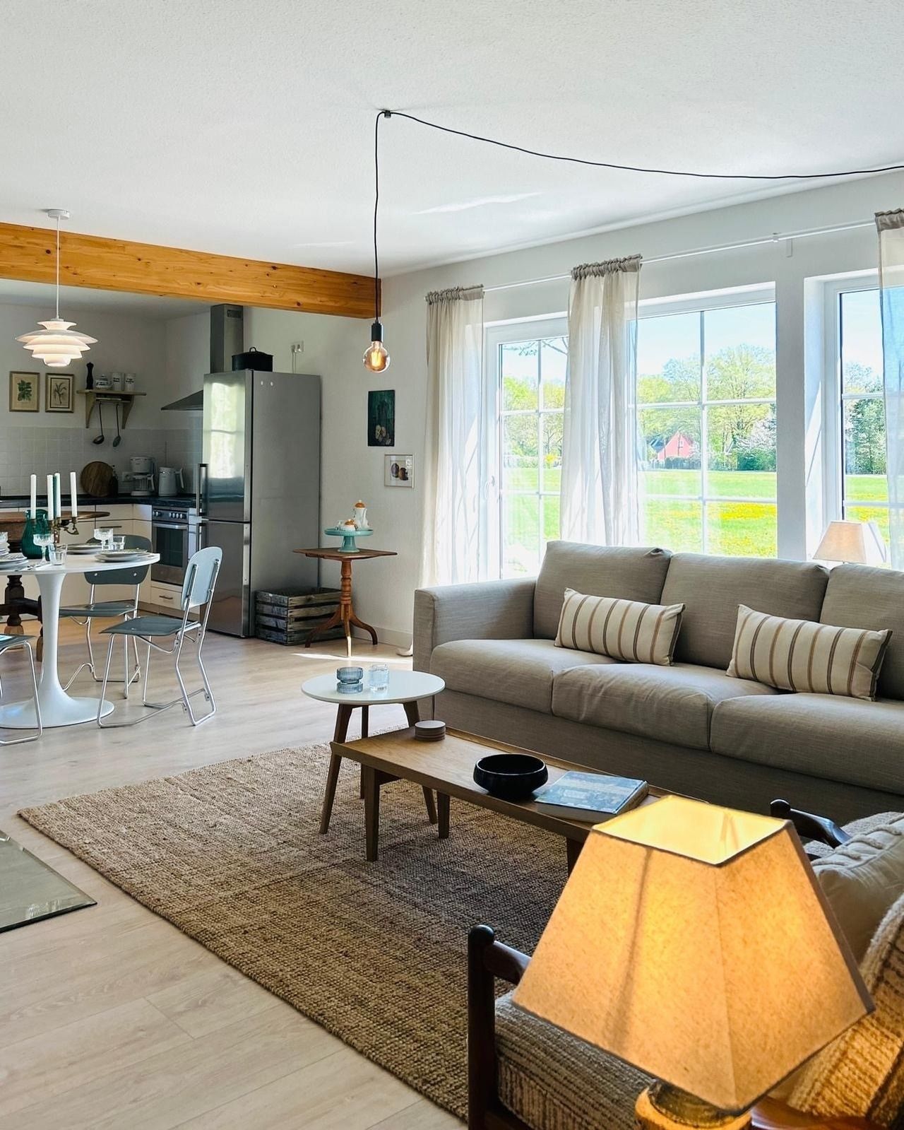 Das Ferienhaus verfügt über alle Annehmlichkeiten, die es dazu braucht. Zwei Schlafzimmer für insgesamt vier Personen sowie ein großzügiger Wohn- und Essbereich mit einer vollausgestatteten Küche stehen euch zur Verfügung. Kuschelig wird es am Kaminofen und ordentlich geschwitzt werden kann in der Sauna, die sich direkt im Haus befindet. Der weitläufige Garten und die Terrasse laden zum Entspannen und Verweilen ein. Freut euch auf ein unbeschwertes Lebensgefühl auf dem Land, unweit von der Küste und tollen Attraktionen in der Region entfernt.