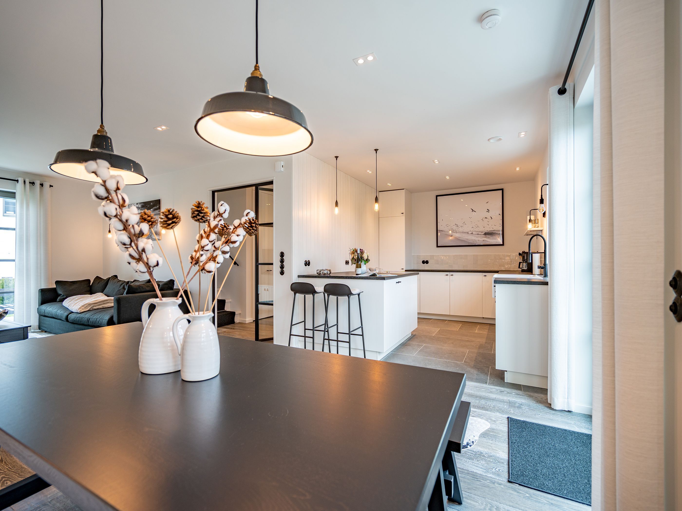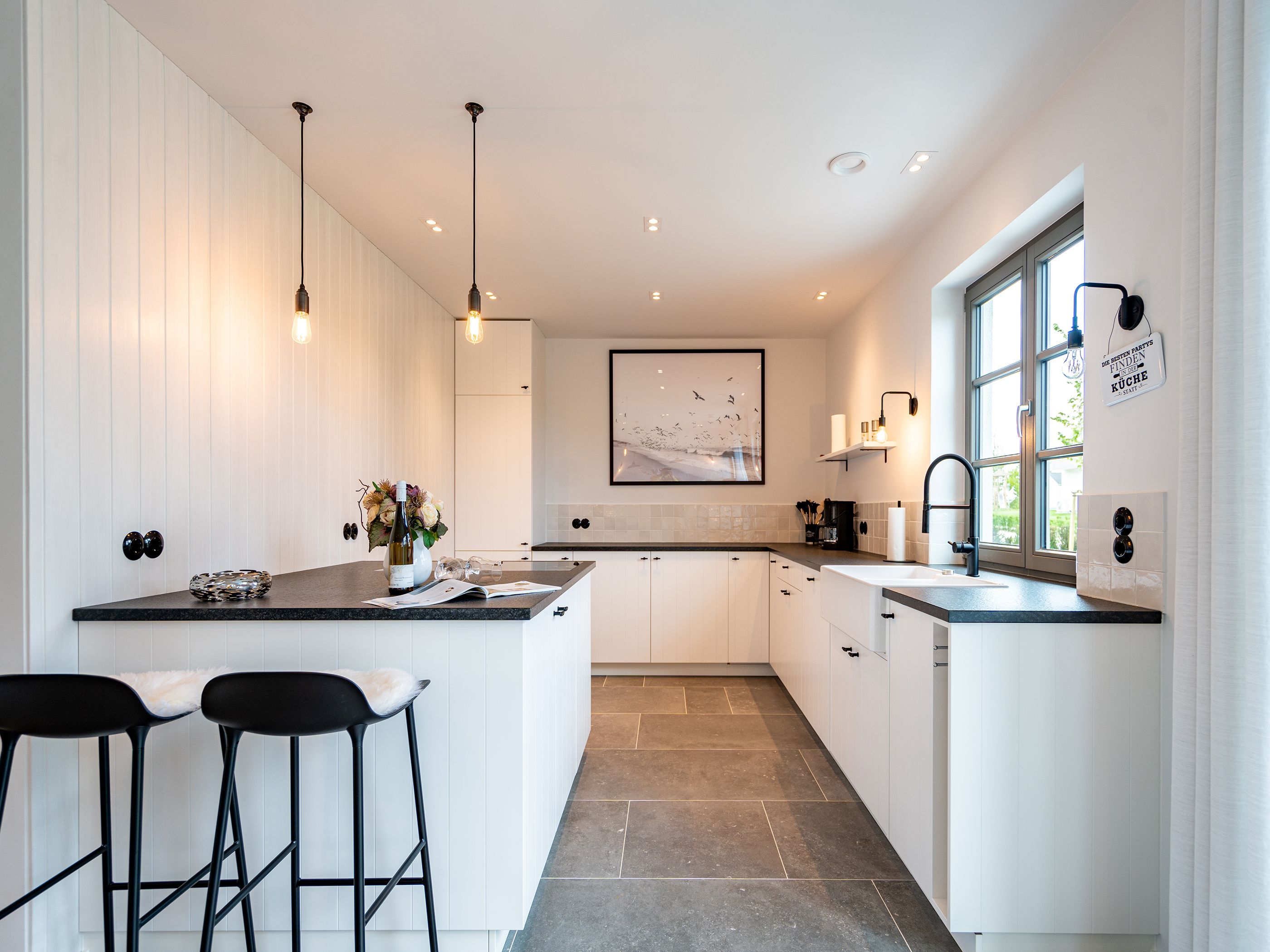 Willkommen in Ihrem exklusiven Haus N° 1 im malerischen Friesenstil! Umgeben von unberührter Natur und idyllischer Ruhe erwartet Sie hier ein traumhaftes Reetdachhaus, das Ihnen einen unvergesslichen Aufenthalt beschert. Die Lage ist perfekt nur wenige Gehminuten trennen Sie vom Haff und der Badebucht, wo Sie entspannte Stunden am Wasser genießen können. Auf großzügigen 130 m² bietet das Ferienhaus Platz für bis zu vier Personen und begeistert mit einer hochwertigen Ausstattung. Edle Echtholzböden und italienische Steinfliesen schaffen eine stilvolle und gemütliche Atmosphäre. Der offene Wohnbereich im Erdgeschoss lädt mit einer komfortablen Sitzgruppe, einem elektrischen Kamin und einem Flachbildfernseher zum Verweilen ein. Die moderne, voll ausgestattete Küche verfügt über eine Kochinsel mit Tresen sowie einen großen Esstisch mit zwei Bänken ideal für gesellige Mahlzeiten. Ein Gäste-WC sowie ein Hauswirtschaftsraum mit Waschmaschine und Trockner sorgen für zusätzlichen Komfort. Im Obergeschoss erwarten Sie zwei gemütliche Schlafzimmer, jeweils mit einem komfortablen Doppelbett (1,80 m x 2,00 m) und einem Flachbildfernseher. Hier können Sie sich zurückziehen und die Erlebnisse des Tages entspannt Revue passieren lassen. Ein Kinderreisebett findet ebenfalls problemlos Platz. Das Haus verfügt über zwei moderne Badezimmer: Das Hauptbad beeindruckt mit einer Badewanne, einer Dusche, einem Doppelwaschtisch und einer entspannenden Infrarot-Sauna, während das zweite Bad als Masterbad direkt an eines der Schlafzimmer angeschlossen mit einer Dusche, einem WC und einem weiteren Doppelwaschtisch ausgestattet ist. Für Ihren Komfort sind die Betten bei Anreise frisch bezogen und Handtücher liegen bereit. Der weitläufige Garten lädt mit zwei Sonnenterrassen dazu ein, die Natur in vollen Zügen zu genießen. Ein gemütlicher Strandkorb bietet den perfekten Platz für entspannte Stunden. Selbstverständlich steht Ihnen kostenloses WLAN zur Verfügung, sodass Sie jederzeit mit Ihren Lieben in Verbindung bleiben können. Ein eigener PKW-Stellplatz (Nr. 30) direkt am Haus sowie ein abschließbares Fahrrad-Gartenhaus mit Steckdose für E-Bikes runden das Angebot ab. Erleben Sie unvergessliche Urlaubsmomente in diesem luxuriösen Ferienhaus und lassen Sie sich von der Schönheit der Umgebung und der wohltuenden Ruhe verzaubern. Wir freuen uns darauf, Sie willkommen zu heißen!