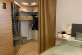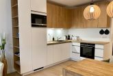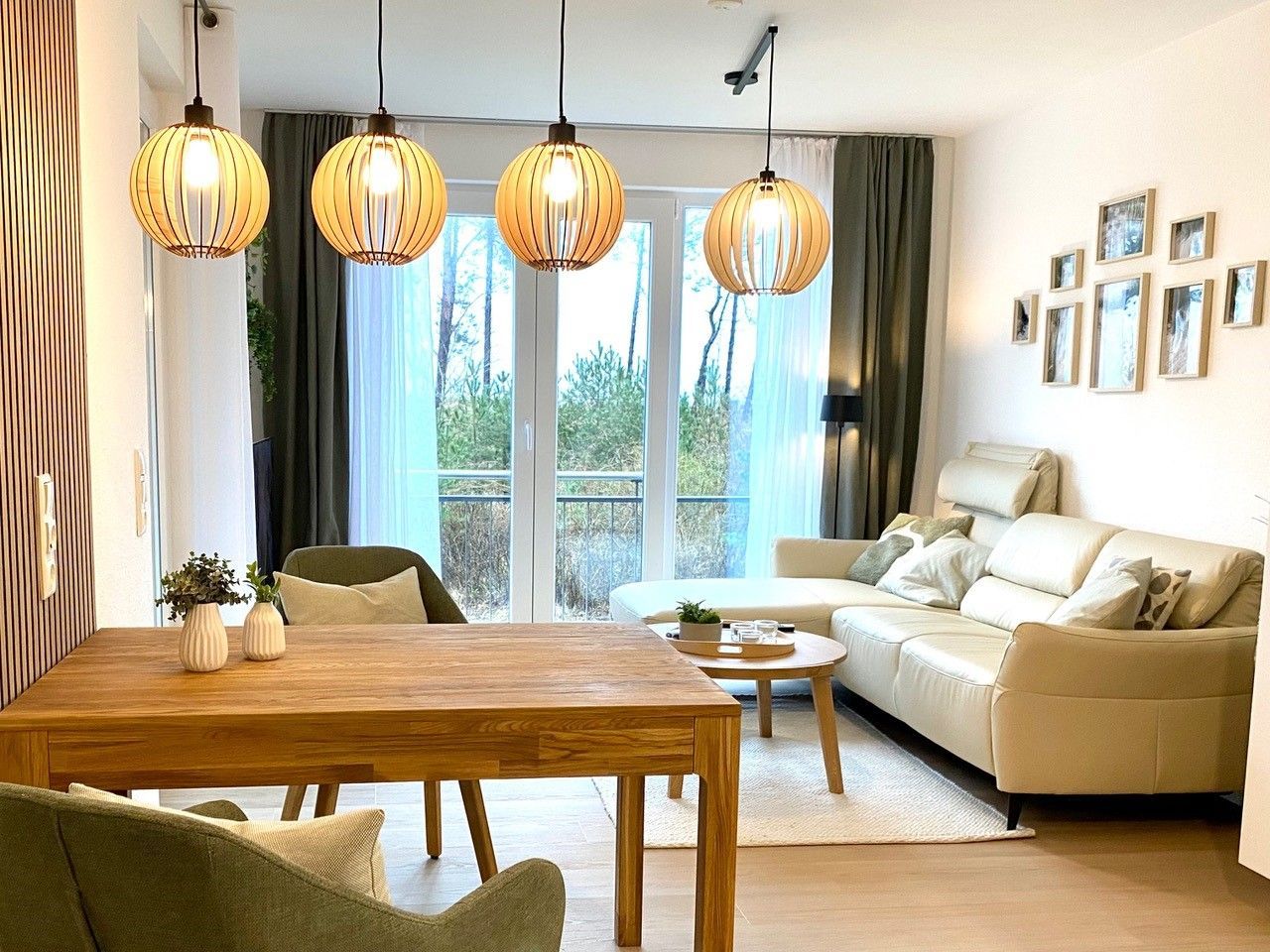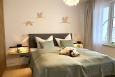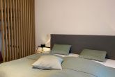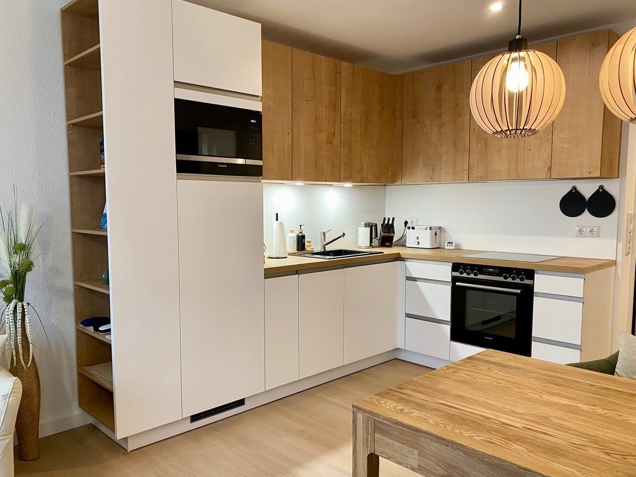 Die Wohnung ist hoch- und neuwertig eingerichtet und vorallem nachhaltig eingerichtet. Das Schlafzimmer mit Echtholzmöbeln beherbergt ein großes Doppelbett, einen begehbaren Kleiderschrank und eine Infrarotkabine. In den großzügigen Wohnbereich ist eine moderne, vollausgestattete Küche integriert, außerdem finden Sie einen Essbereich sowie eine behagliche Couchecke mit großem TV-Gerät.