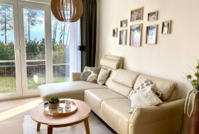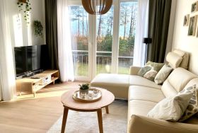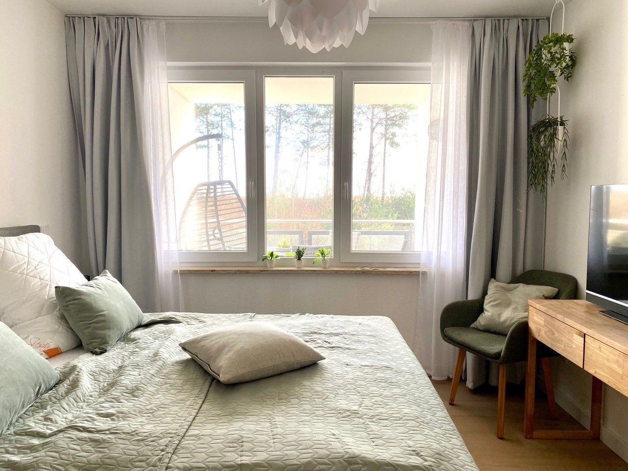 Sie besitzt einen Balkon mit z.T. Meerblick. Von hier aus genießen Sie den Blick über die Ostsee und verbringen eine entspannte Zeit.