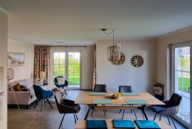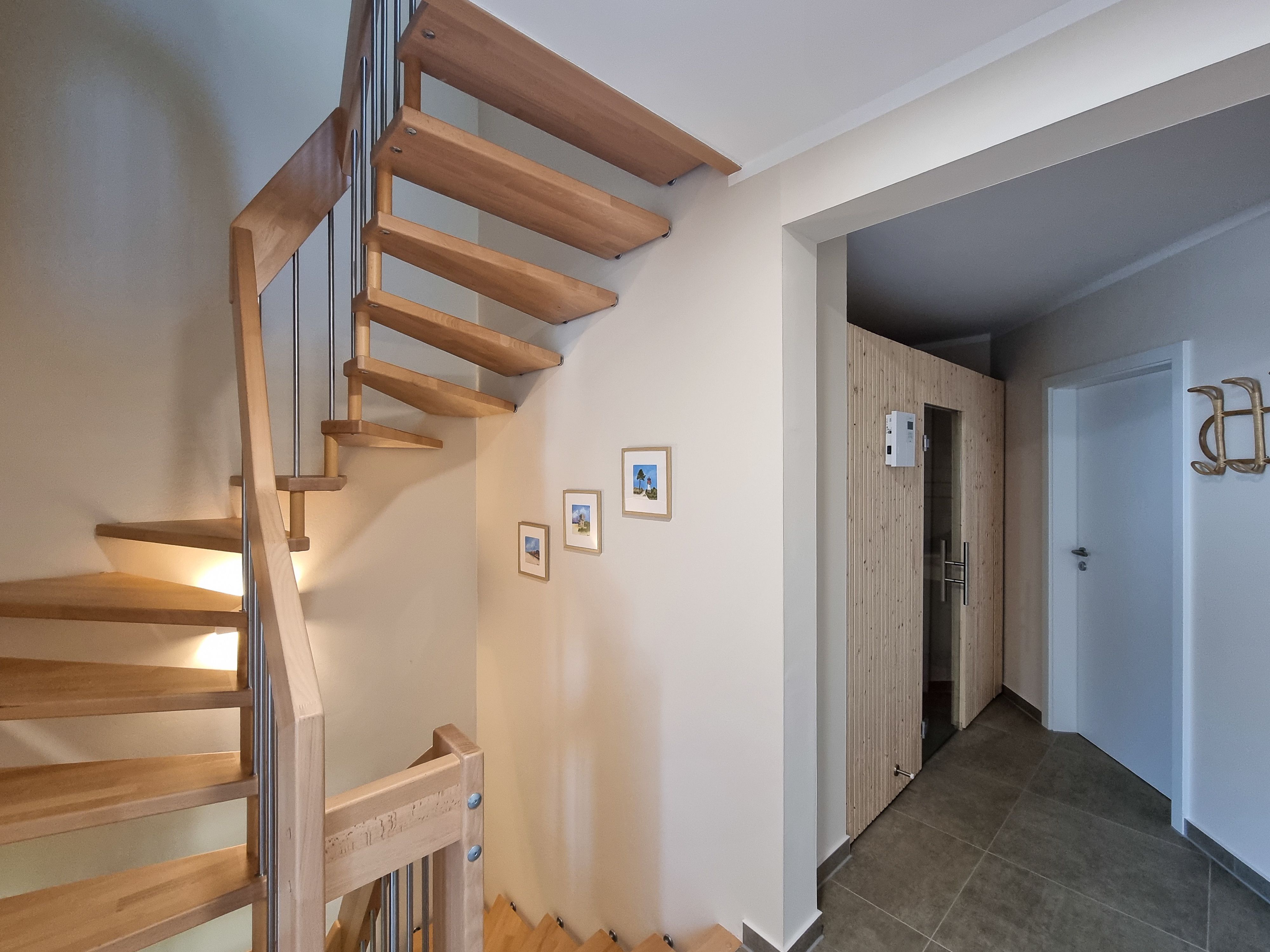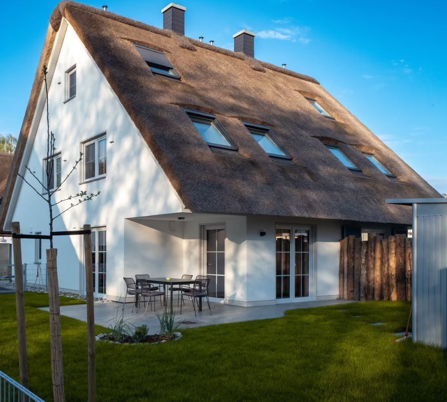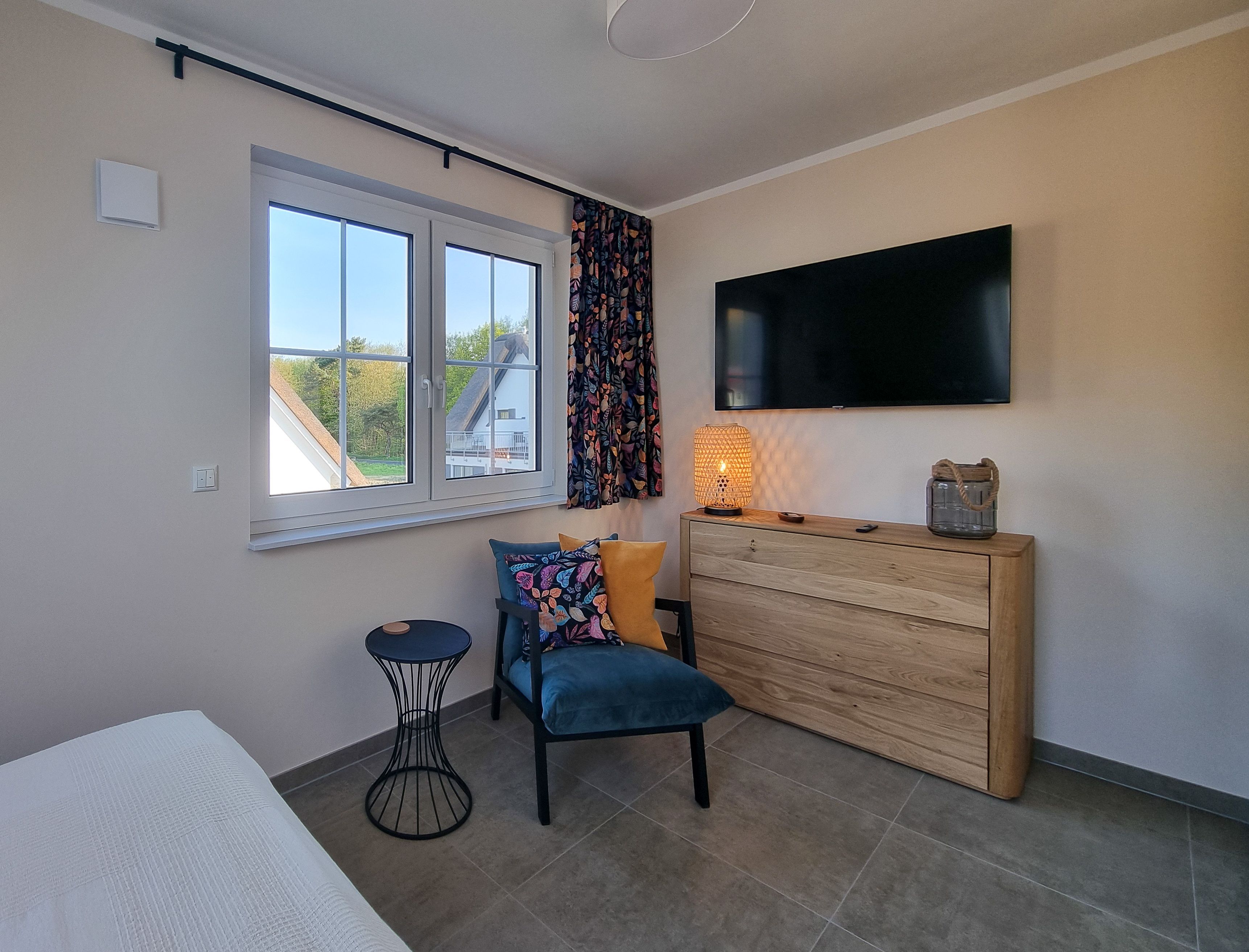 Unser Ferienhaus Sternblick ist nigelnagelneu und mit allem ausgestattet, was das Herz begehrt und erfreut durch viele funktionale und neckische Details. Das Feriendomizil mit kleinem Garten auf umzäuntem Grundstück befindet sich in zweiter Reihe direkt hinter dem Deich des Breeger Boddens, unweit des Ostseestrandes. In drei Schlafzimmern (2x 1 Doppelbett; 1x 2 Einzelbetten) finden bis zu 6 Personen ein Plätzchen. Der Wohnbereich mit angeschlossener Terrasse und integrierter Küche ist von gemütlichen Sitzmöbeln umgeben. Der große Esstisch lädt zu Geselligkeit mit der Familie und Freunden ein. Im EG befindet sich außerdem ein separater TV Raum. Außerdem ist der Sternblick durch schnelles Internet und einen hellen Arbeitsplatz Homeoffice tauglich. Die Sauna im OG (kostenpflichtig) eignet sich besonders an kalten Tagen zum Relaxen und Durchwärmen. Fahrräder können im Gartenhaus abgestellt werden.