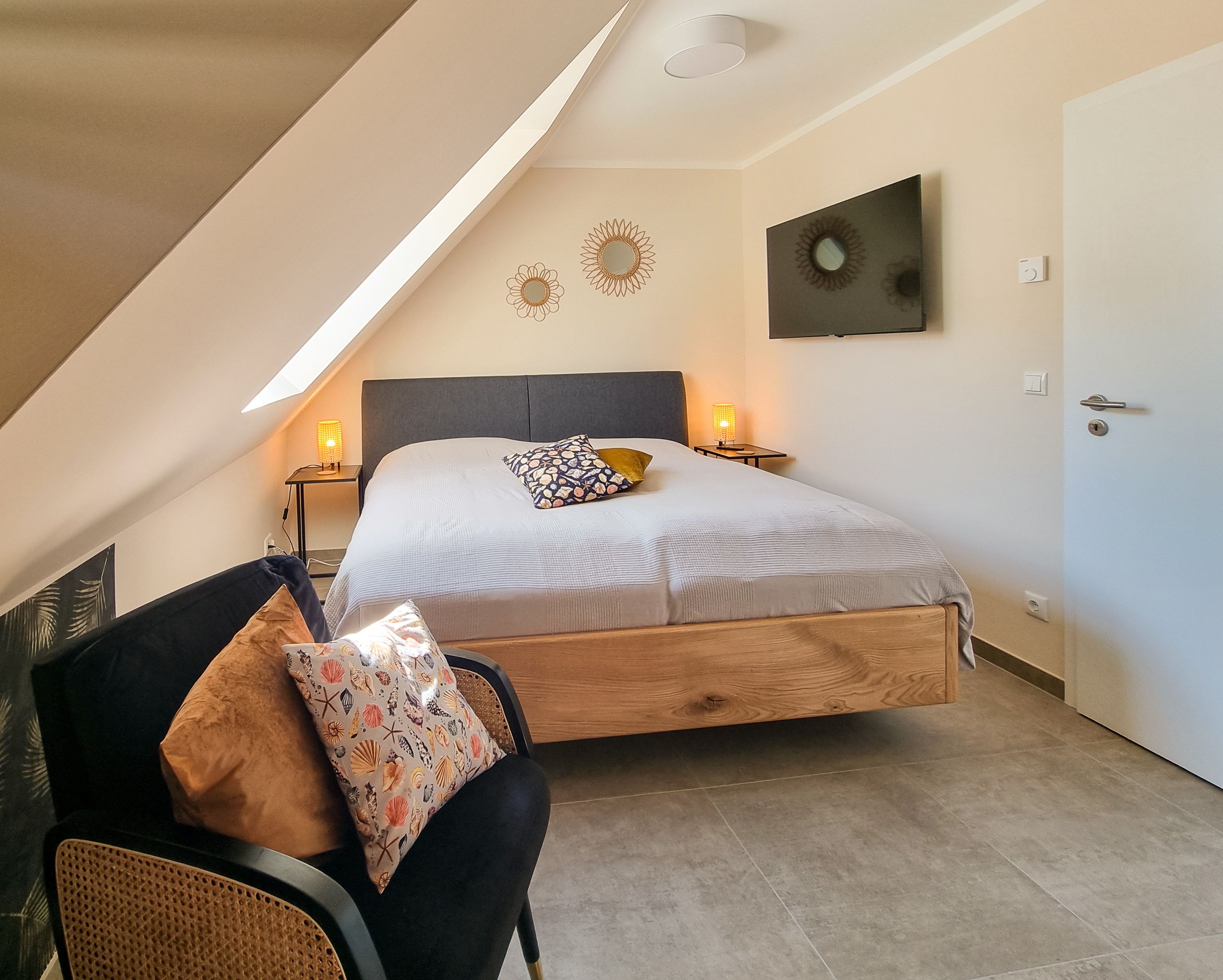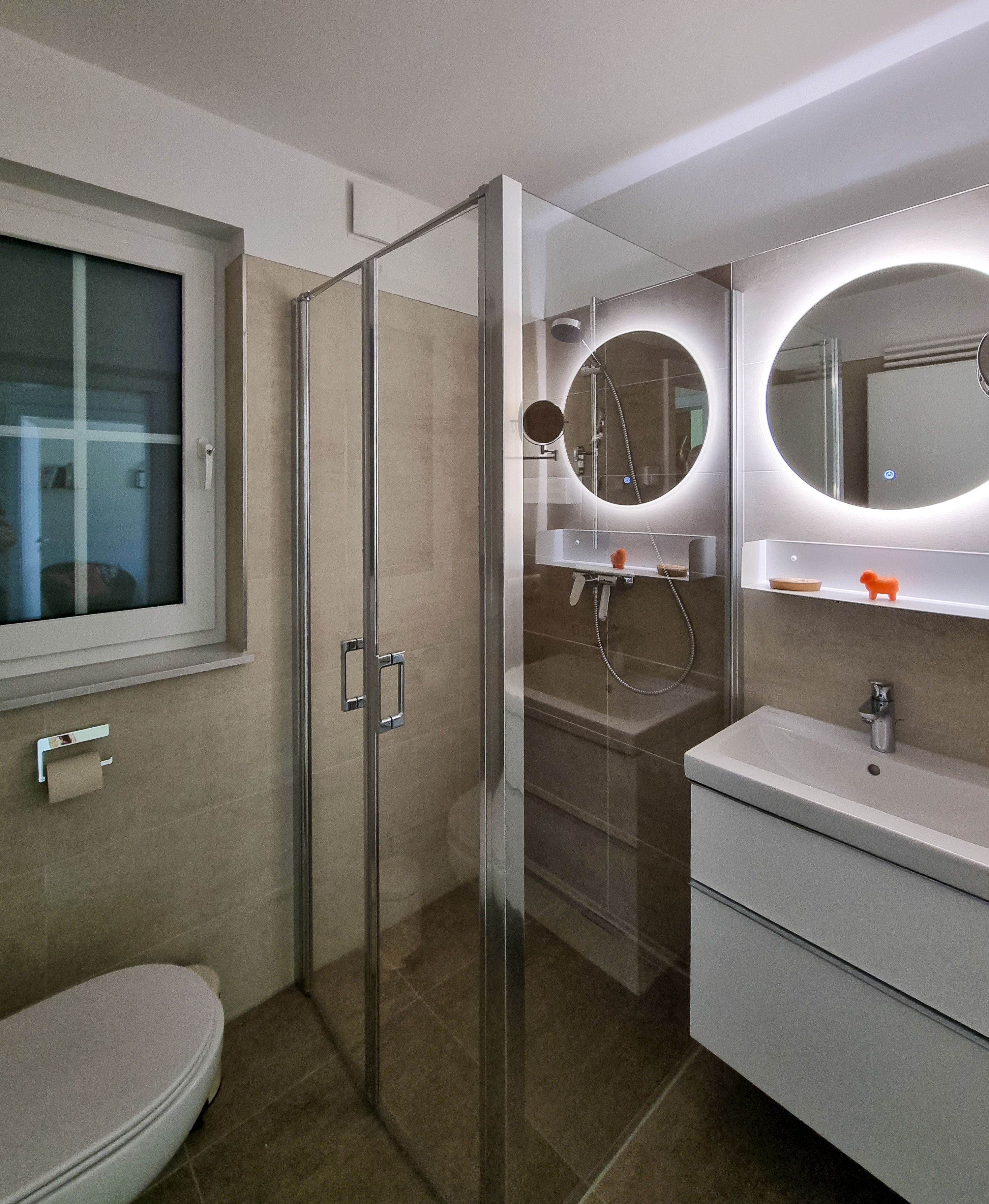 - 3 Schlafzimmer (im OG: 2x je ein Doppelbett; Spitzboden: 1x 2 Einzelbetten)