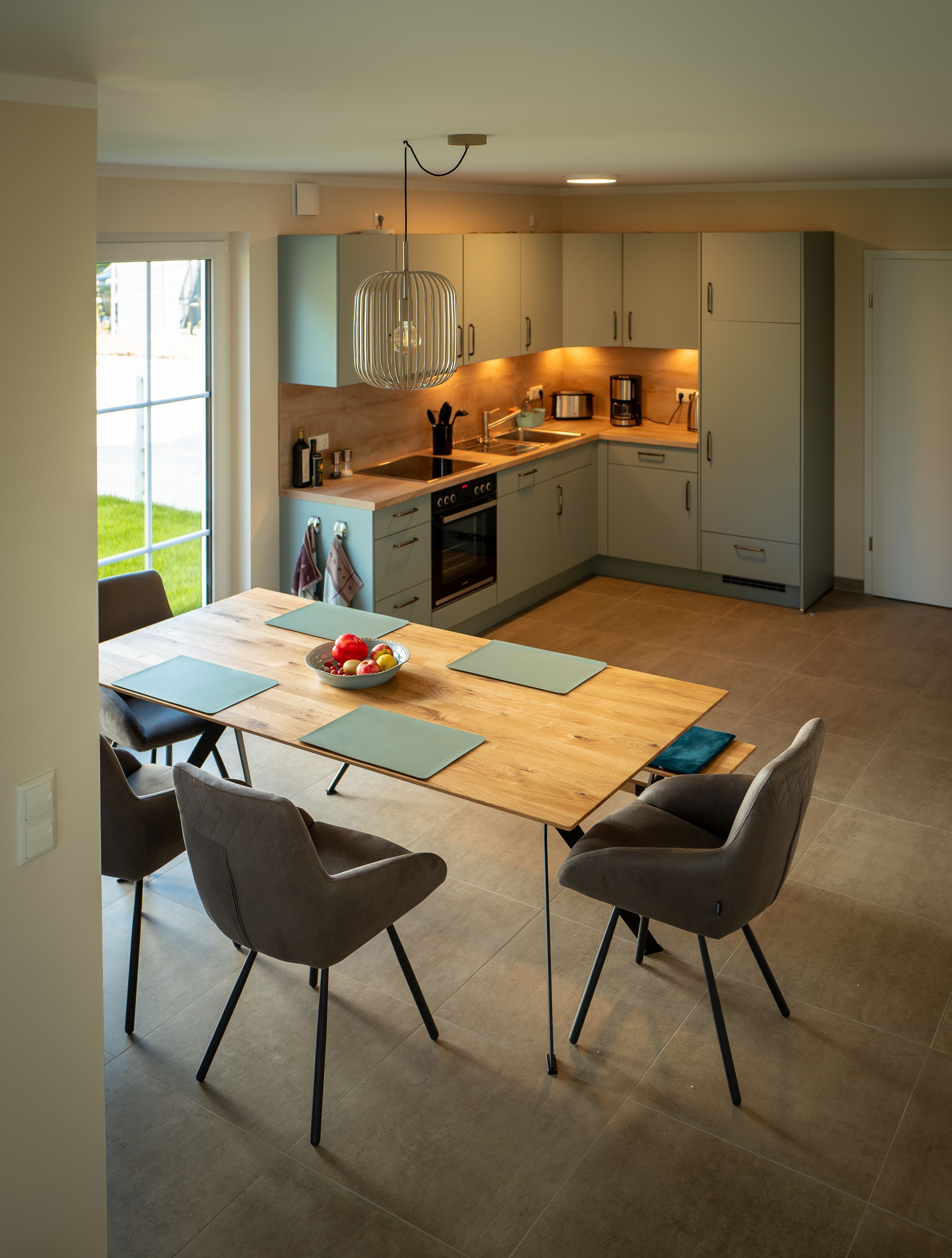 - vollausgestattete Küche mit Herd & Backofen, Geschirrspüler, Kühlschrank mit Gefrierfach, Kaffeemaschine, Toaster, Wasserkocher
