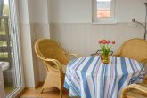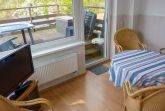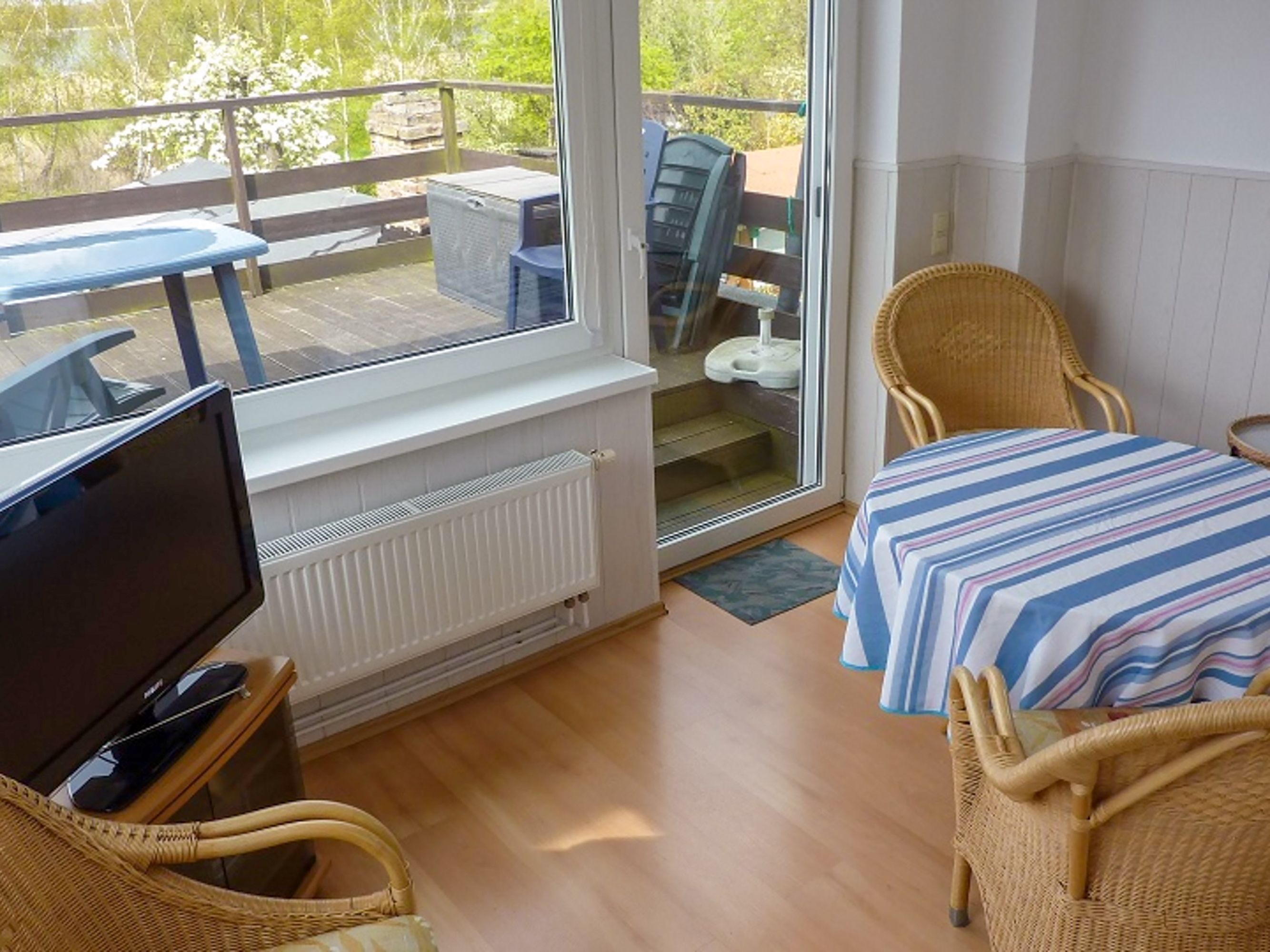 Die Ferienwohnung Ostsee bietet auf 60 m² Platz für 4 Personen und befindet sich im Obergeschoss des Hauses. Das Wohnzimmer ist mit einem gemütlichen Schlafsofa (180x200), einem TV und einem Essbereich ausgestattet, der für gemeinsame Mahlzeiten oder gesellige Stunden einlädt. Vom Wohnzimmer aus hast du Zugang zur Sonnenterrasse, die einen herrlichen Seeblick bietet – perfekt, um den Tag zu genießen. Das Schlafzimmer verfügt über ein komfortables Doppelbett (180x200) und einen Kleiderschrank für deine persönlichen Dinge. Die separate Küche ist gut ausgestattet mit einem Backofen, Herd, Kühlschrank, Spülmaschine, Mikrowelle, Kaffeemaschine, Toaster und Wasserkocher, sodass du hier alles hast, was du zum Kochen benötigst. Das Bad ist mit einer Dusche und einem WC ausgestattet.