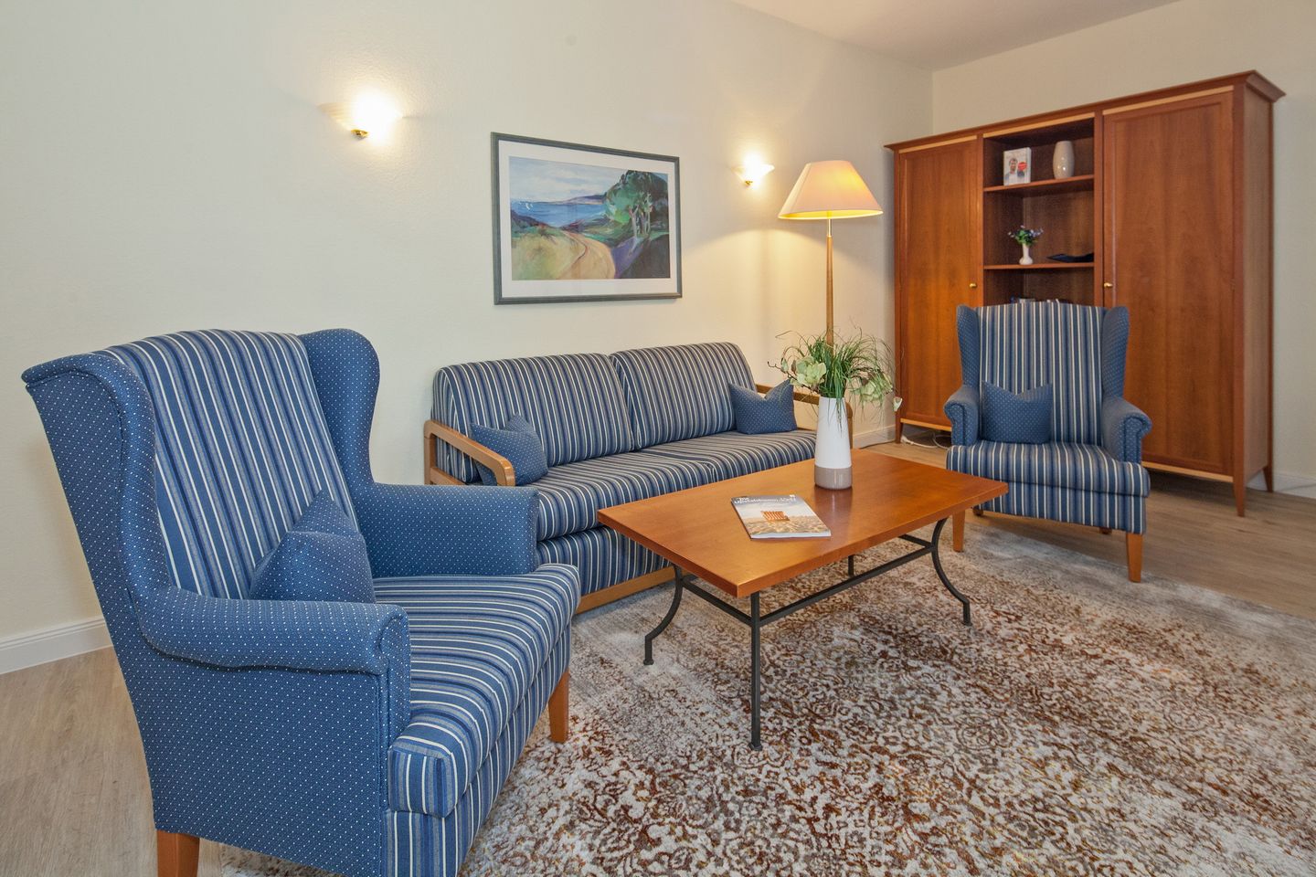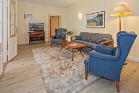 Die großzügig geschnittene Nichtraucher-Ferienwohnung mit Duschbad verfügt über kostenfreies WLAN und besteht aus einem Schlafzimmer mit Doppelbett sowie dem Wohnbereich mit Doppelschlafcouch, Flatscreen-TV und HiFi-Anlage. Ein Wintergarten mit Blick zur Strandpromenade gehören ebenso zur Wohnung, wie die voll ausgestattete offene Küche mit Wasserkocher, Kaffeemaschine, Toaster, Herd mit Backofen, Geschirrspüler, Mikrowelle und einem Kühlschrank mit Gefrierfach.
