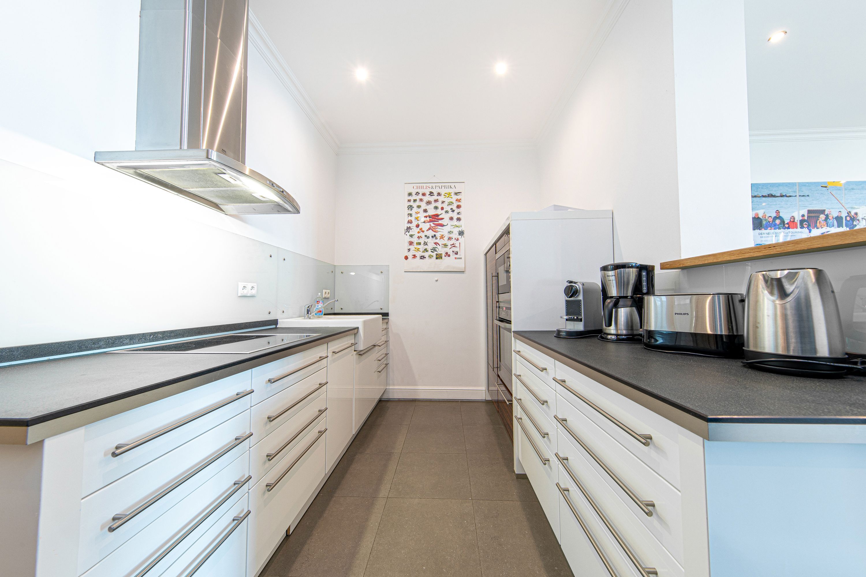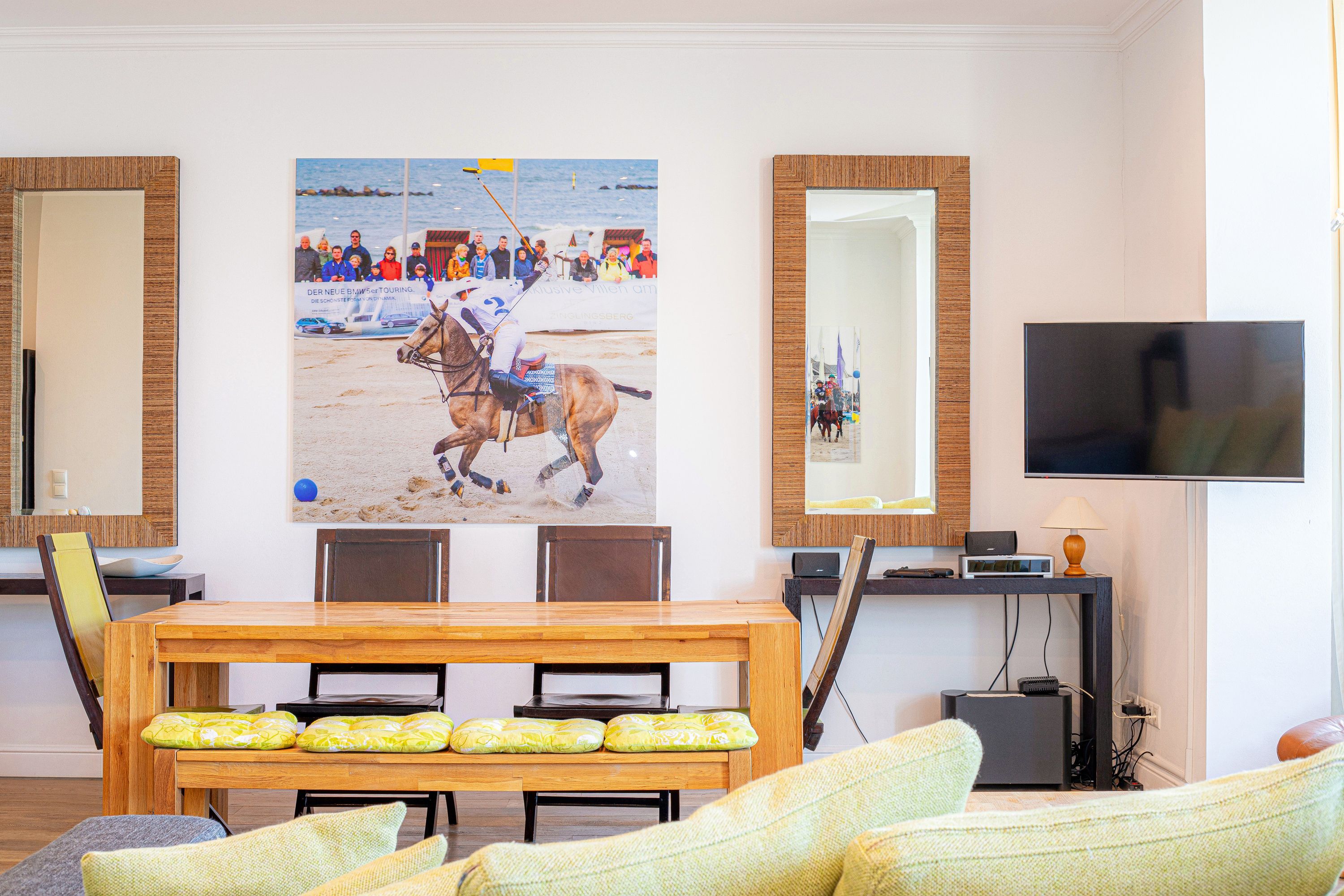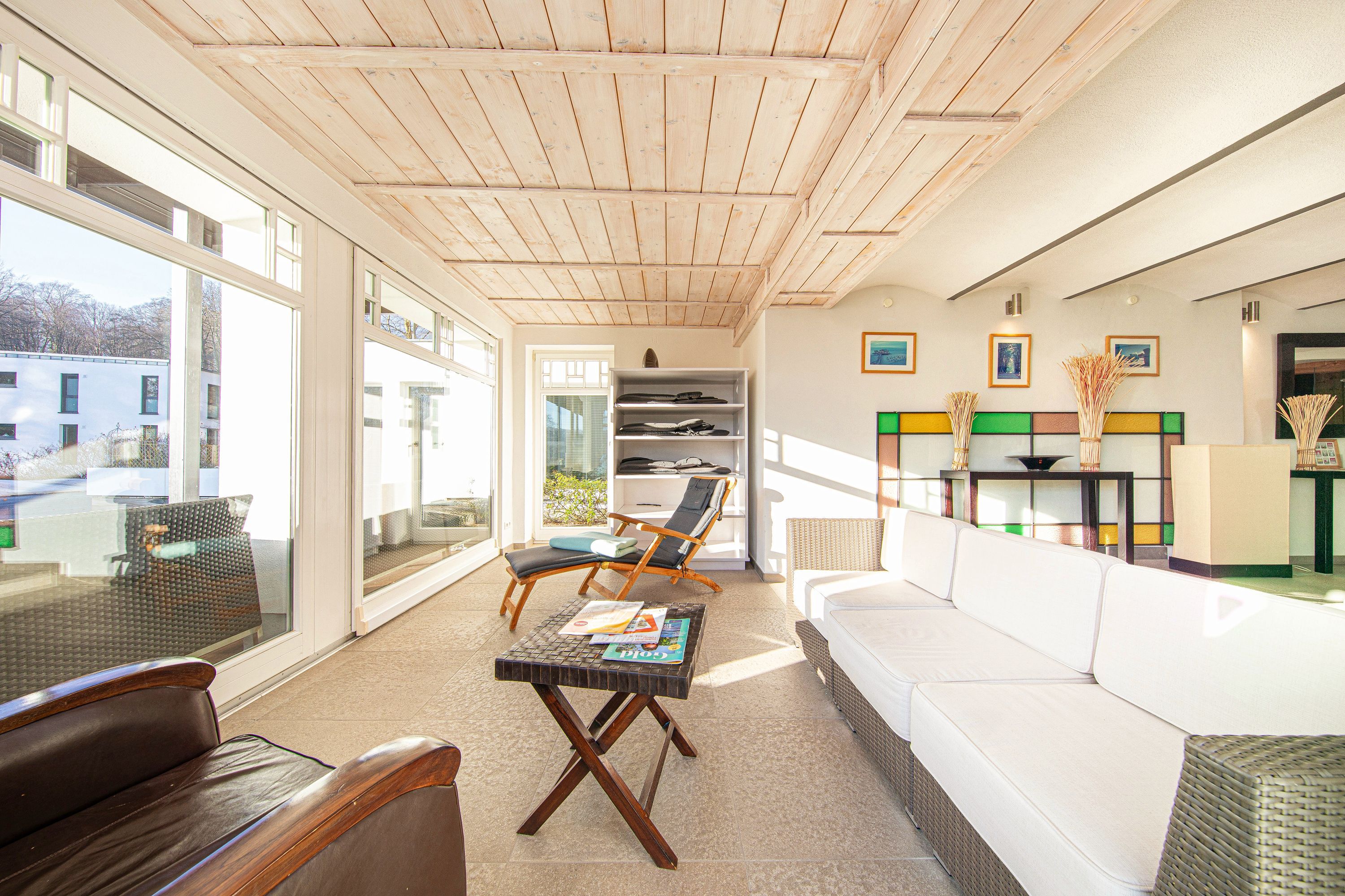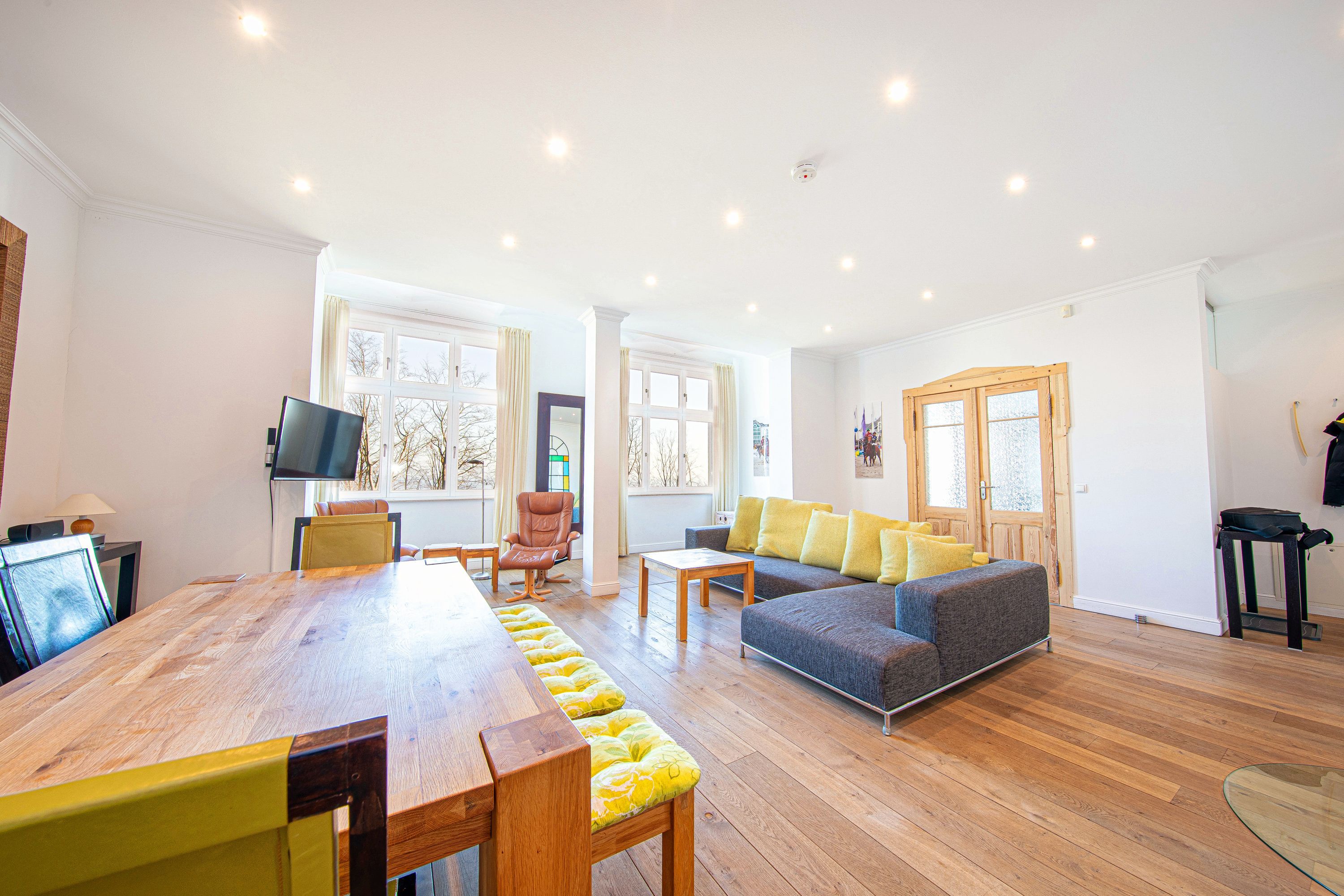 In Hochpaterre befindet sich der Eingang zu Ihrem rund 110m2 großen Traumdomizil. Aus dem Wohnbereich und dem daran angrenzenden Schlafzimmer 1, lässt sich ein fantastischer und unverbaubarer Meerblick genießen. Den Blick entlang der Ostseeküste weit auf das Meer schweifen zu lassen, lässt einem fast den Atem stocken -wirklich atemberaubend-. Neben dem großzügigen Wohnbereich, welcher mit exklusiven Möbeln eingerichtet wurde, befinden sich in dieser mondänen Wohnung auch 2 Schlafzimmer mit Bad en Suite, sowie auch eine hochwertige und sehr gut ausgestattete Küche. Hier lässt sich für die gesamte Familie kochen und private Zeit genießen. Die Wohnung verfügt zudem über 2 Balkone/Terrassen welche sich durch die Ausrichtung sowohl für ein sommerliches Frühstück draußen, als auch für einen Sundowner am Abend nutzen lassen. Als kleines Highligt der Wohnung fällt sofort der alte Holzfussboden aus massiver Eiche auf, welcher durch die Jahre der Nutzung eine einmalige Patina aufweist und so seine ganz eigene Geschichte erzählt. Der Boden verleiht der Wohnung den Charakter, der sich über die gesamte Villa darstellt. So herrscht hier eine tolle Symbiose aus Alt und Neu.