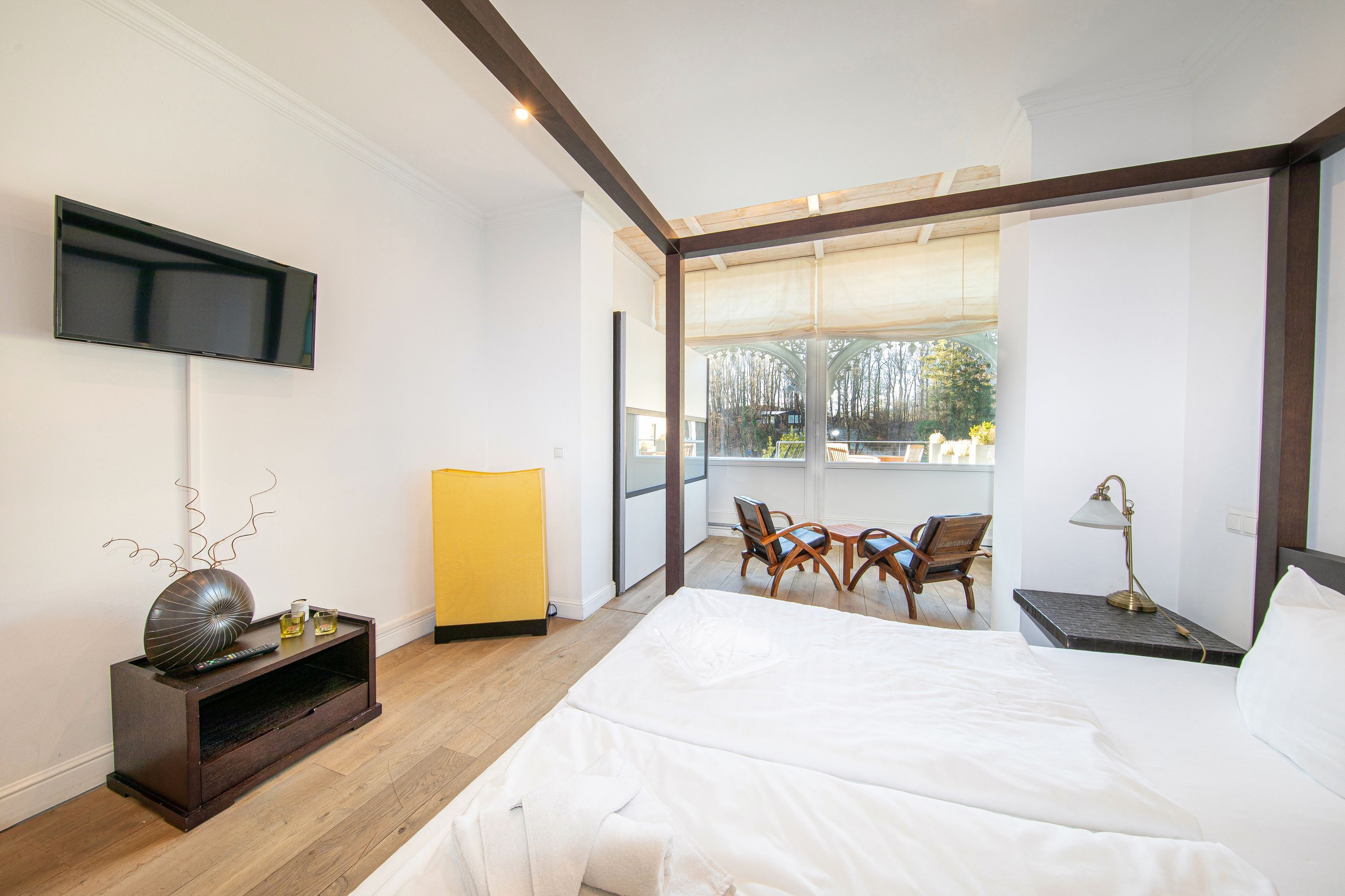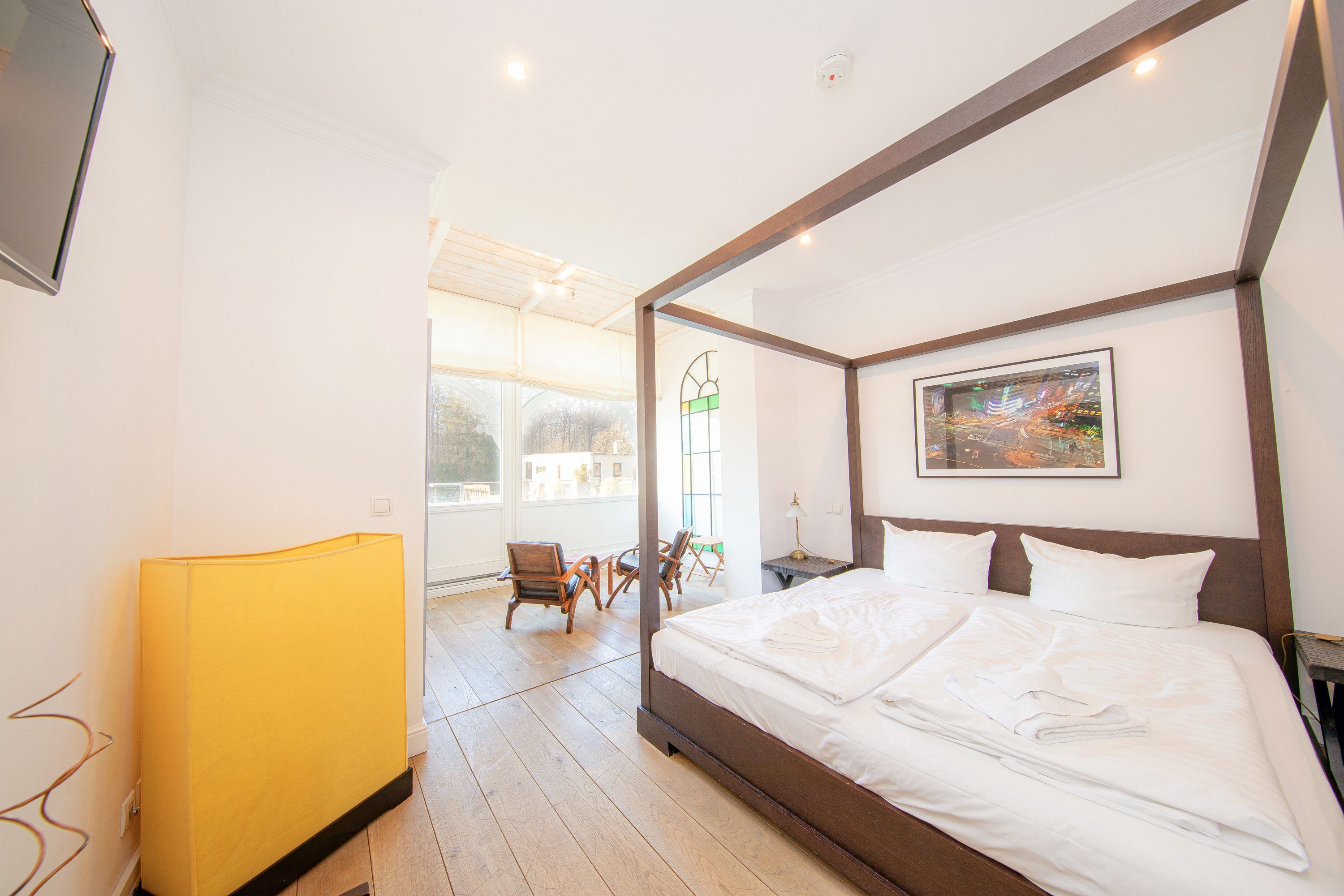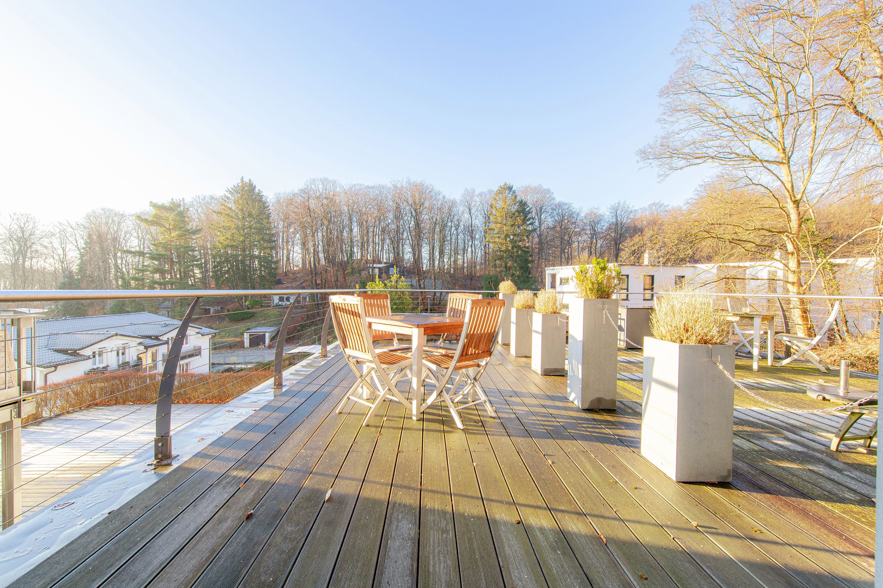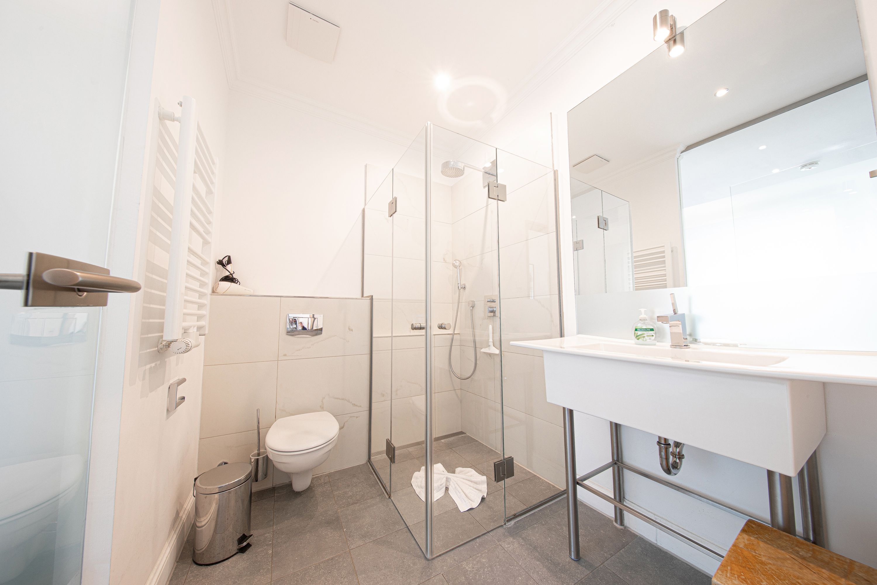 In Hochpaterre befindet sich der Eingang zu Ihrem rund 110m2 großen Traumdomizil. Aus dem Wohnbereich und dem daran angrenzenden Schlafzimmer 1, lässt sich ein fantastischer und unverbaubarer Meerblick genießen. Den Blick entlang der Ostseeküste weit auf das Meer schweifen zu lassen, lässt einem fast den Atem stocken -wirklich atemberaubend-. Neben dem großzügigen Wohnbereich, welcher mit exklusiven Möbeln eingerichtet wurde, befinden sich in dieser mondänen Wohnung auch 2 Schlafzimmer mit Bad en Suite, sowie auch eine hochwertige und sehr gut ausgestattete Küche. Hier lässt sich für die gesamte Familie kochen und private Zeit genießen. Die Wohnung verfügt zudem über 2 Balkone/Terrassen welche sich durch die Ausrichtung sowohl für ein sommerliches Frühstück draußen, als auch für einen Sundowner am Abend nutzen lassen. Als kleines Highligt der Wohnung fällt sofort der alte Holzfussboden aus massiver Eiche auf, welcher durch die Jahre der Nutzung eine einmalige Patina aufweist und so seine ganz eigene Geschichte erzählt. Der Boden verleiht der Wohnung den Charakter, der sich über die gesamte Villa darstellt. So herrscht hier eine tolle Symbiose aus Alt und Neu.