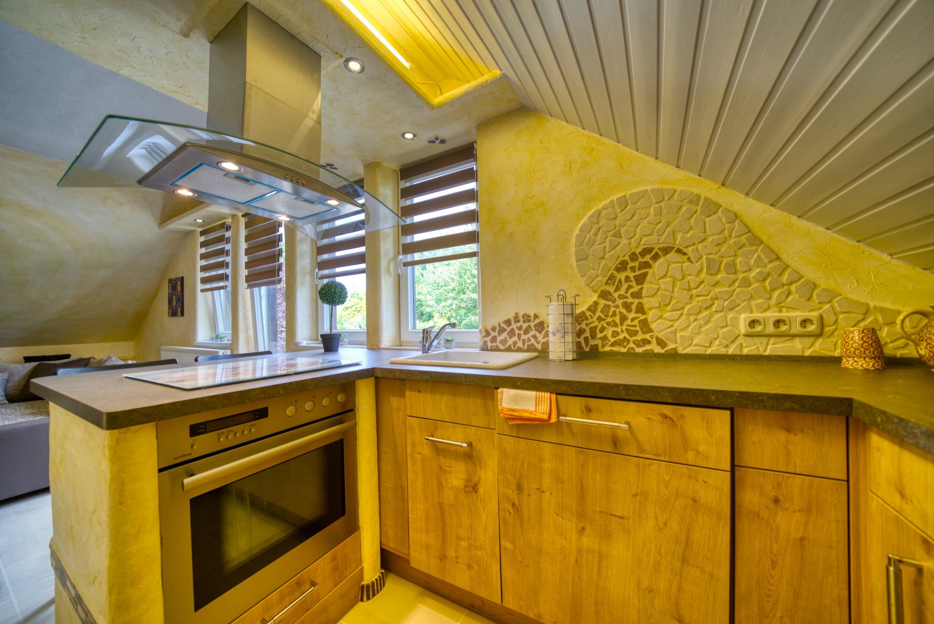 Die Kaffeemaschine mit Filter sorgt für den perfekten Start in den Tag und der Geschirrspüler erspart mühsames Abwaschen.