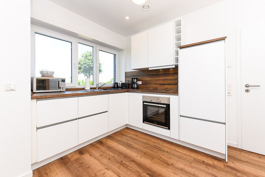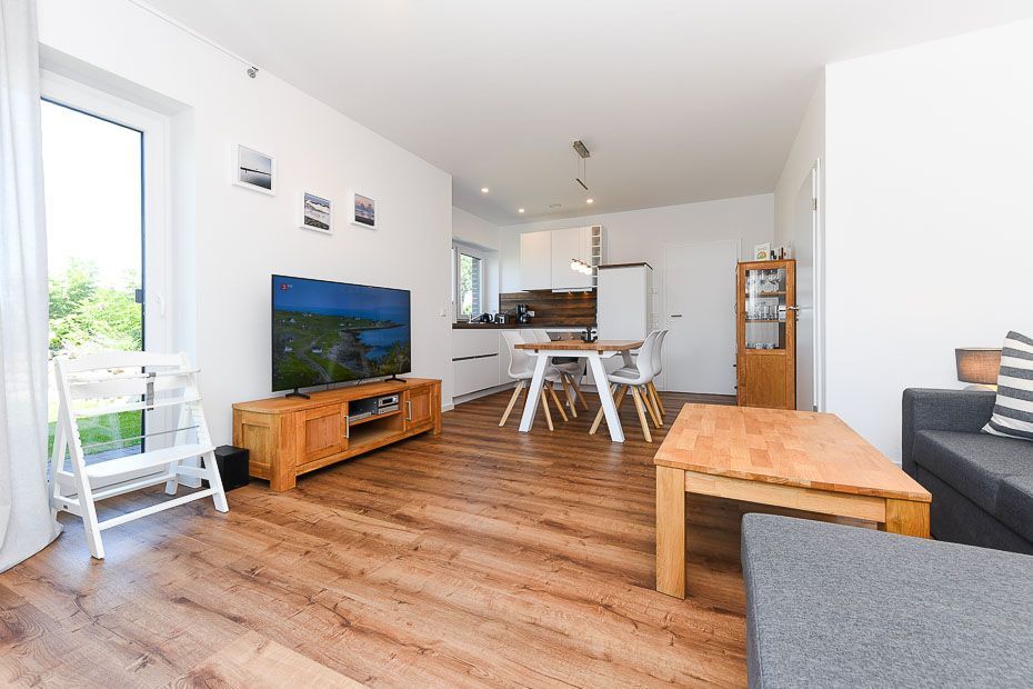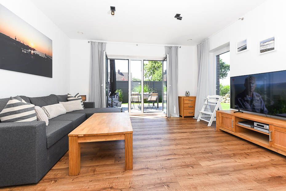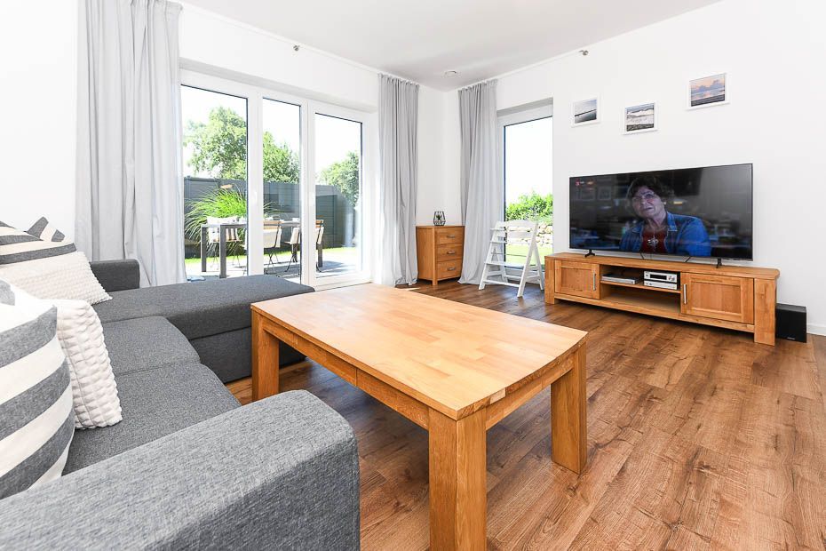 Das Ferienhaus ist modern-gemütlich, hell und freundlich gestaltet und eingerichtet sowie äußerst hochwertig mit viel Liebe zum Detail ausgestattet. Es verfügt zum Beispiel über eine Terrasse mit Strandkorb, über eine ausgestattete moderne Küche mit Geschirrspülmaschine und Mikrowelle, und es stehen Waschmaschine und Wäschetrockner zum Benutzen bereit.