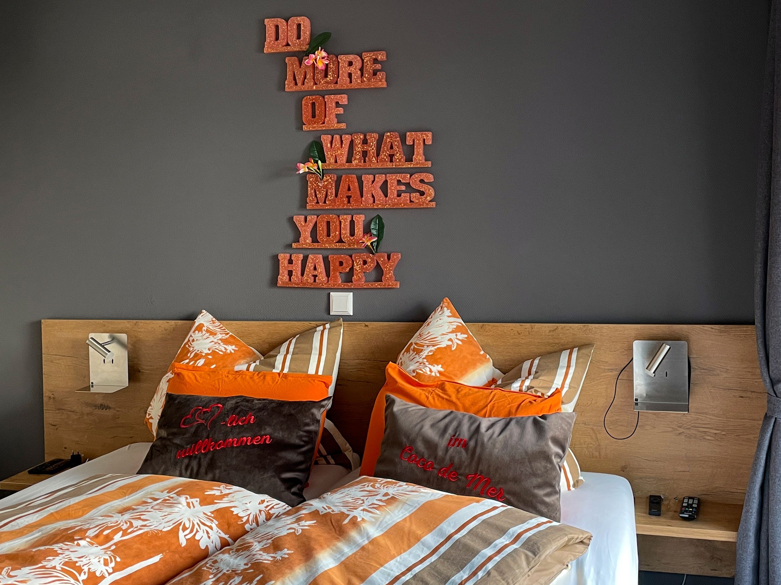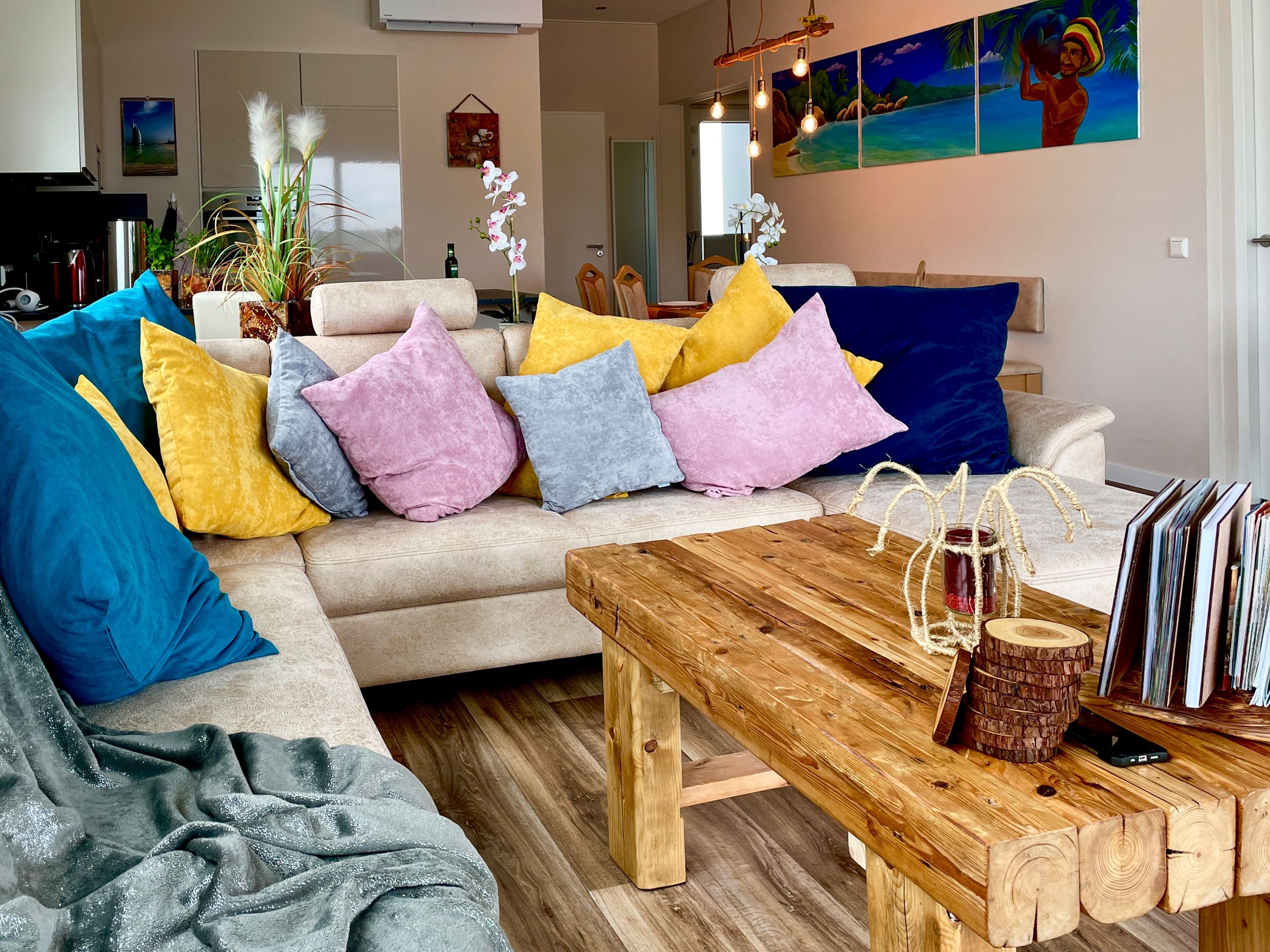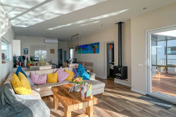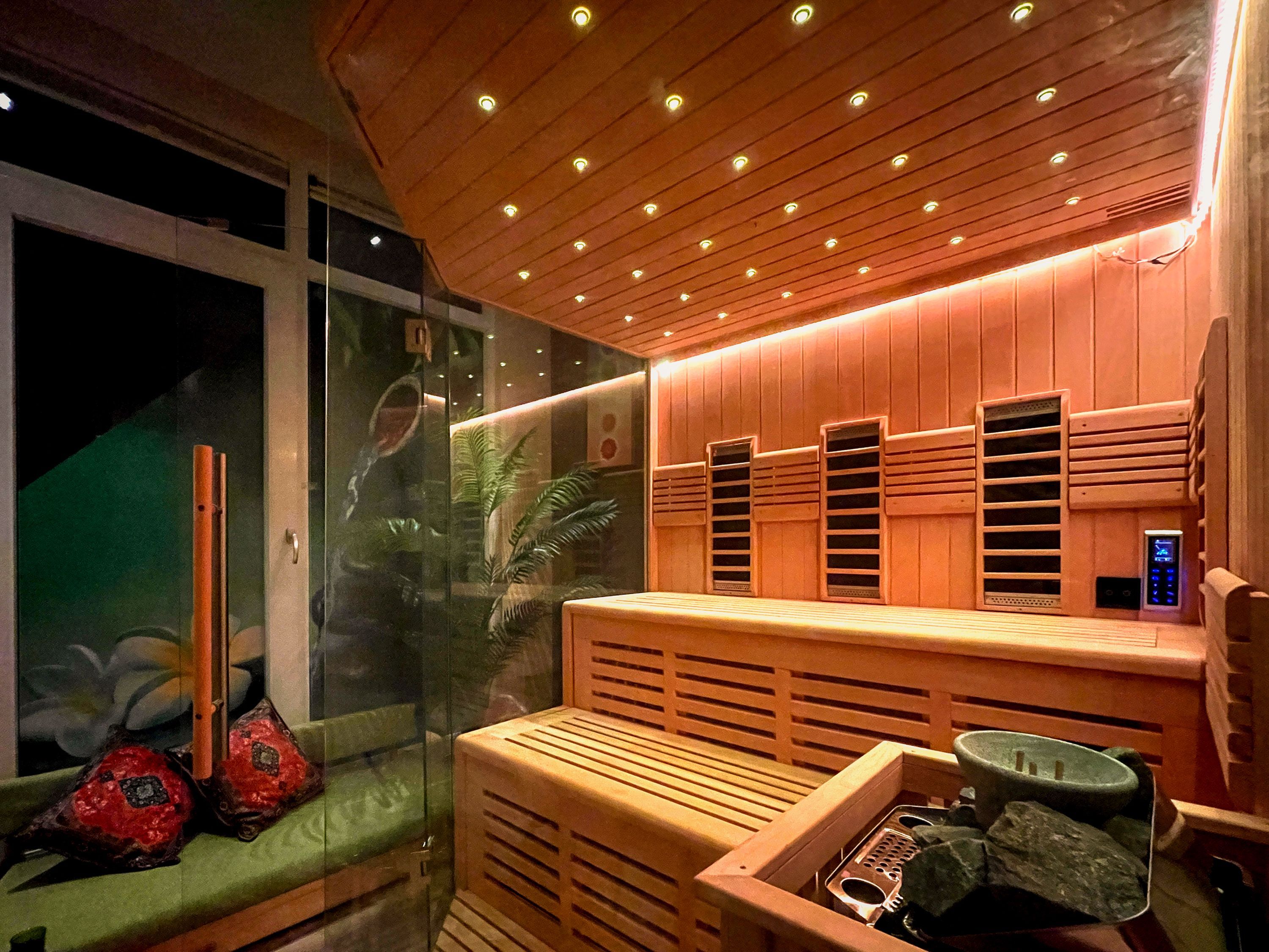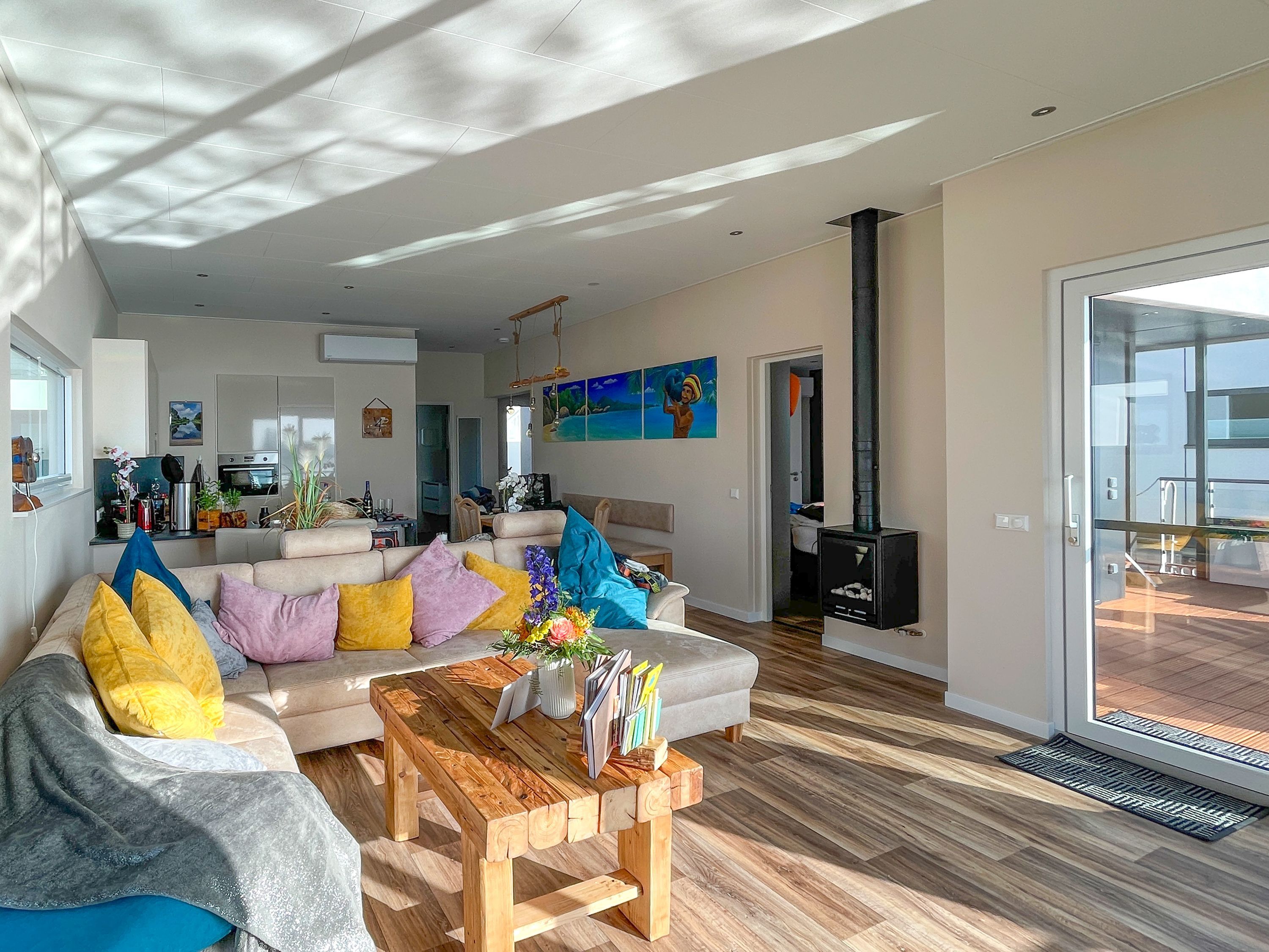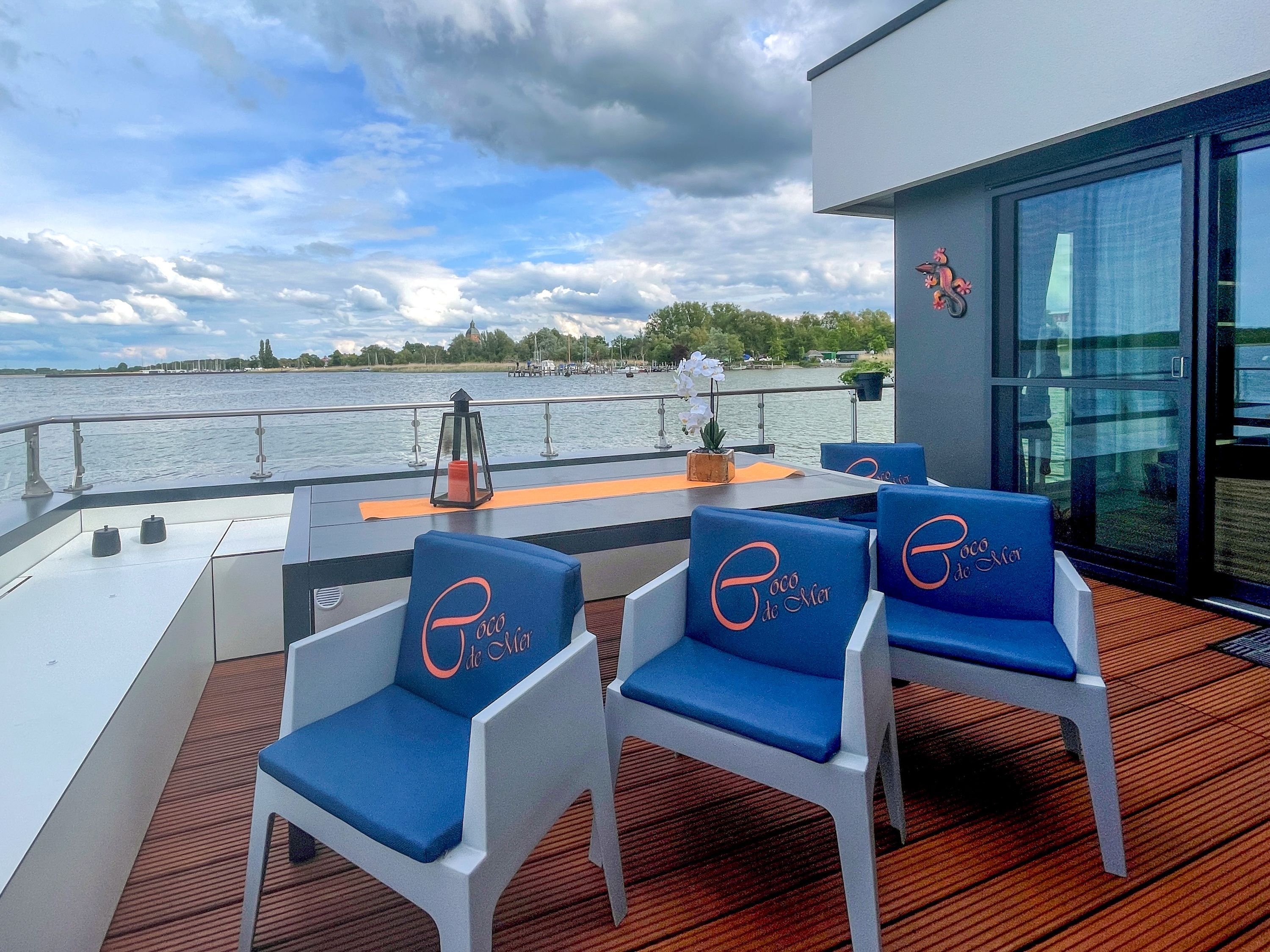 Das Floating Hideaway Coco de Mer ist ein einzigartiges Hausboot, das dir auf großzügigen 85 m² alles bietet, was du für einen entspannten Urlaub benötigst. Es eignet sich für bis zu 6 Personen und ist ideal für Paare, Familien oder auch Reisende mit Hund. Der Wohnbereich ist stilvoll und gemütlich eingerichtet, mit einem Gas-Kamin, einem Schlafsofa, einem 65 Zoll TV und einem Esstisch, an dem du mit deinen Lieben essen und plaudern kannst. Die offene Küche ist modern ausgestattet und lässt keine Wünsche offen: Hier findest du einen Backofen (mit Mikrowellenfunktion), einen Herd, eine Spülmaschine, eine Nespresso-Kapselmaschine, einen Toaster und einen Wasserkocher. Große Fensterfronten und eine Schiebetür zur Bugterrasse sorgen für eine helle und freundliche Atmosphäre und bieten einen direkten Zugang zum Außenbereich. Das Hausboot verfügt über zwei Schlafzimmer: Eines mit 2 komfortablen, zusammenstehenden Betten mit Massagefunktionen (jeweils 0,90x2,10m), die sich per Fernbedienung noch individuell anpassen lassen und das andere mit zwei Einzelbetten (0,80x2,0m). Hier kann man sie wahlweise zusammen oder auseinander stellen. Die Betten sorgen mit hochwertigen Matratzen für einen erholsamen Schlaf. Im Wohnzimmer befindet sich ein Schlafsofa für 2 weitere Personen (0,52x2,10m und 0,77x2,10m). Für dein Wohlbefinden stehen dir zwei Badezimmer zur Verfügung: Ein Badezimmer mit Dusche und WC sowie ein weiteres Badezimmer nur mit Dusche. Zusätzlich gibt es ein separates WC, sodass genug Platz für alle bleibt. Besonders hervorzuheben ist die private Sauna, die du nach Wunsch als finnische Sauna, Infrarot-Sauna oder Biosauna nutzen kannst. Die Sauna ist mit einem Bluetooth-Lautsprecher, wechselbarem Licht und einem Sternenhimmel ausgestattet, der für die perfekte Wohlfühlatmosphäre sorgt. Im Außenbereich kannst du auf der Bugterrasse entspannen oder den Grill anheizen und den Tag bei einem gemeinsamen BBQ ausklingen lassen. Eine weitere Terrasse auf dem Dach ist mit Sonnenliegen ausgestattet und bietet einen atemberaubenden Blick auf den Hafen und das Wasser.