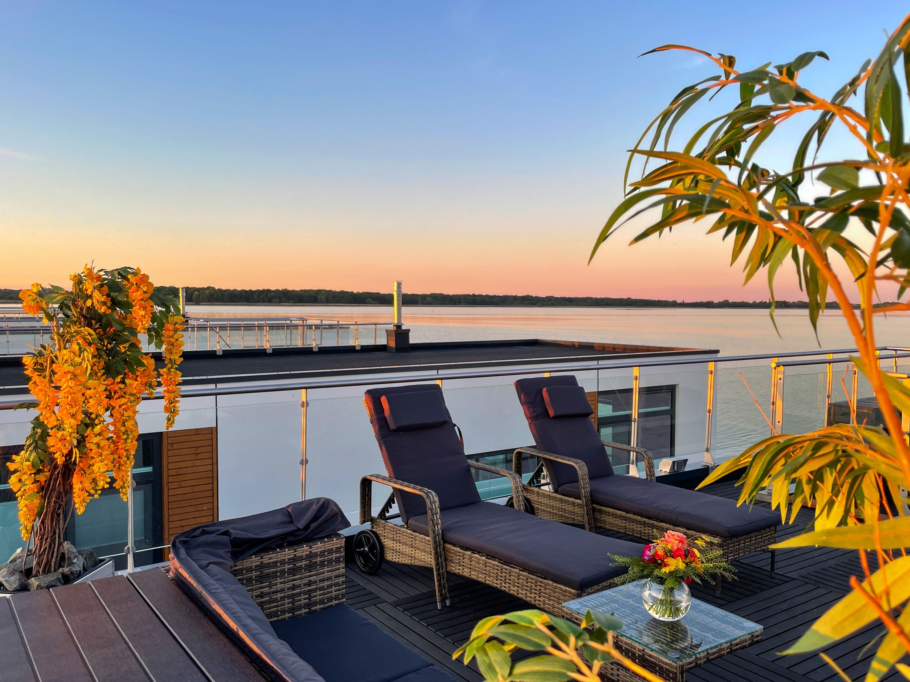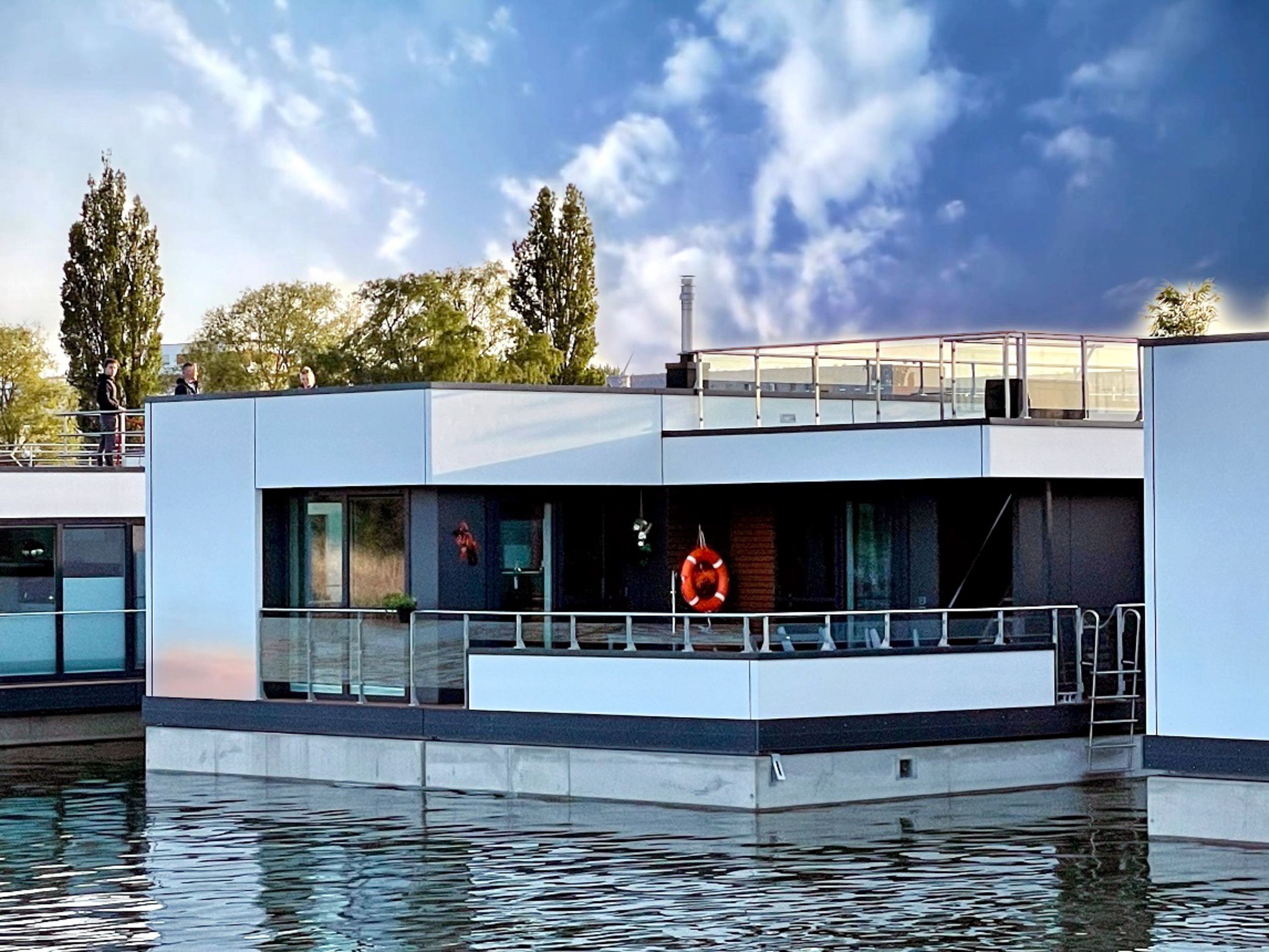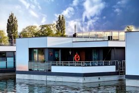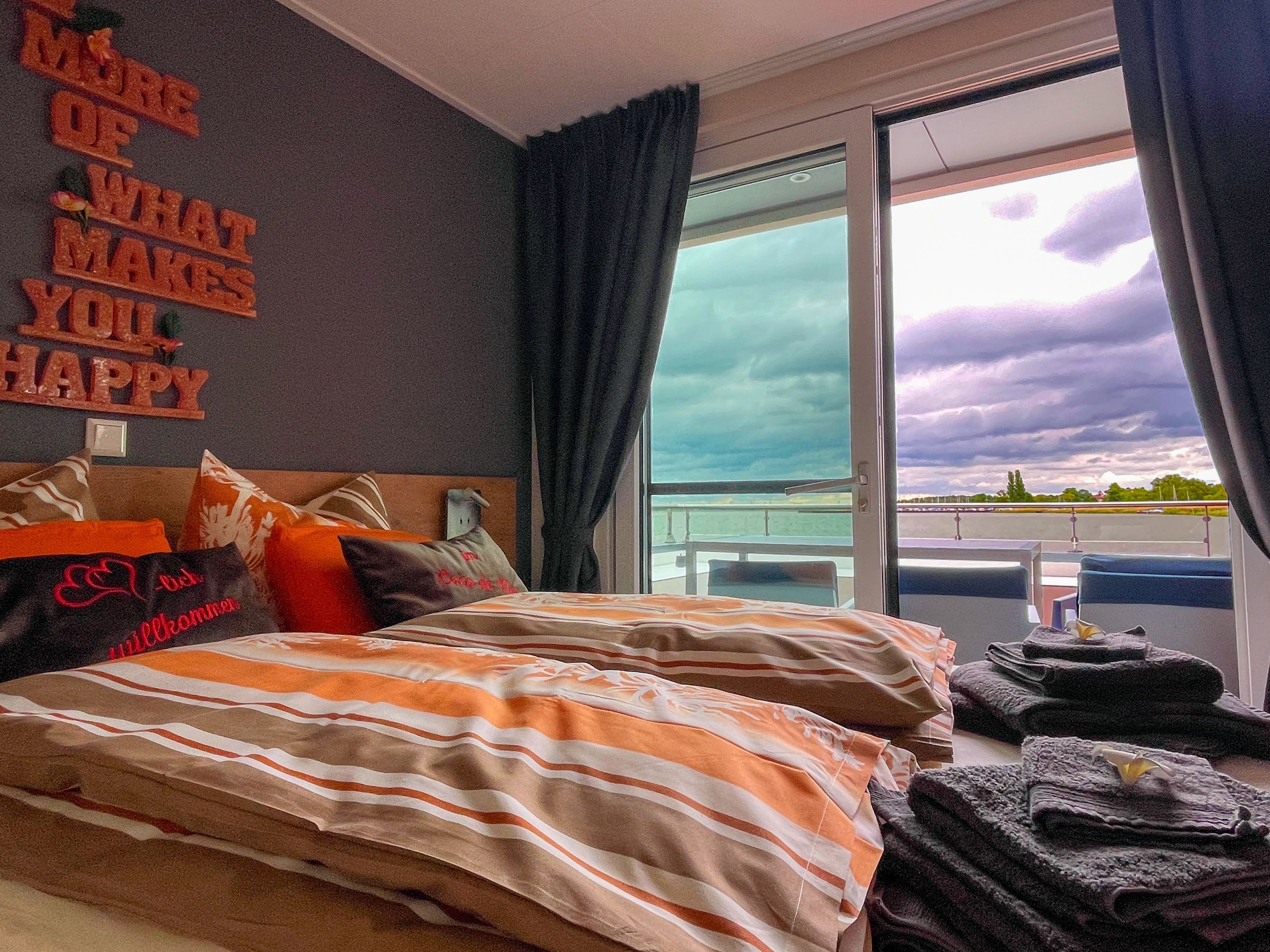 Floating Hideaway Coco de Mer ist dein schwimmendes Zuhause auf Zeit, gelegen nahe dem malerischen Hafen von Ribnitz-Damgarten. Mit 85 m² Wohnfläche bietet das luxuriöse Hausboot Platz für bis zu 6 Personen und kombiniert modernes Design mit einer einzigartigen Lage direkt auf dem Wasser. Zwei gemütliche Schlafzimmer laden zum Träumen ein und die zwei Badezimmer sorgen dafür, dass es auch bei voller Belegung entspannt bleibt. Als besonderes Extra erwartet dich eine private Sauna, in der du die Seele baumeln lassen kannst - ein Luxus, der auf dem Wasser seinesgleichen sucht. Das Highlight des Coco de Mer sind die großzügigen Außenbereiche: Auf der Bugterrasse kannst du die ersten Sonnenstrahlen genießen und die Dachterrasse lädt zu entspannten Abenden mit herrlichem Blick über den Hafen ein. Für pure Entspannung kannst du eine Wellnessmassage zubuchen, die Masseurin kommt direkt zu dir auf das Hausboot, damit du dich in privater Atmosphäre verwöhnen lassen kannst. Wer es aktiver mag, kann die Umgebung mit SUP-Boards erkunden, die gegen Gebühr zur Verfügung stehen. Auch dein Hund ist hier herzlich willkommen und darf gegen eine Gebühr mit an Bord kommen.
