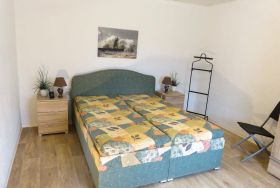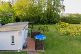 Der gemütliche Bungalow Alms in Ribnitz-Damgarten bietet auf 40 m² Platz für 4 Personen. Ruhig gelegen und umgeben von viel Grün, verspricht er Erholung pur. Im Wohnzimmer findest du ein Schlafsofa und einen Esstisch, die zu gemeinsamen Mahlzeiten oder entspannten Abenden einladen. Das separate Schlafzimmer mit einem bequemen Doppelbett sorgt für erholsame Nächte. Eine praktische Pantry-Küche bietet dir alles, was du zum Zubereiten von Snacks oder kleinen Mahlzeiten benötigst und das Bad mit Dusche macht den Bungalow komplett. Draußen bietet dir eine kleine Terrasse Platz zum Entspannen und der Garten kann ebenfalls mitgenutzt werden ideal für ein Frühstück im Freien oder einfach, um die frische Luft zu genießen. WLAN und ein Parkplatz stehen dir ebenfalls zur Verfügung.