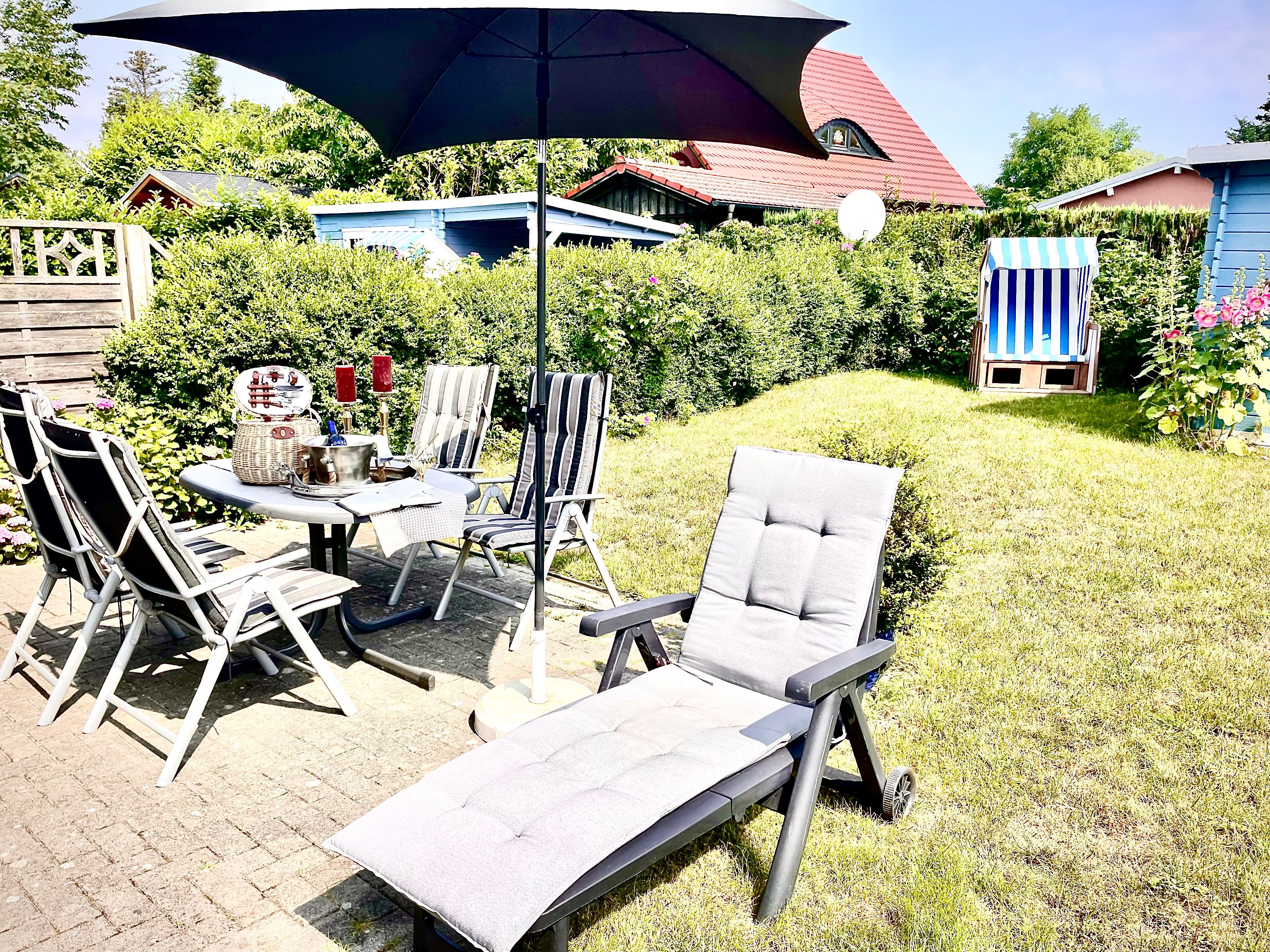zwei Schlafzimmer Wohn Essz Küche Bad ( Dusche Badewanne WC) Terrasse mit Strandkorb und Terrassenmöbel das Grundsück ist eingezäunt