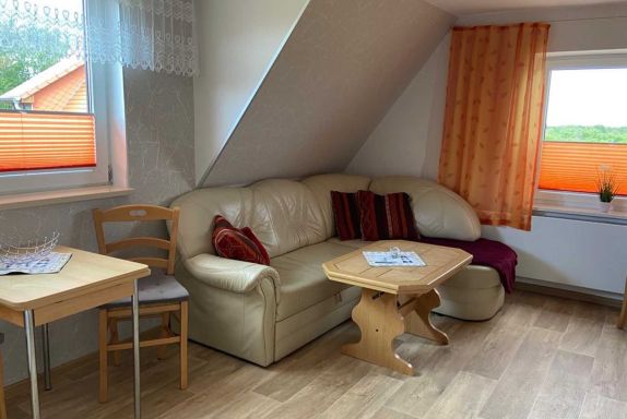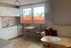Die gemütlich eingerichtete Ferienwohnung zur Nordseite mit einem wunderschönen Blick auf den Leuchtturm, ist ideal für 2 Personen, die sich nach Ruhe & Entspannung sehnen. Sie hat ein separates Schlafzimmer mit Doppelbett, Dusche/WC & Haartrockner, ein separates gemütliches Wohnzimmer inkl. einer Küchenzeile. Die Küche ist ausgestattet mit 2 Kochfeldern, Kühlschrank und Mikrowelle. Die Esszone befindet sich offen zur Sitzgruppe im Wohnraum und auch zur Küche. Die Unterkunft verfügt über einen WLAN-Anschluss. Bettwäsche und Handtücher sind inklusiv.