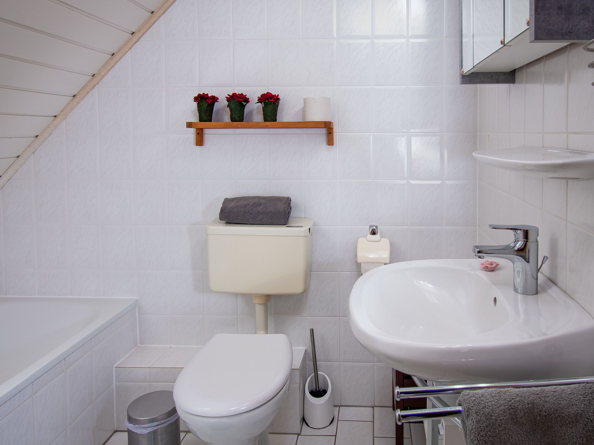 Reihenhaus. Am Ortsrand, 1.5 km vom Meer, 1.5 km vom Strand. Im Hause: Einstellraum für Fahrräder, Zentralheizung. Parkplatz beim Haus. Supermarkt, Bäckerei, Café 800 m, Bushaltestelle 550 m, Bahnstation 2.1 km, Fähre Norddeich 2.1 km, Sandstrand 1.5 km, Freibad 12 km, Hallenbad 750 m. Golfplatz (18 Loch) 7.6 km, Minigolf 750 m.