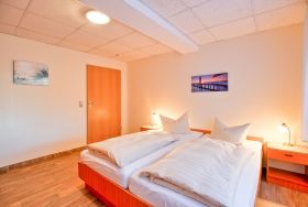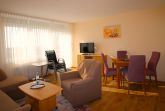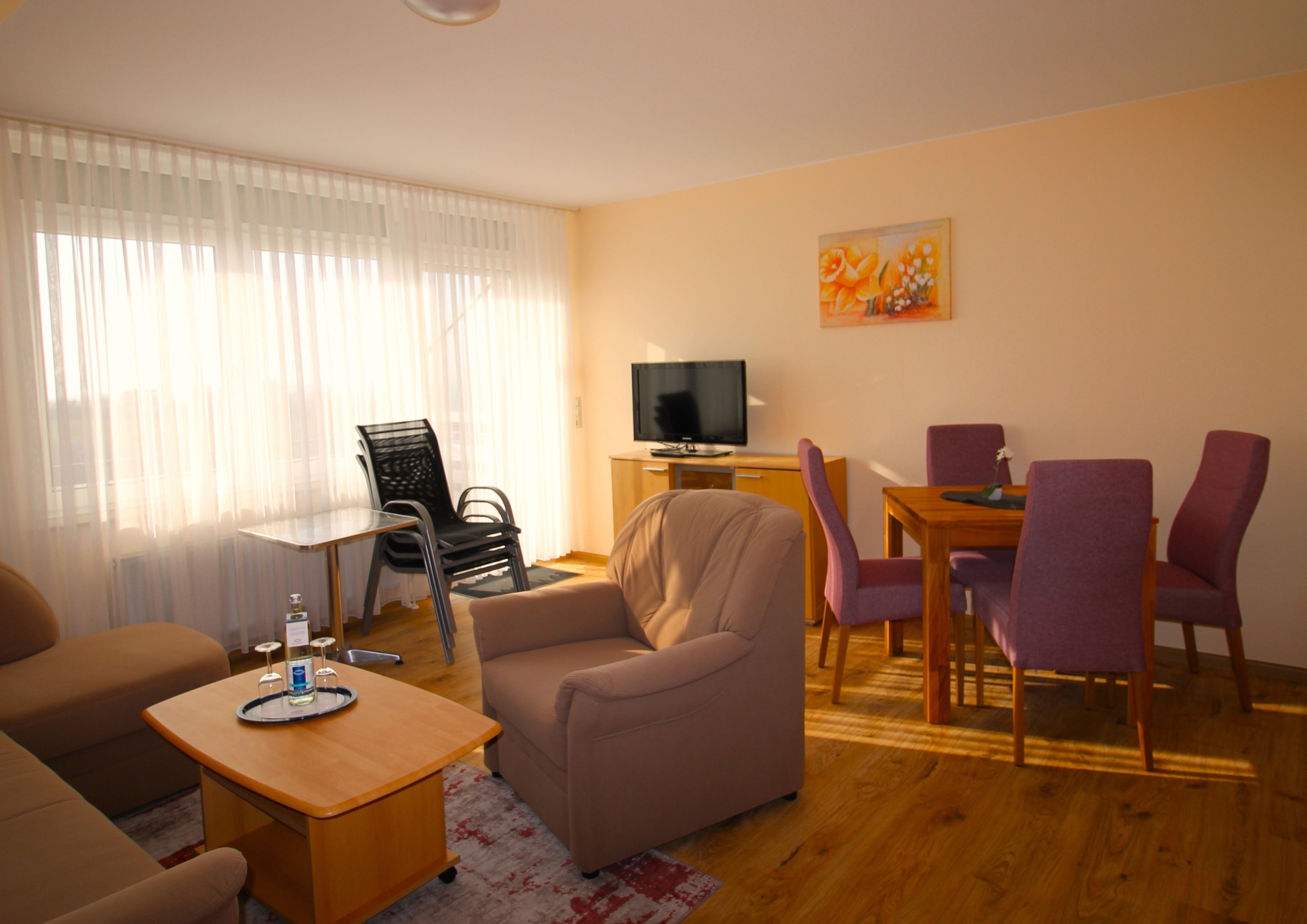 Die Ferienwohnung Typ Seepferdchen III (1te Etage, ohne Seeblick) verfügt über einen Balkon. Die Wohnung teilt sich in ein Wohnzimmer mit gemütlicher Couch, TV, einer offenen Küche, sowie einem Schlafzimmer mit Doppelbett und einem Bad mit Dusche/WC auf.