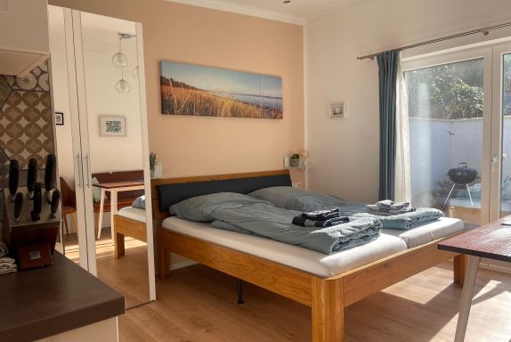 Willkommen in unserer liebevoll gestalteten Ferienwohnung, ideal für Paare oder Alleinreisende. Die modern eingerichtete Unterkunft bietet eine voll ausgestattete Küche, ein gemütliches Wohn-/Schlafzimmer und ein stilvolles Bad. Ein Highlight ist die sonnige Terrasse, die zu Frühstück im Freien oder entspannten Stunden einlädt. Der gepflegte Garten rundet das Angebot mit Ruhe und Privatsphäre perfekt ab.