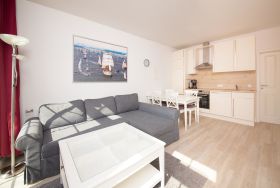 Dieses Appartement besteht aus einem Flur, einem Wohnbereich mit Küchenzeile, sep. Schlafzimmer und einem Badezimmer.