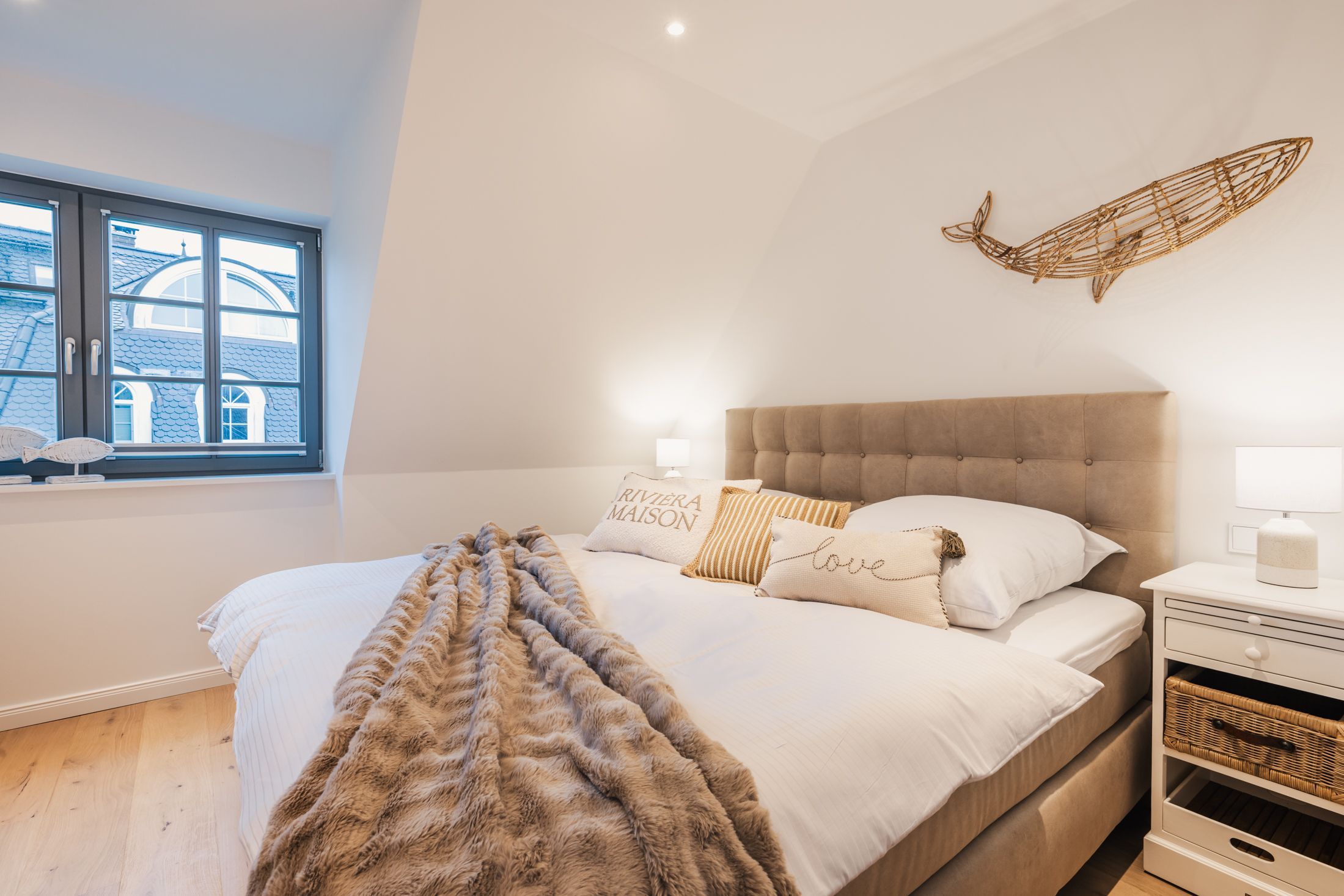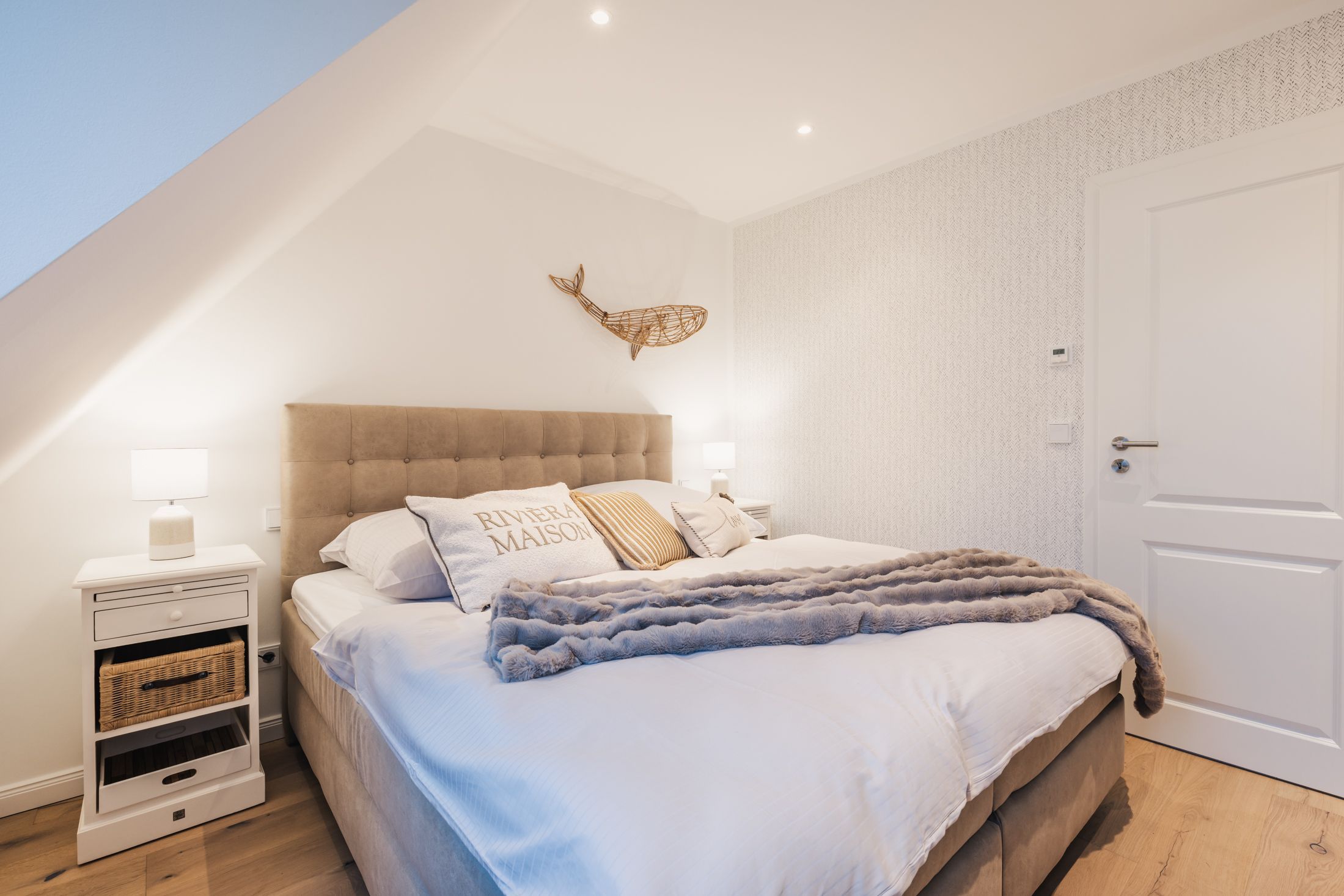 Die drei Schlafzimmer sind mit zwei bequemen Boxspringbetten und zwei Einzelbetten ausgestattet. Verdunkelnde Plissees sorgen für erholsame Nächte, und alle Schlafzimmer bieten ausreichend Stauraum für Ihr Gepäck.