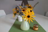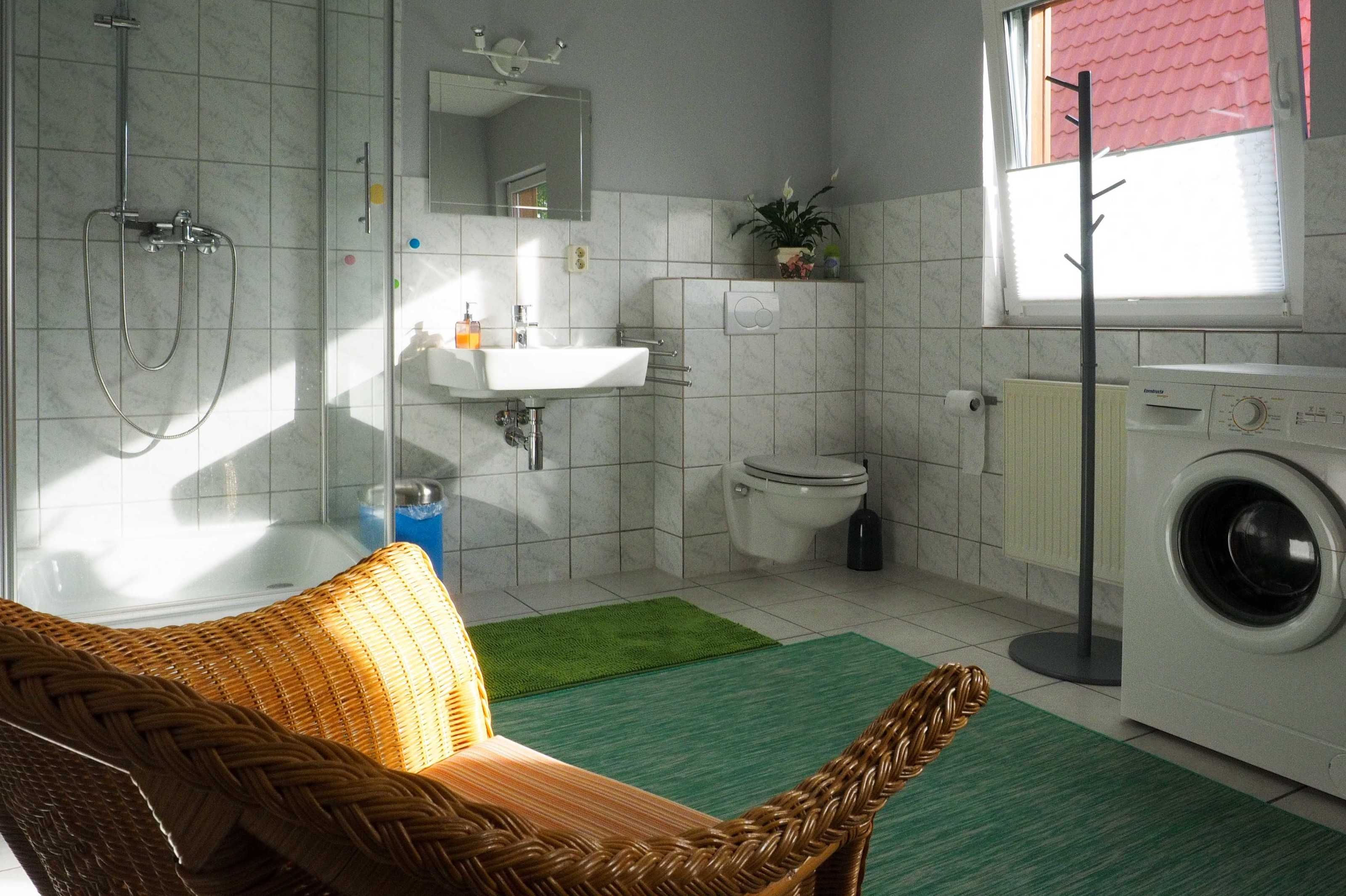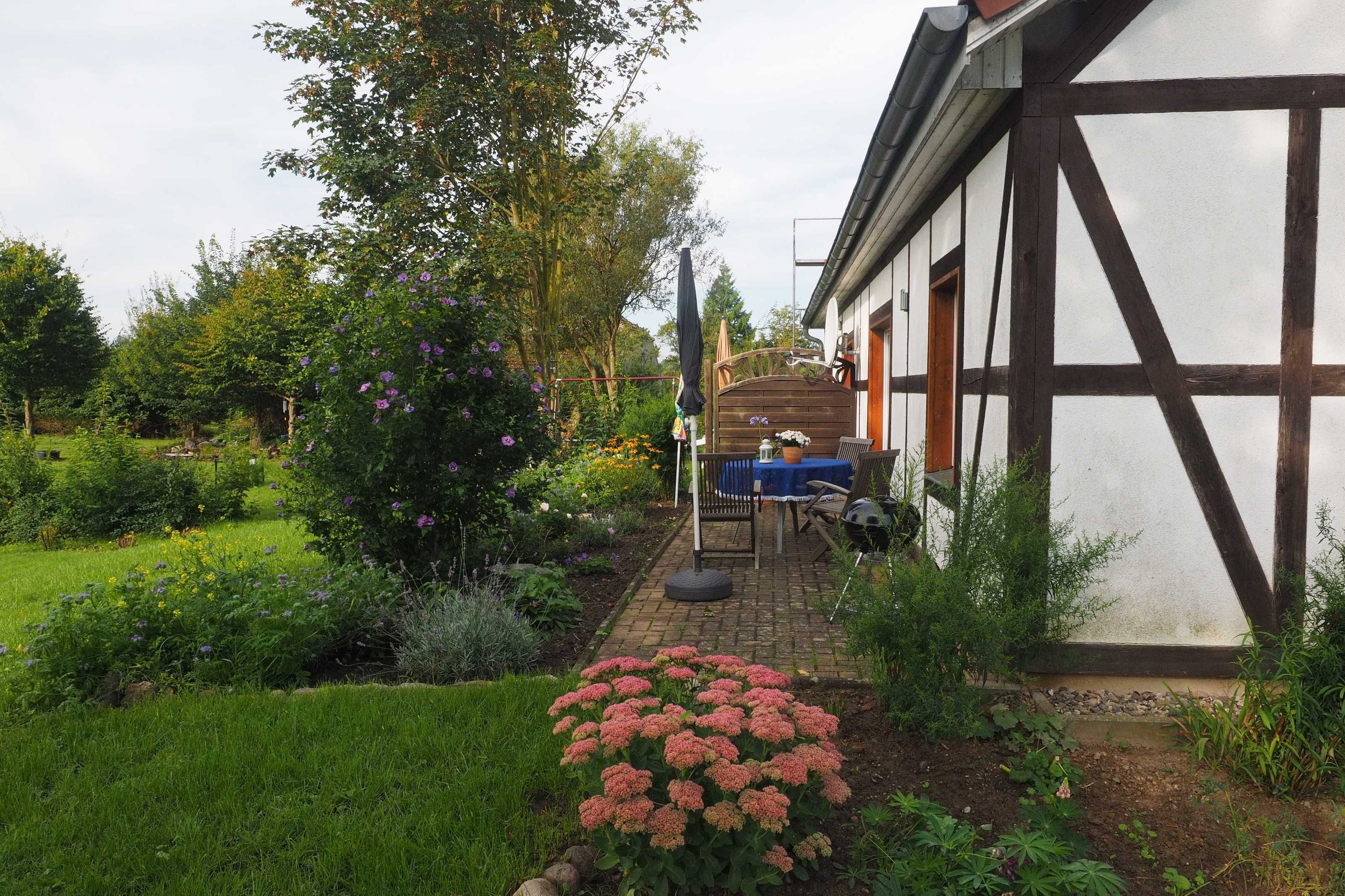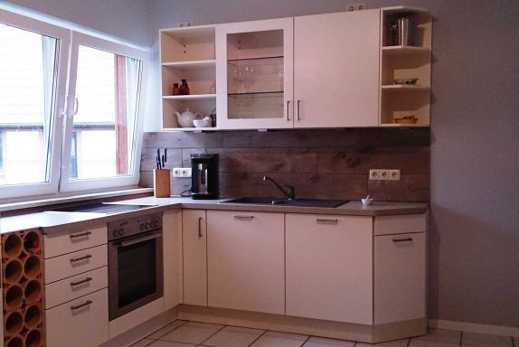 Modern, freundlich und gemütlich eingerichtete Ferienwohnung für 2-4 Personen mit großer komplett ausgestatteter Wohnküche (Geschirrspüler, Backofen, Cerankochfeld, Kühlschrank mit Gefrierfach, Kaffeemaschine), Schlafzimmer mit Doppelbett (1,80 breit), Wohnzimmer mit Aufbettungsmöglichkeit für 1-2 Personen auf Schlafsofa (Liegefläche 1,40 x 2,00),Terrasse und Gartennutzung, ebenerdig, Nichtraucherwohnung