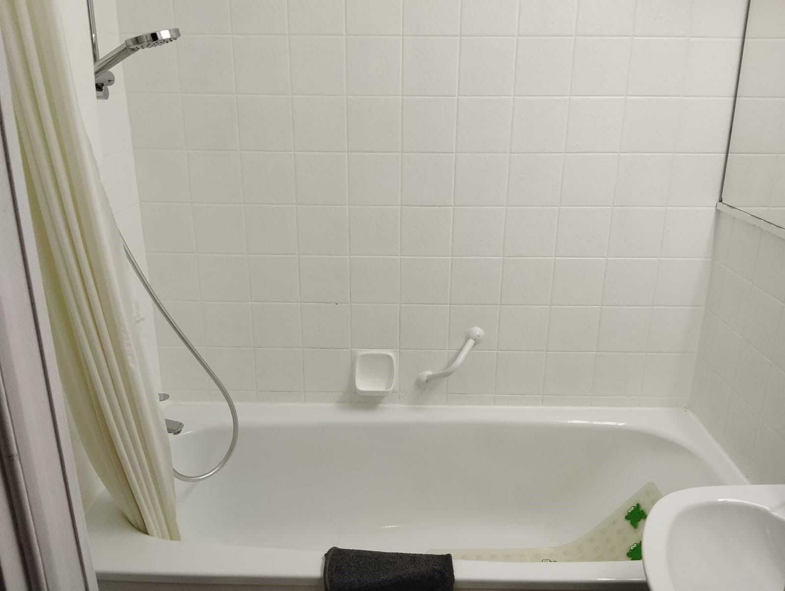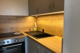 Das Appartement verfügt über einen Wohnbereich mit Sitzecke, ein Schlafzimmer mit Doppelbett, einer kleine Küchenzeile, ein Bad (Wanne mit Dusche) sowie über einen Eckbalkon mit Blick zur See- und Landseite.