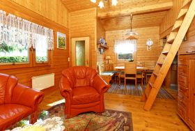 Dieses liebevoll eingerichtete 2-Zimmer-Haus (ca. 40 m²) auf zwei Etagen bietet gemütlichen Wohnkomfort für bis zu 2 Erwachsene und 1 Kind. Im Erdgeschoss befindet sich ein heimeliges Wohn-/Esszimmer mit viel Holz, Flachbild-Kabel-TV und Radio. Die gut ausgestattete Kochnische verfügt über Backofen, Geschirrspüler, Glaskeramikherd (4 Platten), Mikrowelle, Toaster, Wasserkocher und Kaffeemaschine – alles, was man für einen sorgenfreien Aufenthalt braucht.