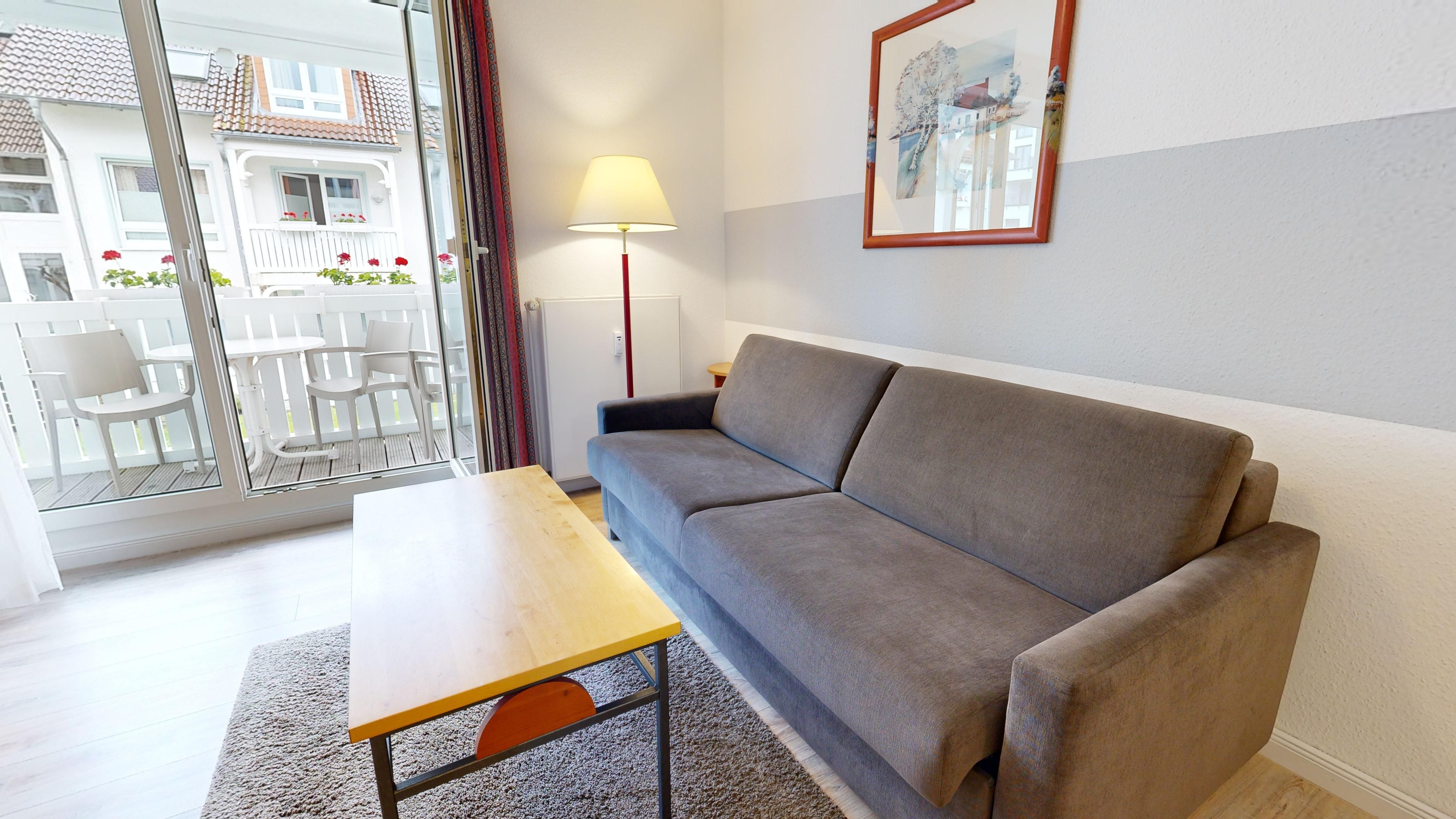 Ferienwohnung Binzer Sterne 52 für bis zu 4 Personen im 1. OG (2 Zimmer / 40 m²) des Appartementhauses Binzer Sterne, 1 Schlafzimmer, Parkplatz (gegen Gebühr) und freies WLAN.