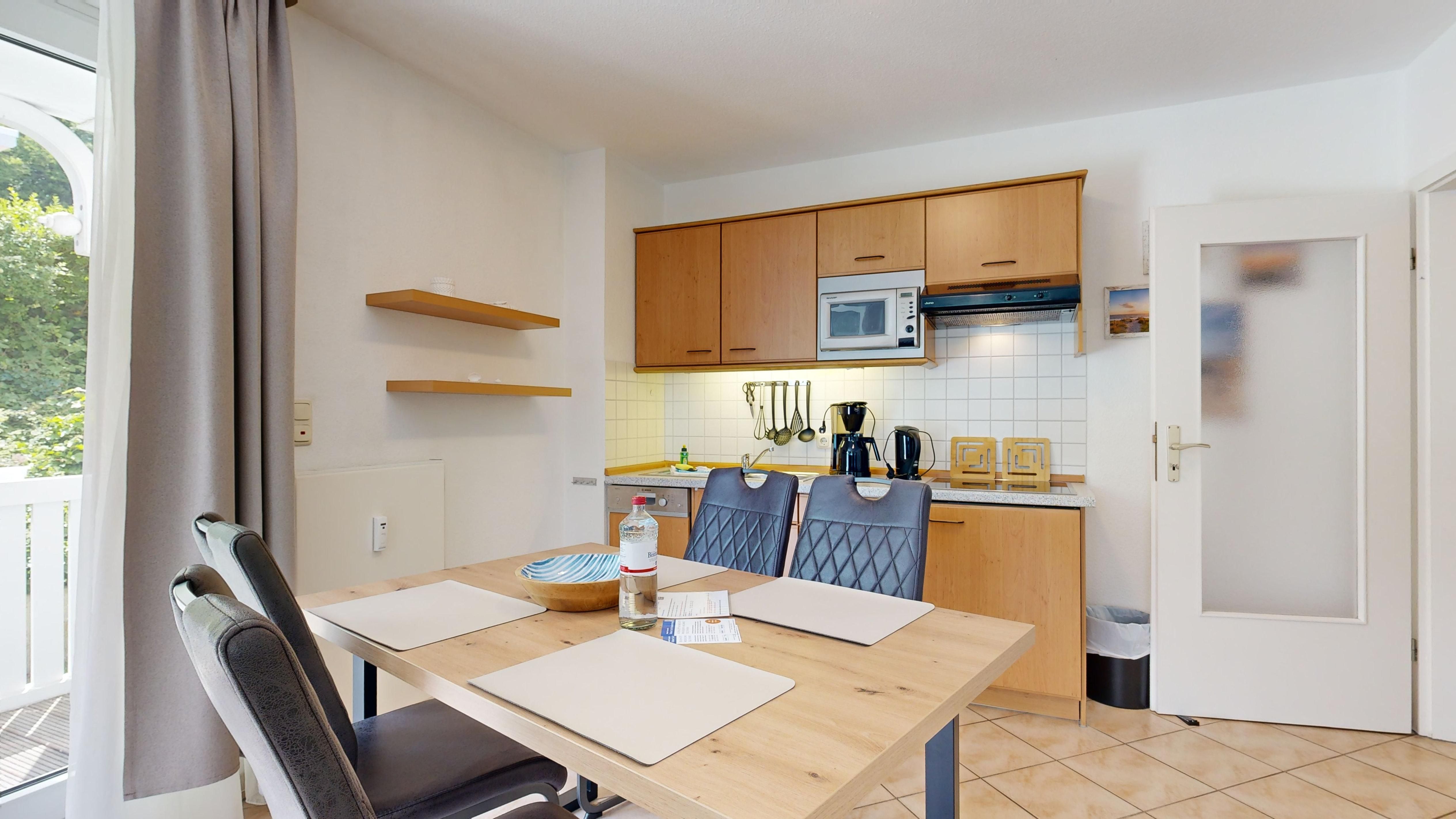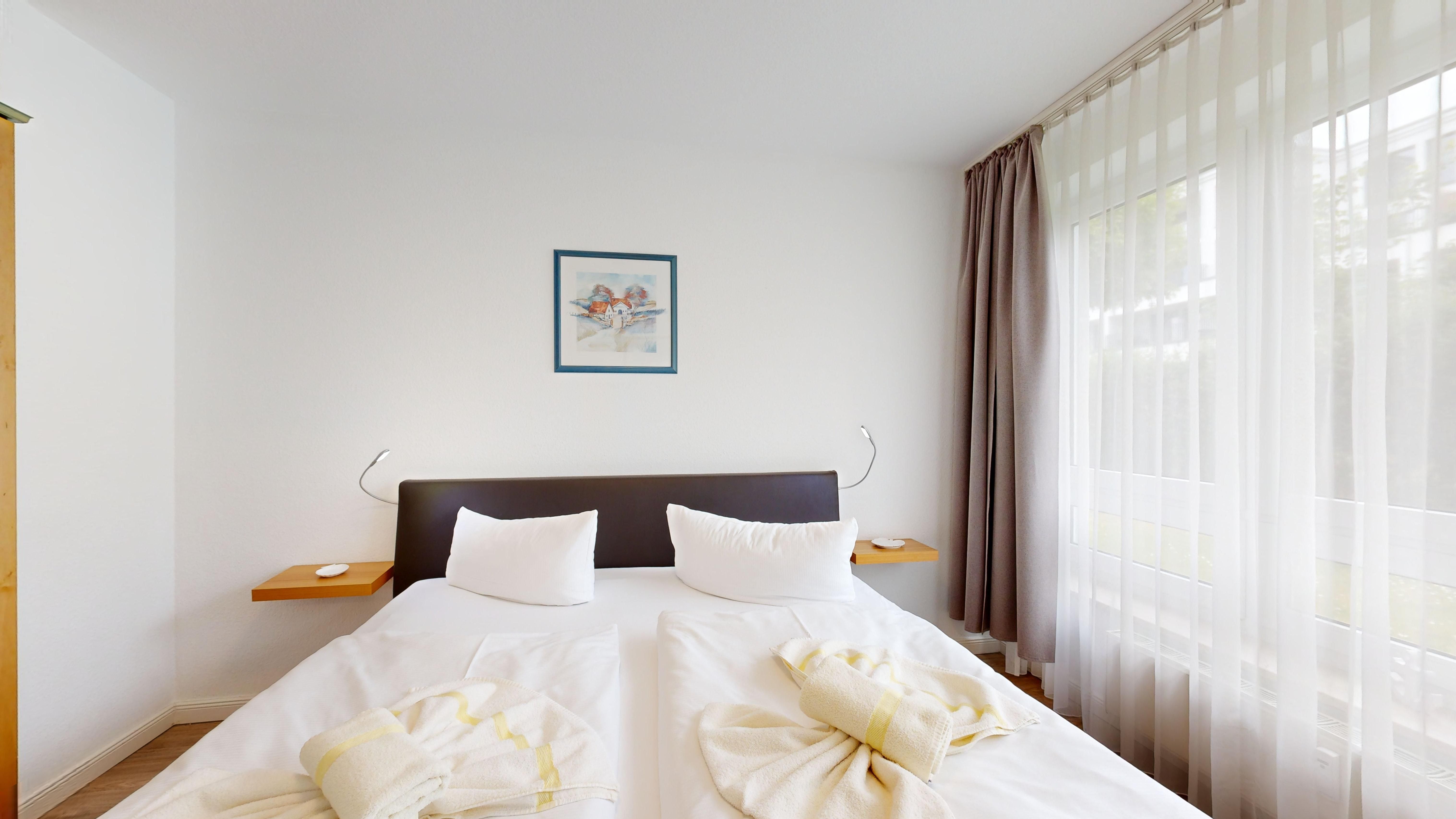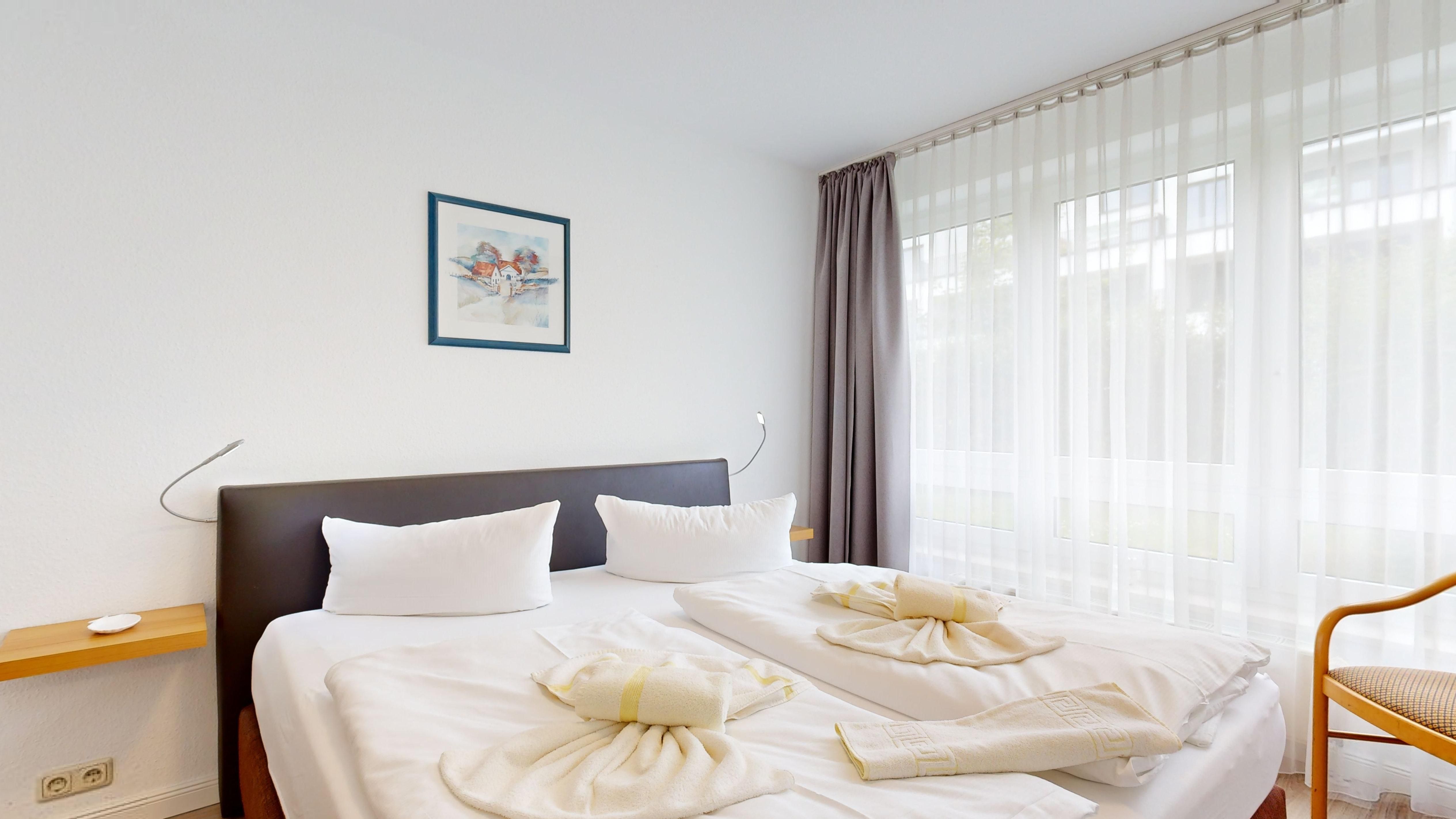 Ferienwohnung Binzer Sterne 6 für bis zu 4 Personen im Hochparterre (2 Zimmer / 45 m²) des Appartementhauses Binzer Sterne, 1 Schlafzimmer, Parkplatz (gegen Gebühr) und freies WLAN.