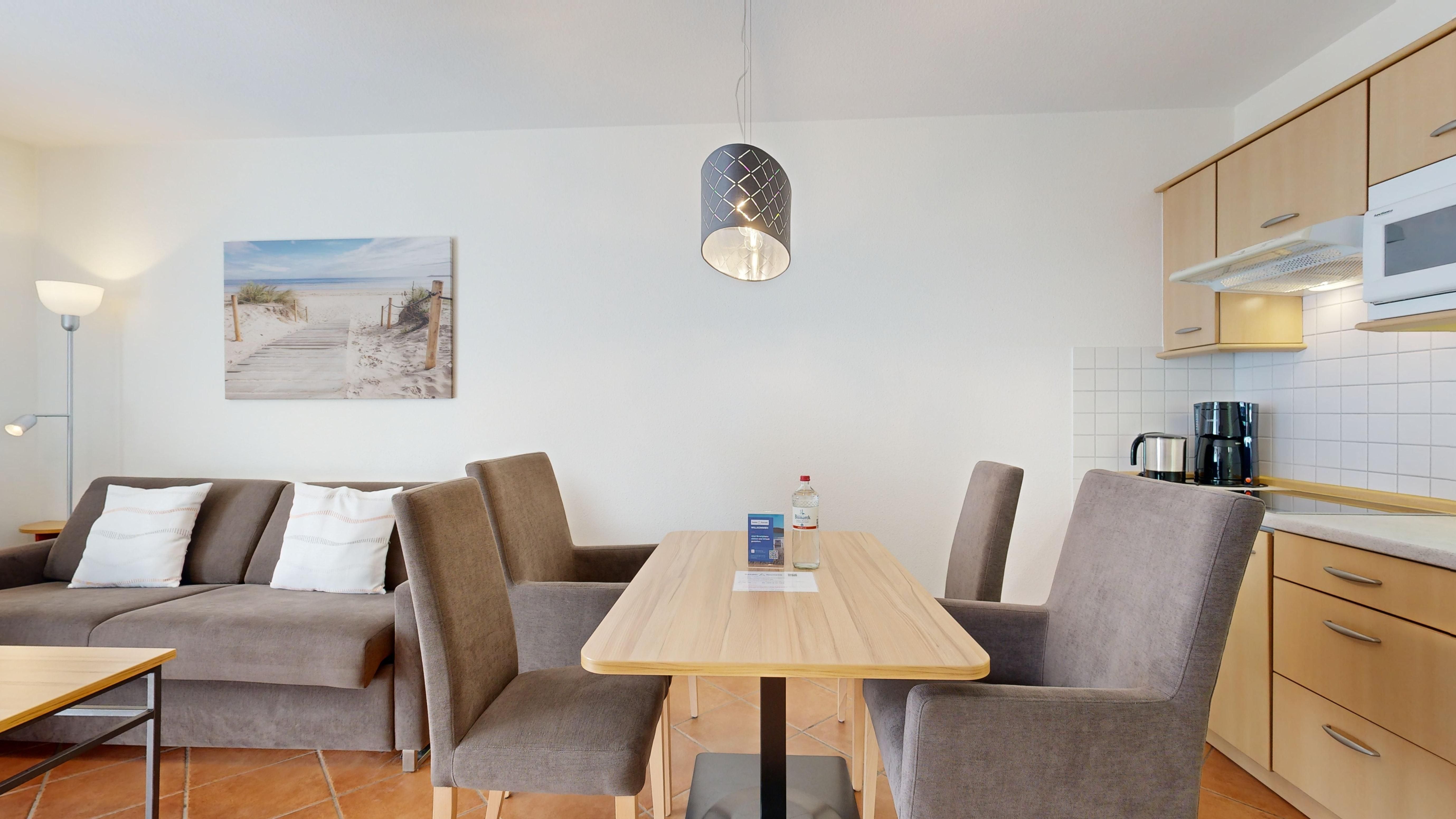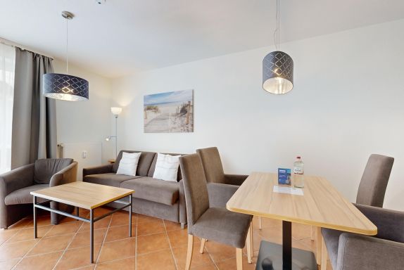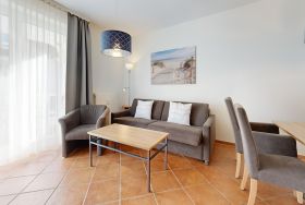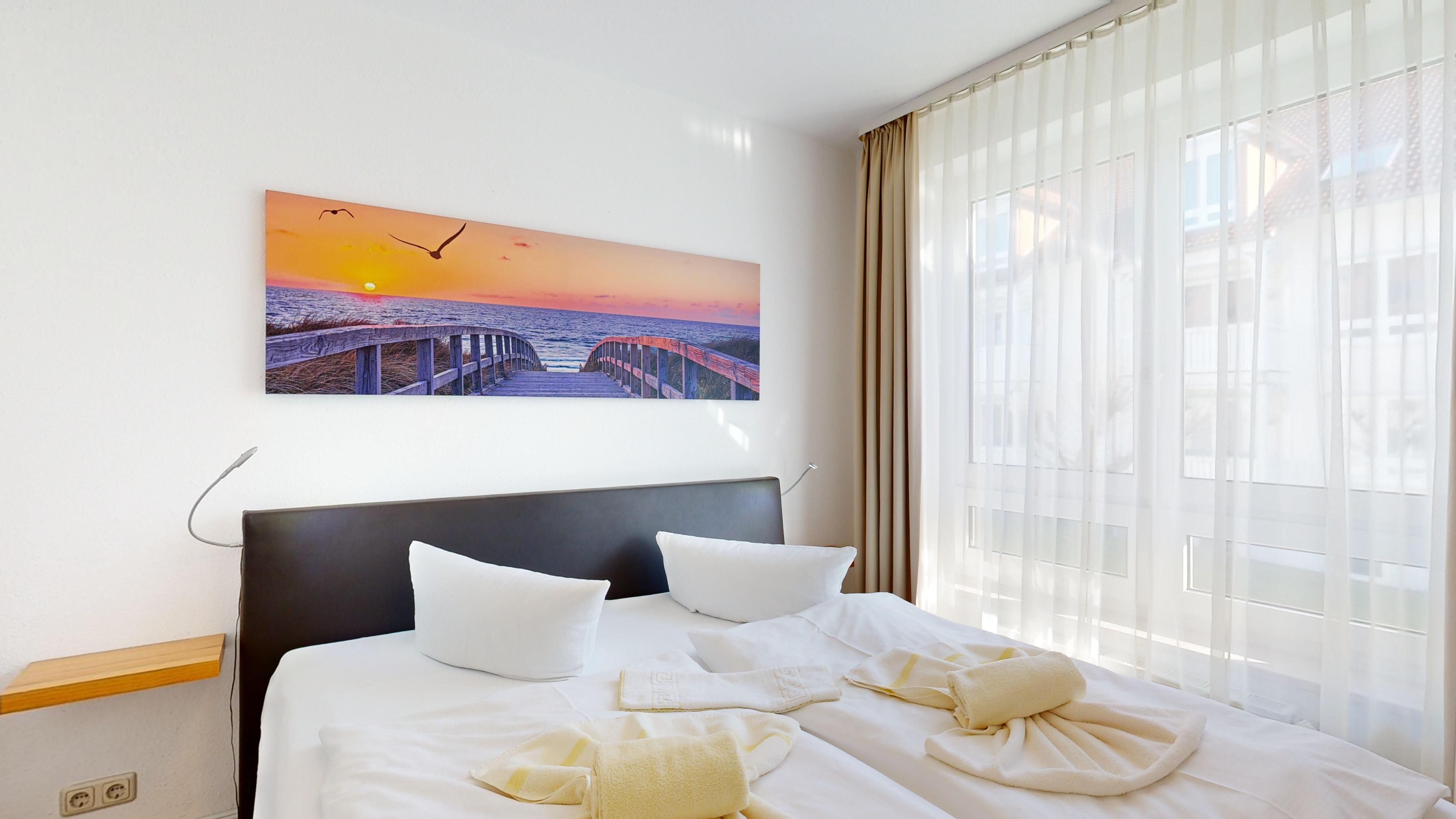 Ferienwohnung Binzer Sterne 32 für bis zu 4 Personen im 1. OG (2 Zimmer / 40 m²) des Appartementhauses Binzer Sterne, 1 Schlafzimmer, Parkplatz (gegen Gebühr) und freies WLAN.