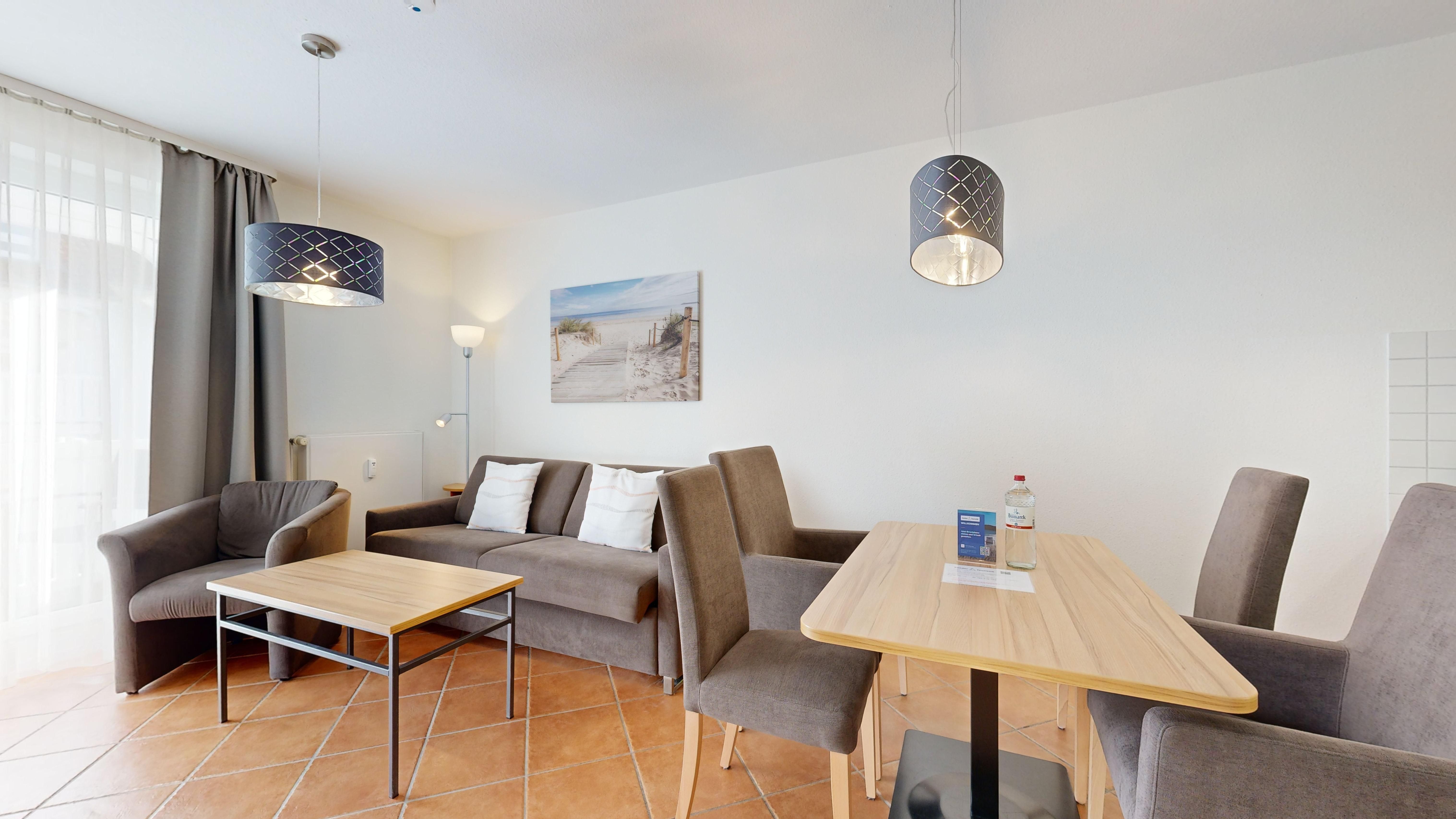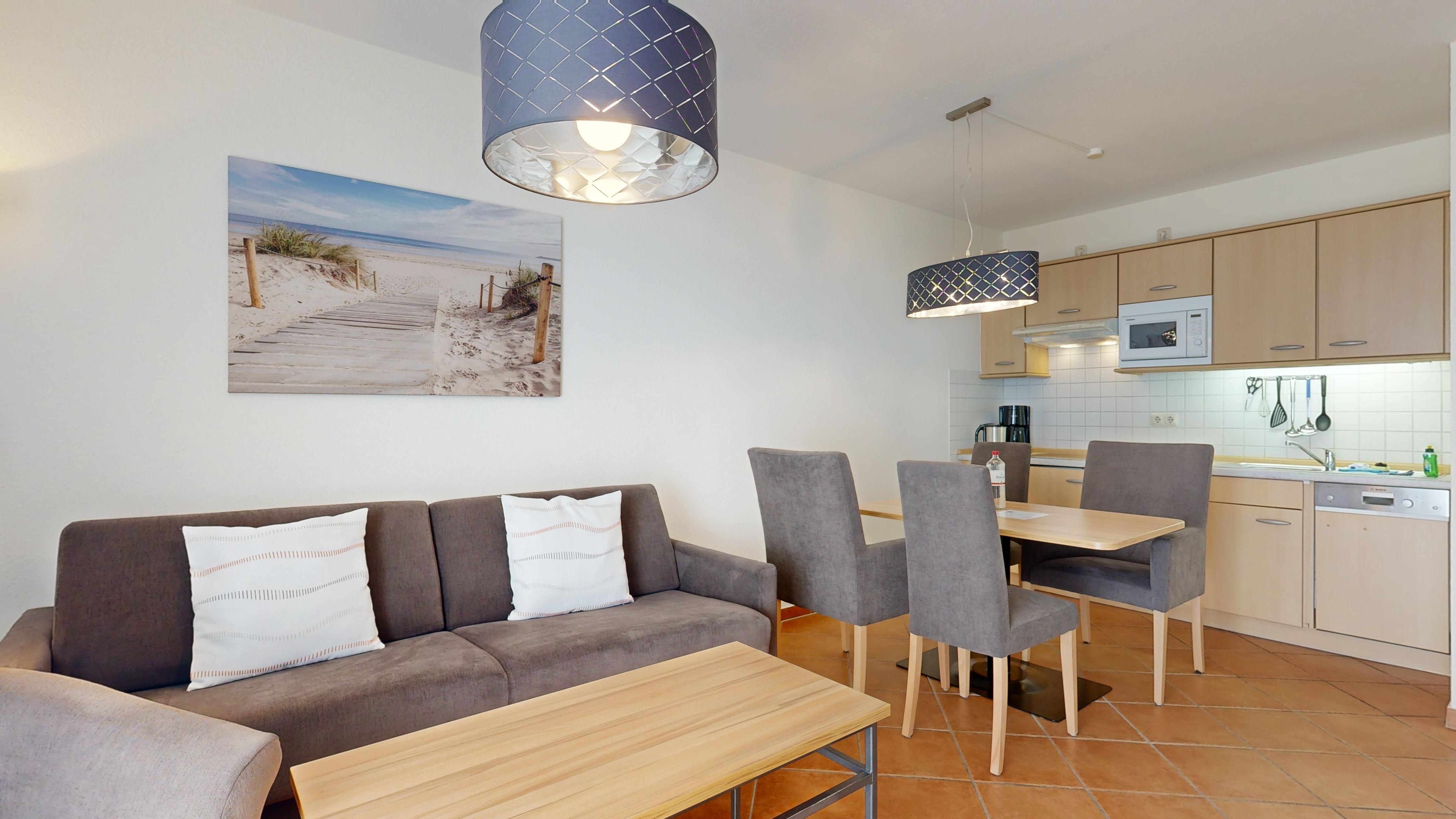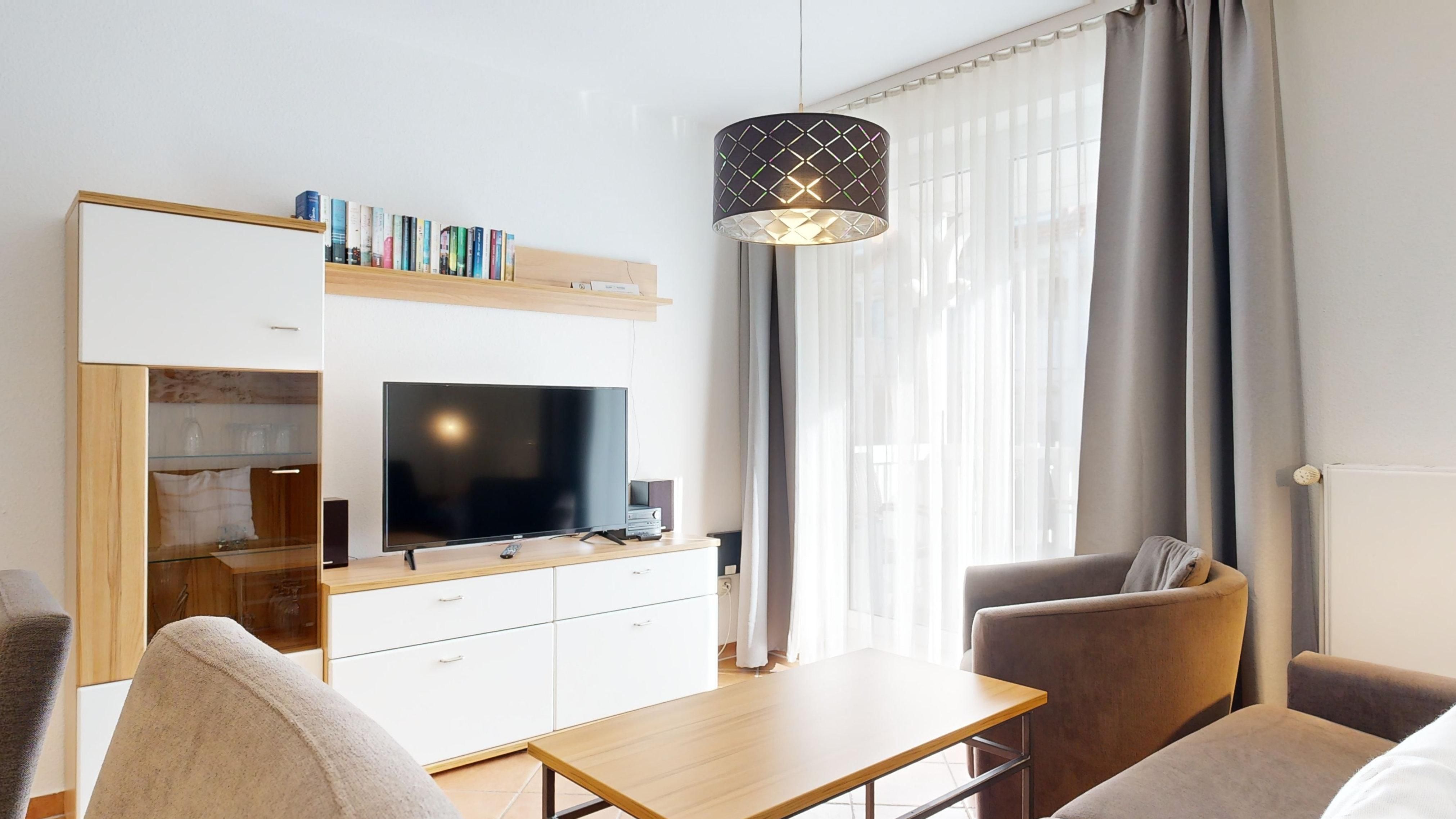 Ferienwohnung Binzer Sterne 32 für bis zu 4 Personen im 1. OG (2 Zimmer / 40 m²) des Appartementhauses Binzer Sterne, 1 Schlafzimmer, Parkplatz (gegen Gebühr) und freies WLAN.