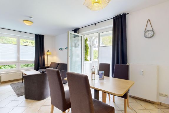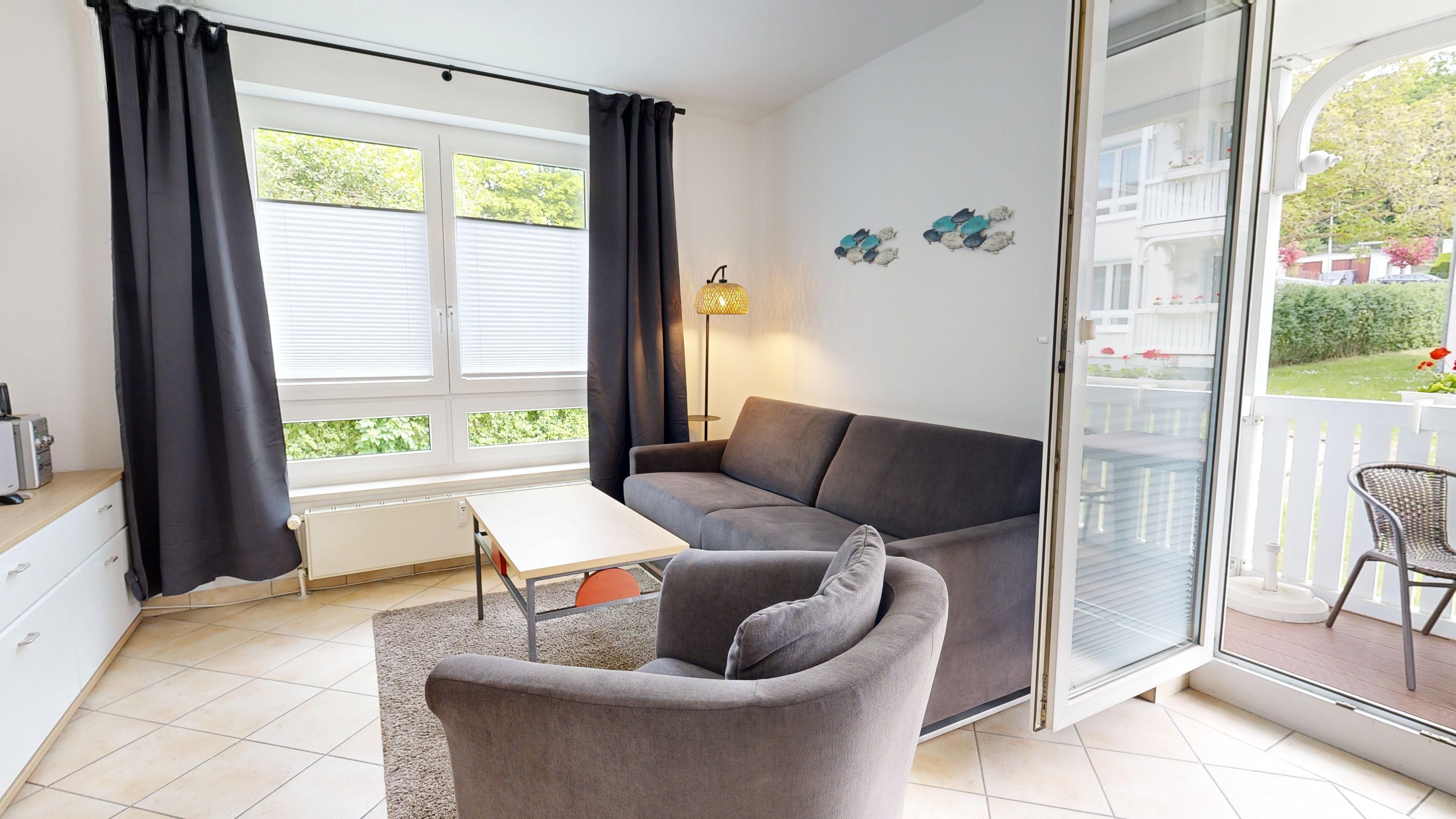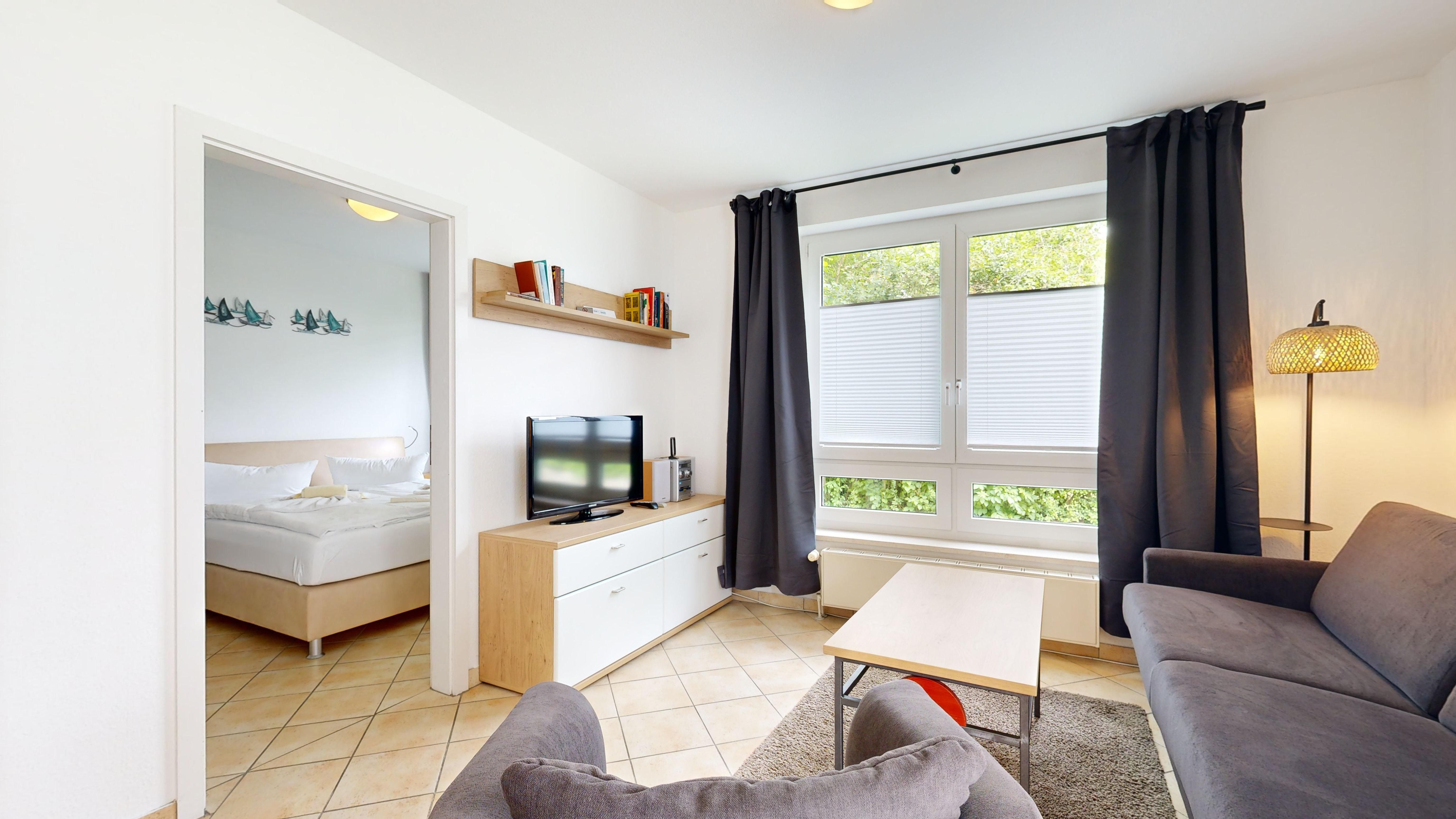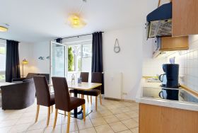 Ferienwohnung Binzer Sterne 46 für bis zu 4 Personen im EG (2 Zimmer / 45 m²) des Appartementhauses Binzer Sterne, 1 Schlafzimmer, Parkplatz (gegen Gebühr) und freies WLAN.