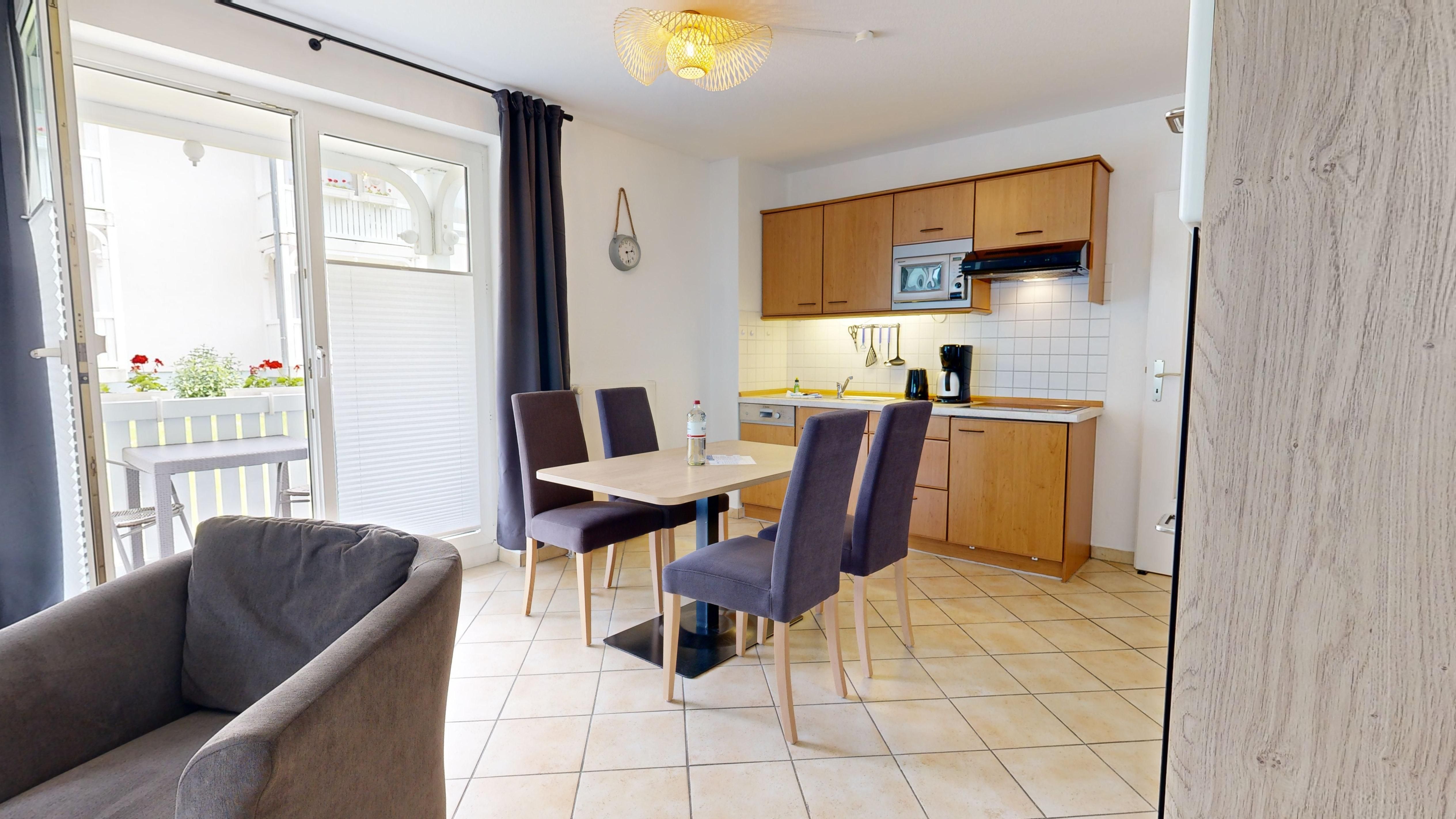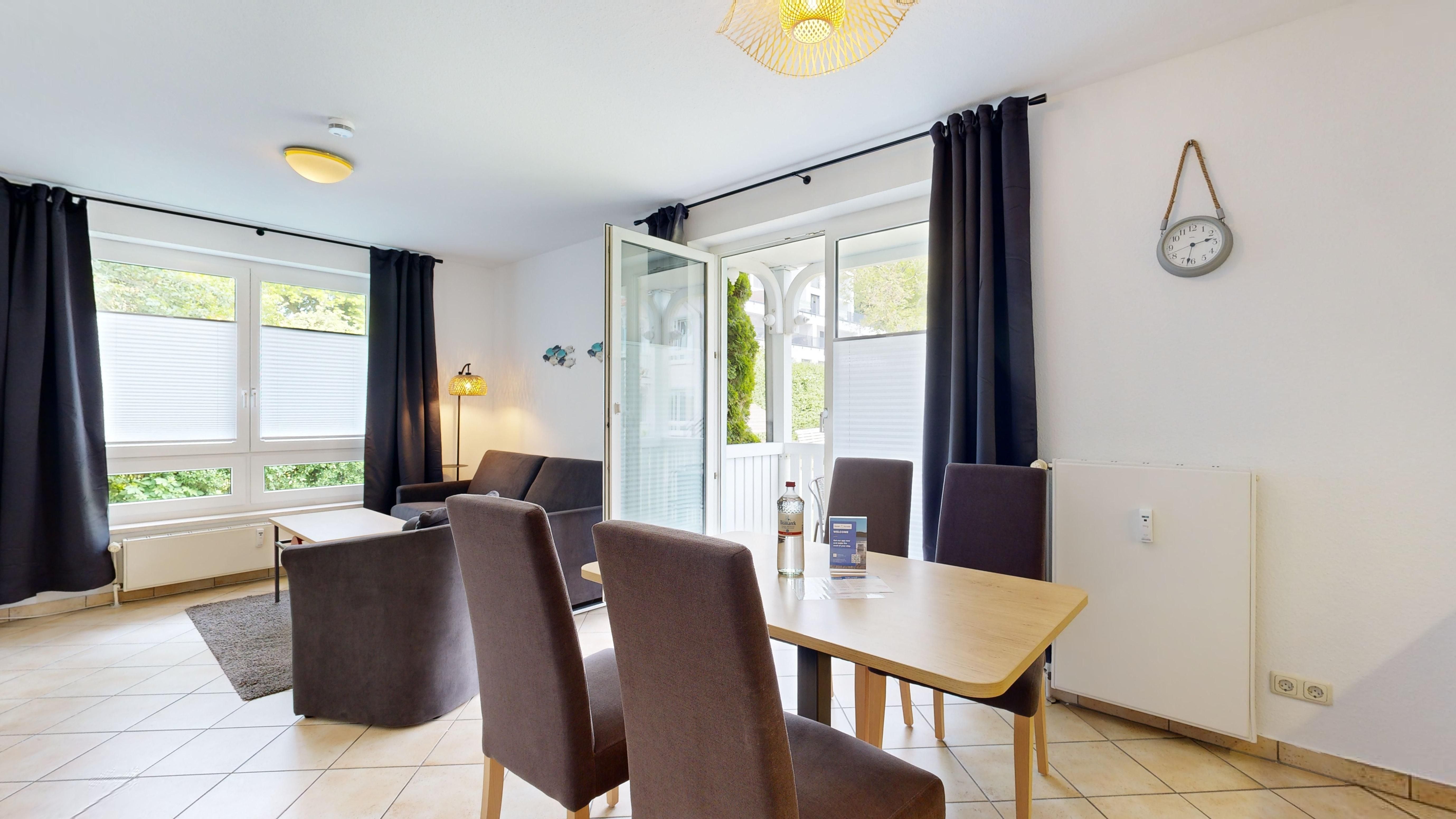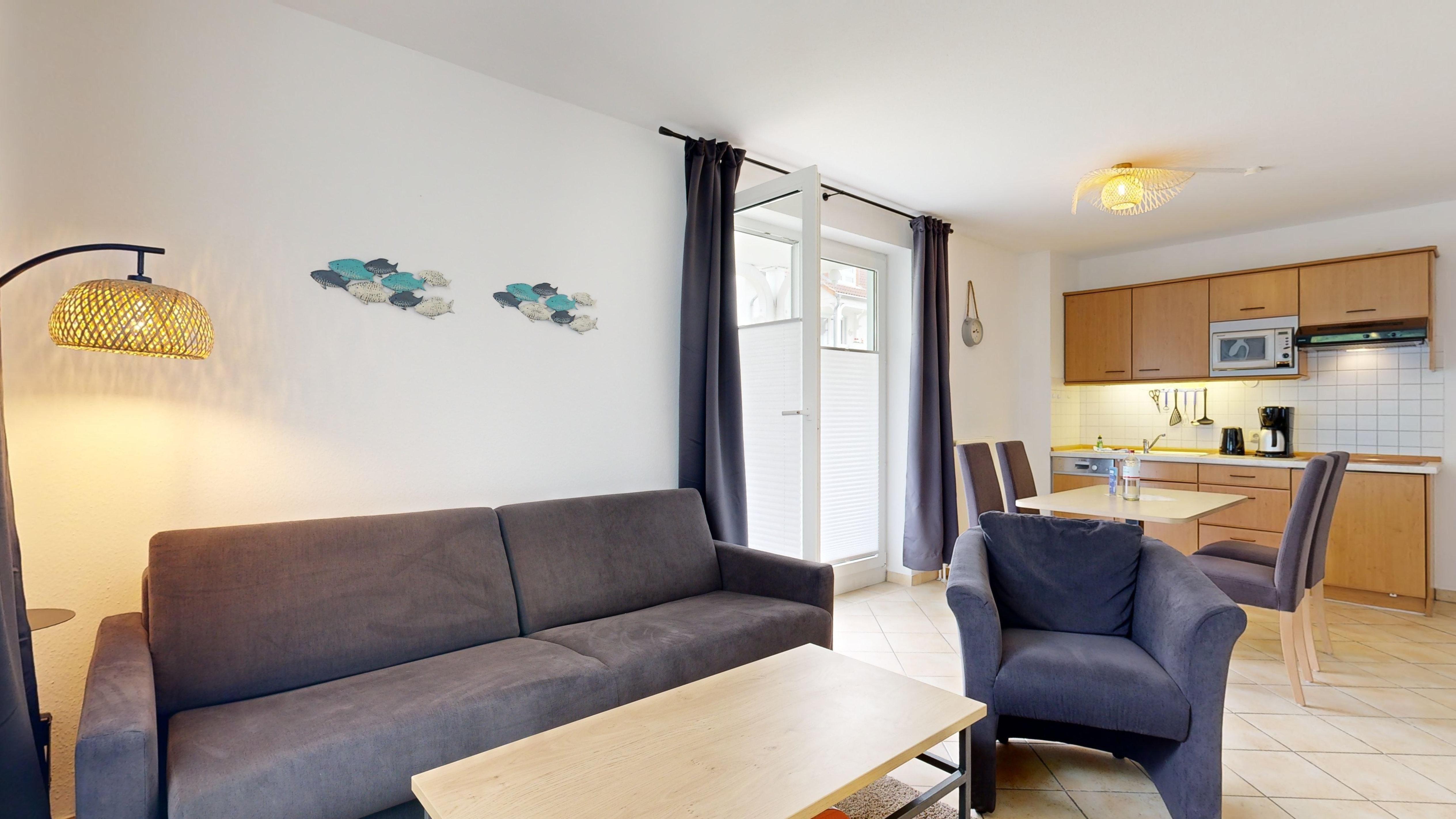 Ferienwohnung Binzer Sterne 46 für bis zu 4 Personen im EG (2 Zimmer / 45 m²) des Appartementhauses Binzer Sterne, 1 Schlafzimmer, Parkplatz (gegen Gebühr) und freies WLAN.