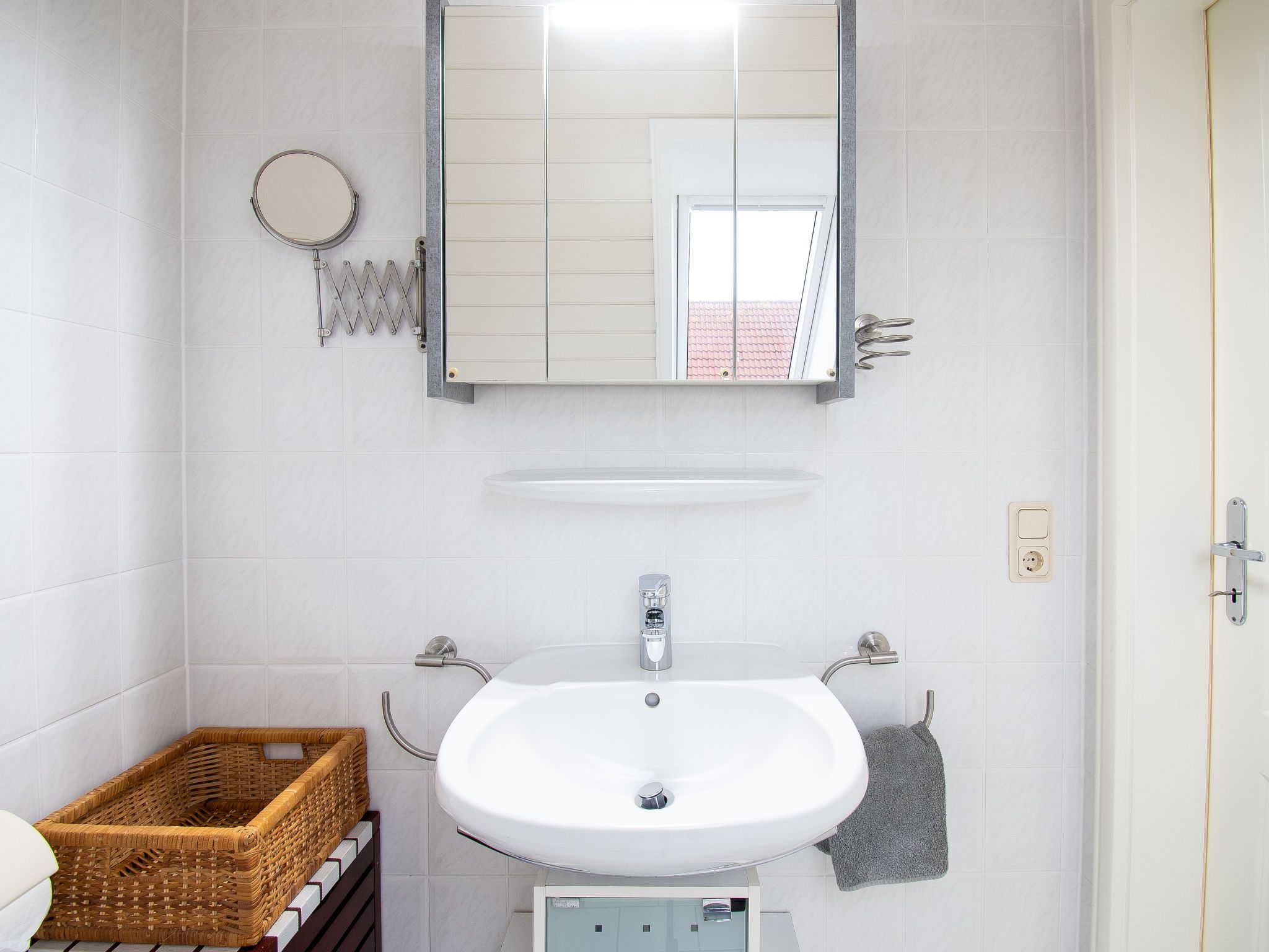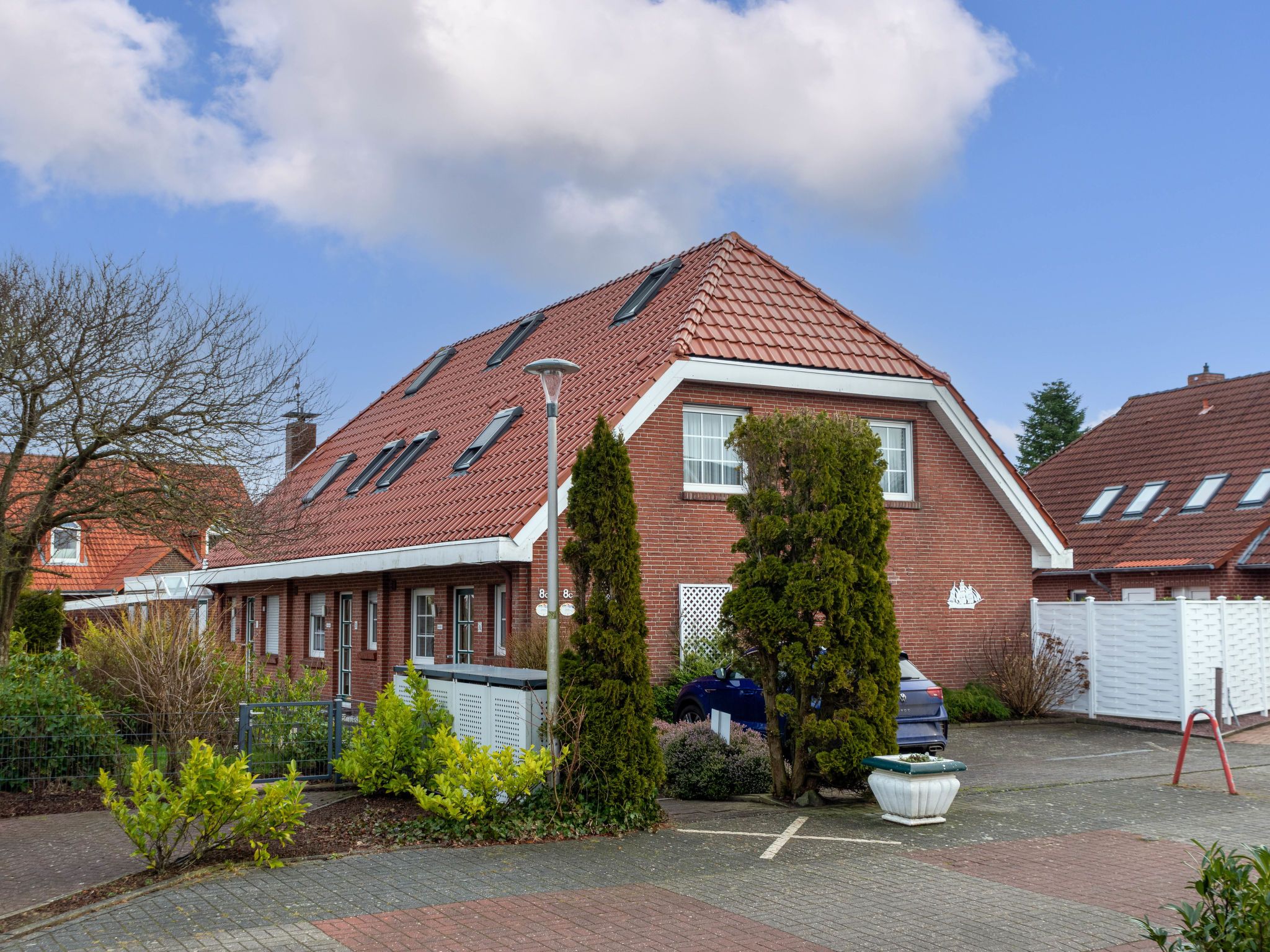 Reihenhaus. Am Ortsrand, 1.5 km vom Meer, 1.5 km vom Strand. Im Hause: Einstellraum für Fahrräder, Zentralheizung. Parkplatz beim Haus. Supermarkt, Bäckerei, Café 800 m, Bushaltestelle 550 m, Bahnstation 2.1 km, Fähre Norddeich 2.1 km, Sandstrand 1.5 km, Freibad 12 km, Hallenbad 750 m. Golfplatz (18 Loch) 7.6 km, Minigolf 750 m.