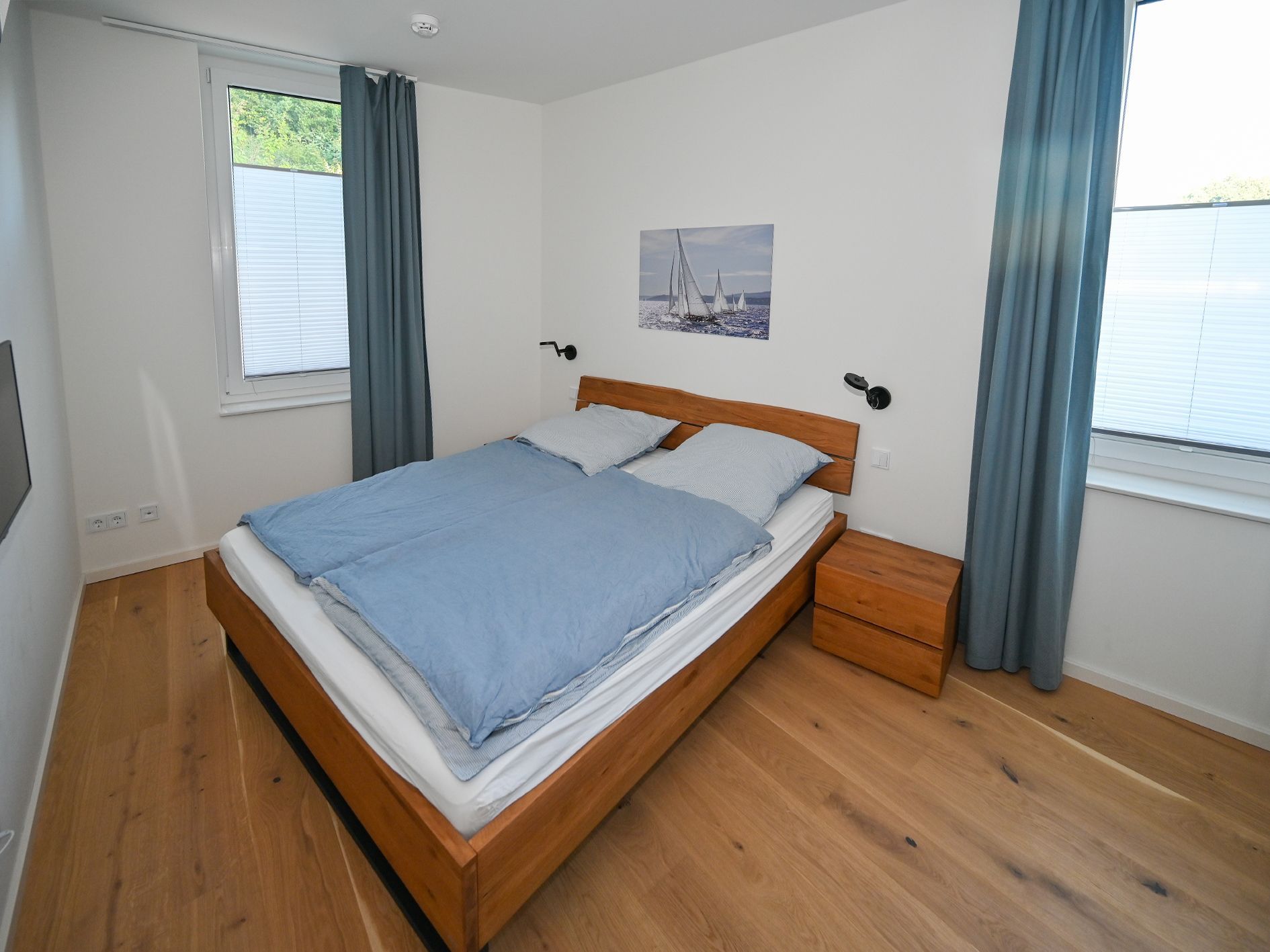 Für einen erholsamen Schlaf sorgen zwei separate Schlafzimmer mit  einem 1,80 breitem Doppelbett bzw. zwei separaten Einzelbetten.