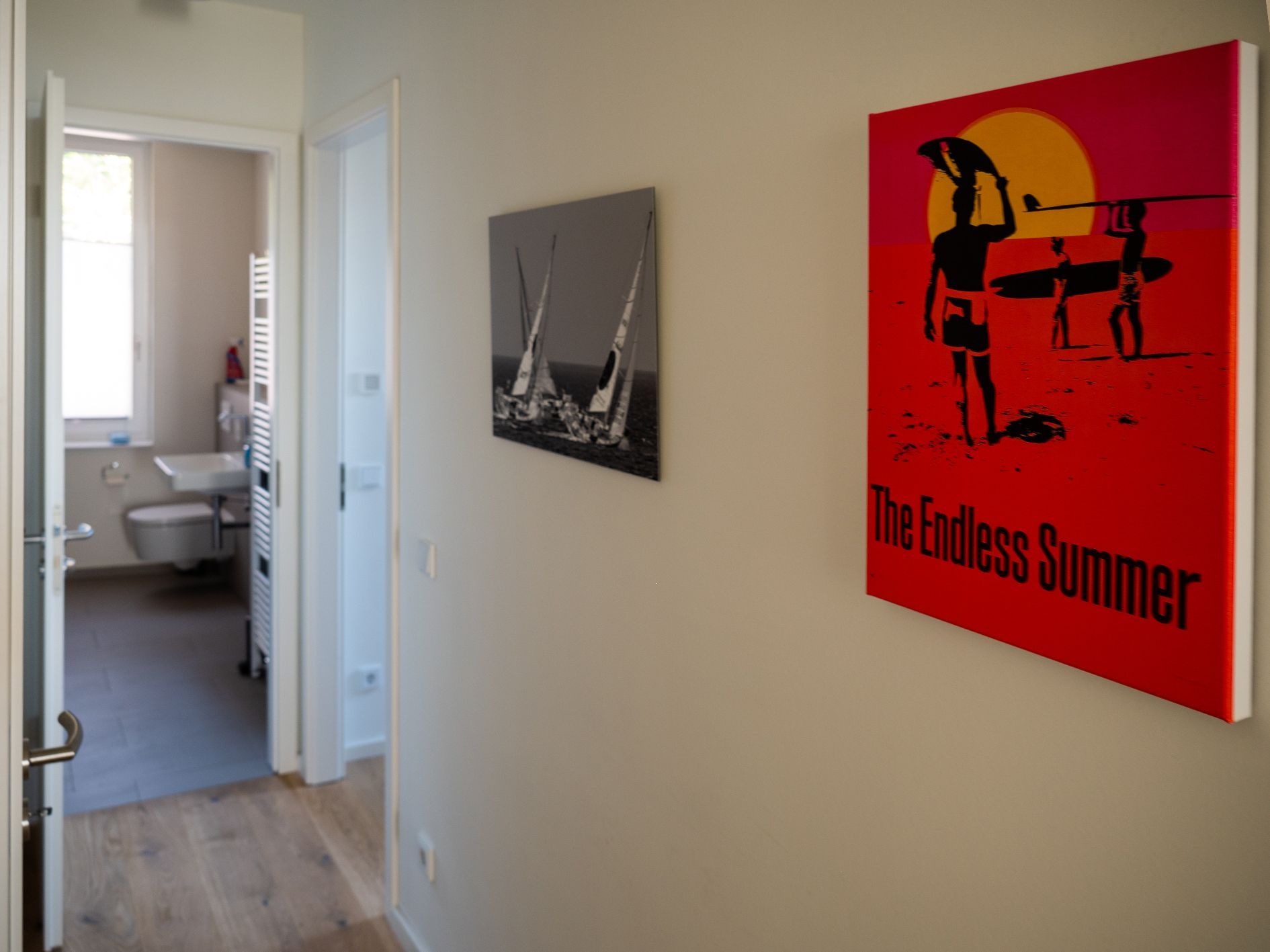 Um auch außerhalb der Sommermonate mit frischem Mut in die Ostsee springen zu können oder sich nach einem Spaziergang wieder aufzuwärmen, gibt es in einem der beiden Badezimmer eine kleine, feine Sauna aus Eschenholz und einem leistungsstarken Ofen.