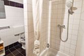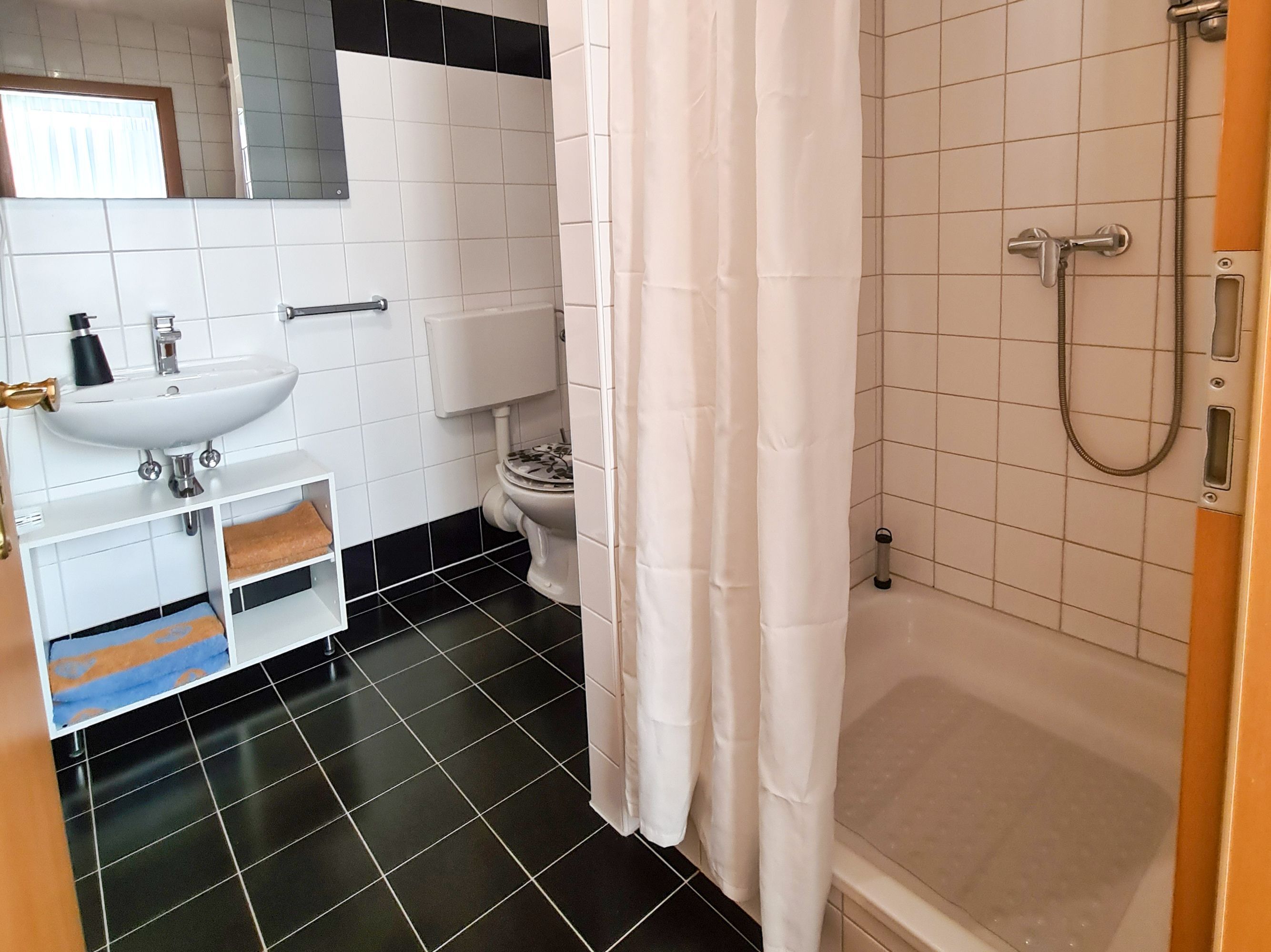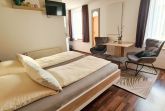 Das Doppelzimmer bietet auf 18 m² ausreichend Platz für 2 Personen und kann auch zur Einzelnutzung gebucht werden. Es befindet sich ebenerdig und überzeugt durch große Fenster, die viel Tageslicht hereinlassen und eine freundliche, einladende Atmosphäre schaffen. Das Zimmer ist mit einem bequemen Doppelbett (180x200), einem TV, einem Kleiderschrank sowie einer kleinen Sitzecke mit Tisch ausgestattet, die dir sowohl Platz zum Entspannen als auch zum Arbeiten bietet. Die praktische Küchenecke ist ideal für kleinere Mahlzeiten oder einen schnellen Snack und verfügt über einen Kühlschrank, Spüle, Wasserkocher, Toaster und eine Kaffeemaschine. Das Bad mit Dusche und WC sorgt für einen angenehmen Start in den Tag. Du kannst die Gemeinschaftsterrasse mit gemütlichen Lounge-Möbeln und Sonnenliegen nutzen - ein perfekter Ort, um die frische Luft zu genießen oder den Tag entspannt ausklingen zu lassen.